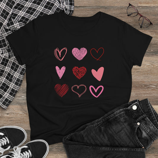 Stacked Sketched Hearts Womens Shirt, Heart Shirt