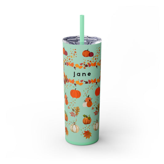 Custom Name Fall Skinny Tumbler with Straw, 20oz
