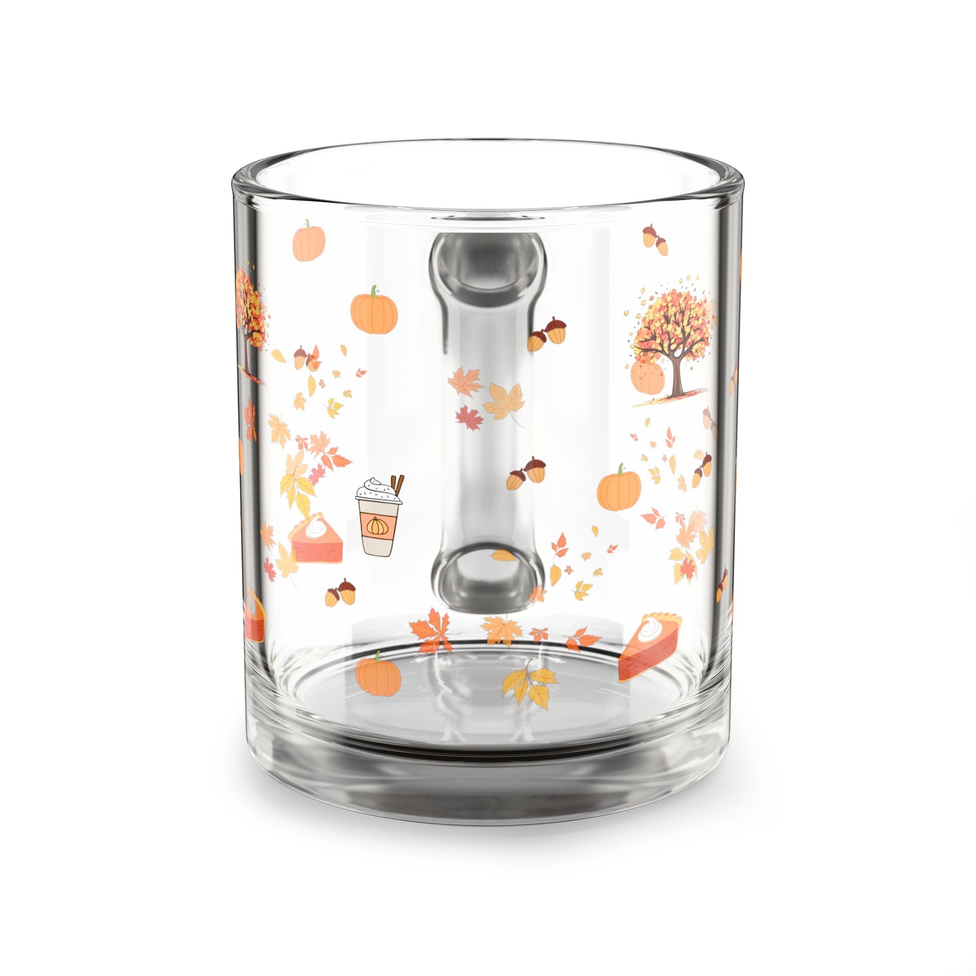 Autumn-Themed Glass Mug, Cozy Fall Drinkware, Pumpkin Spice Mug, Gifts for Coffee Lovers, Seasonal Home Decor, Fall Harvest Collection