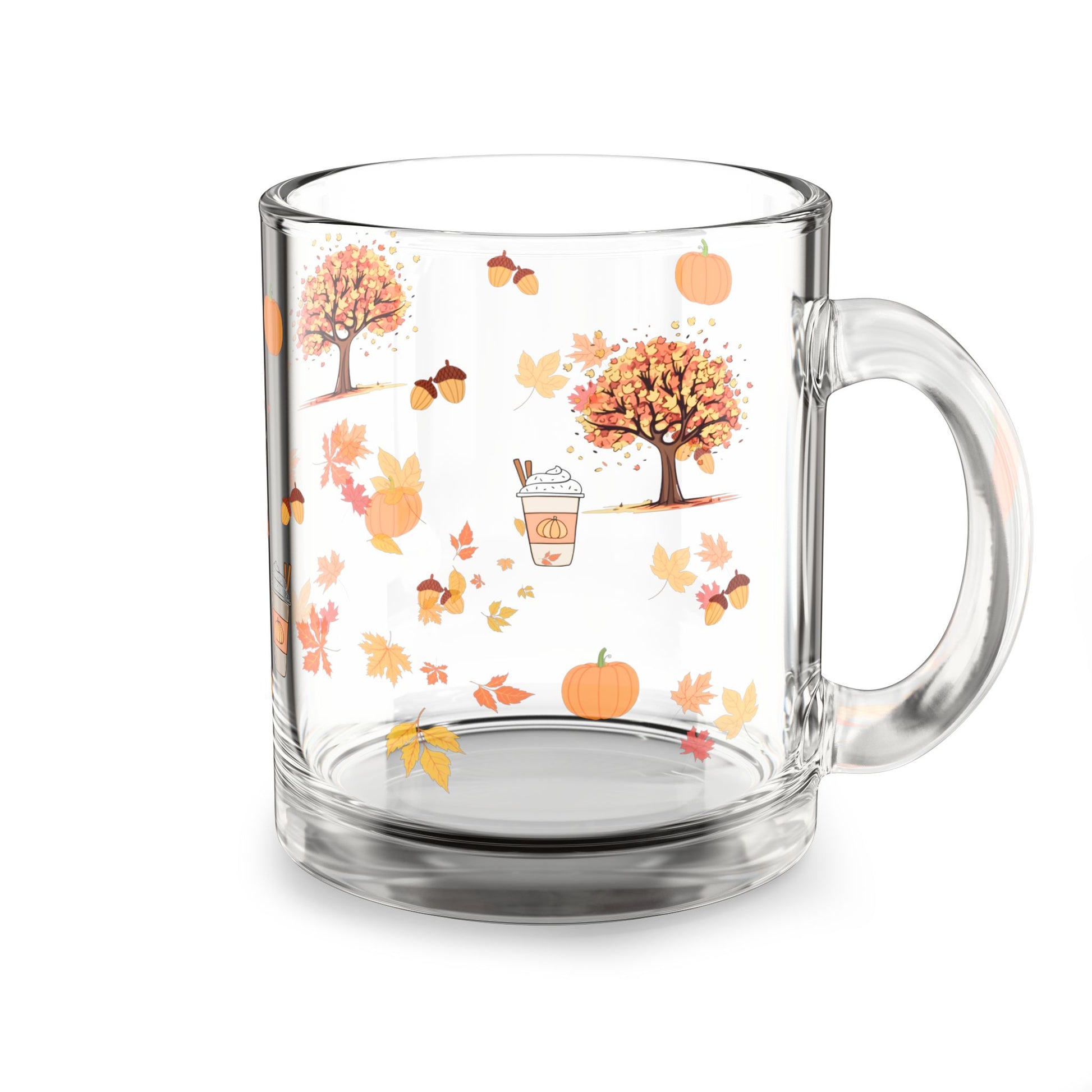 Embrace the beauty of the season with this enchanting 10oz Glass Mug. Perfect for cozying up with your favorite hot beverage, this mug radiates a warm, autumn vibe with its charming design featuring fall trees, pumpkins, and scattered leaves. It's an ideal addition to your morning routine or evening relaxing moments, making it a delightful way to enjoy tea, coffee, or hot chocolate. This mug is a thoughtful gift for any adult who loves the fall season, making it a perfect present for birthdays, Thanksgiving, or housewarming celebrations. Sip in style as you celebrate the changing seasons with this eye-catching and functional piece of drinkware.