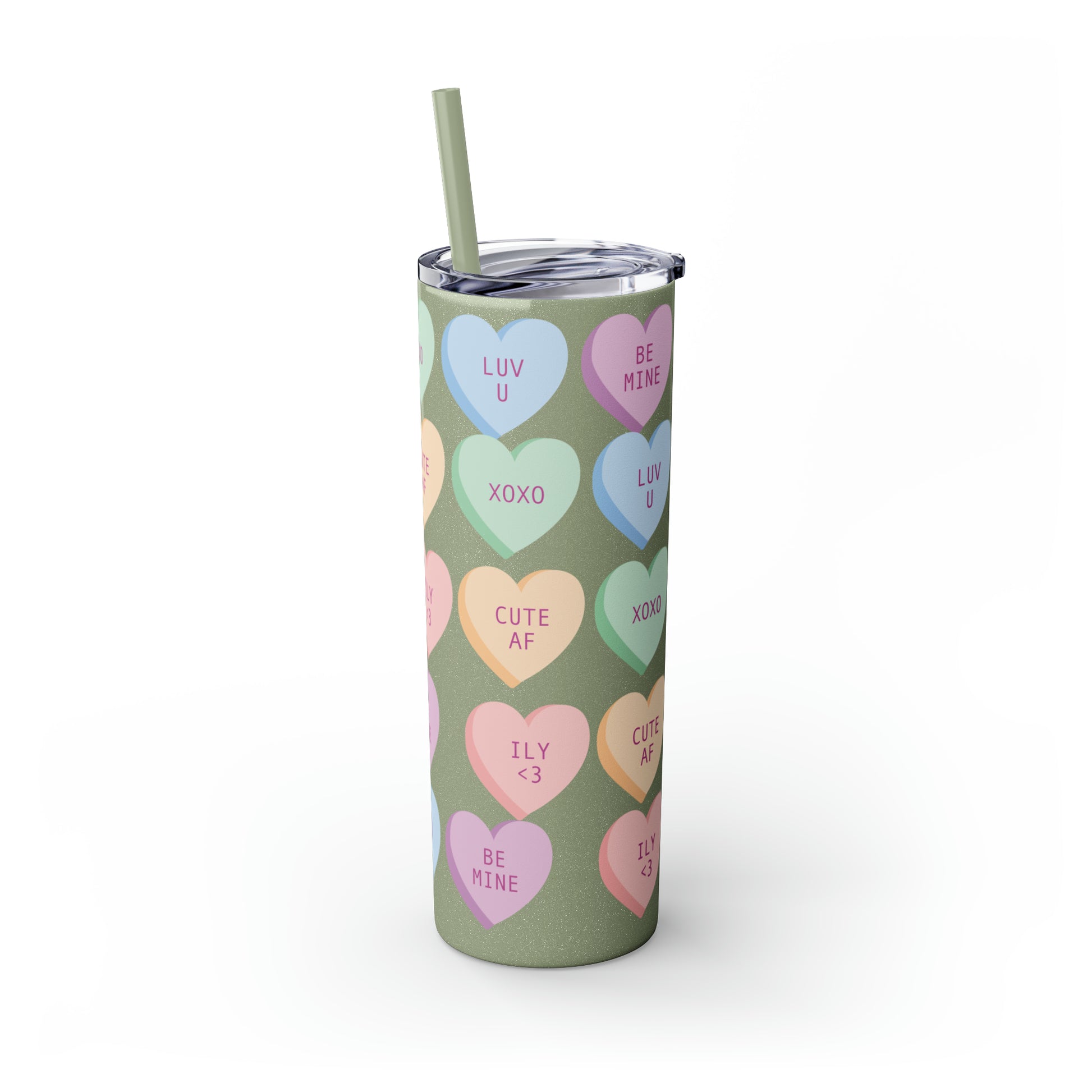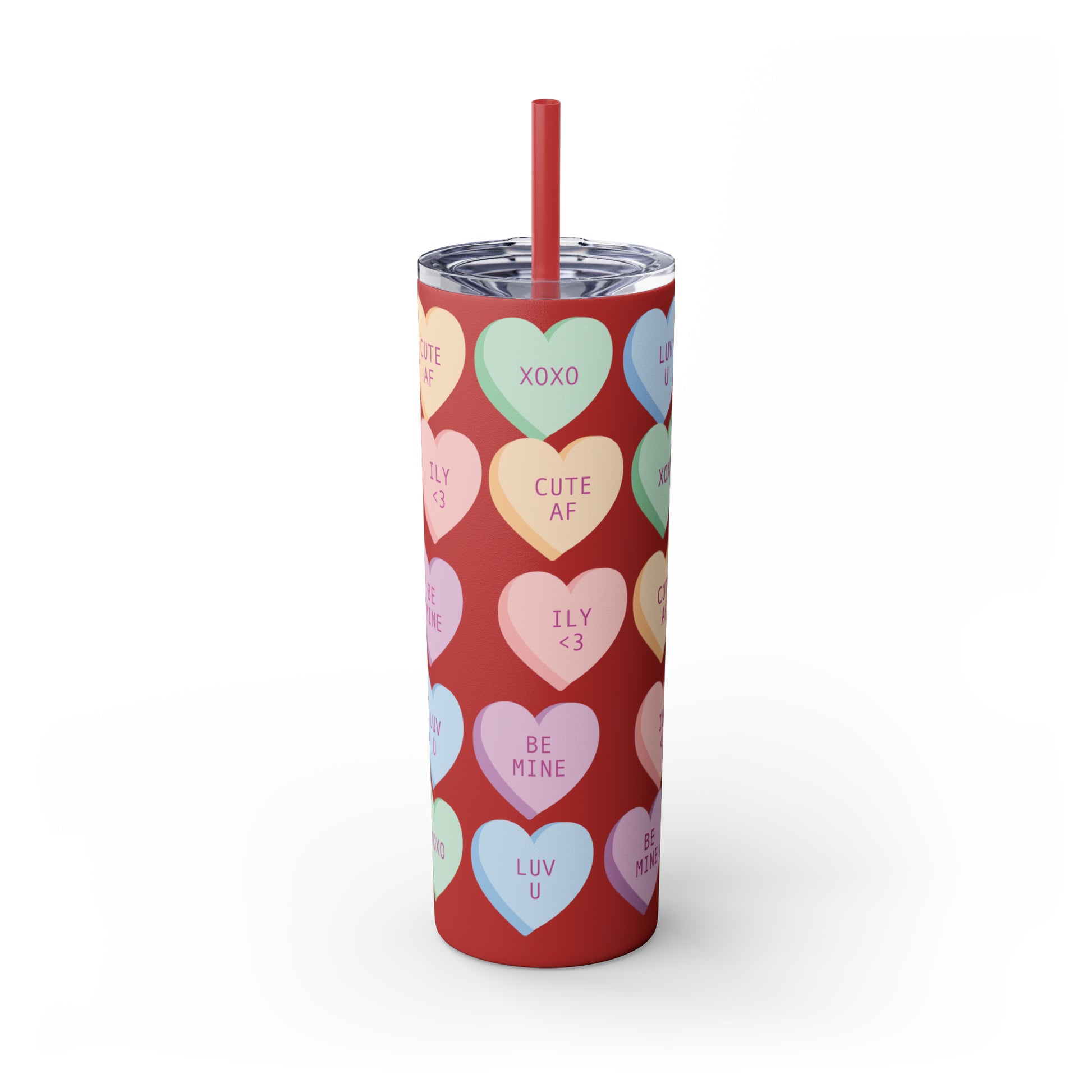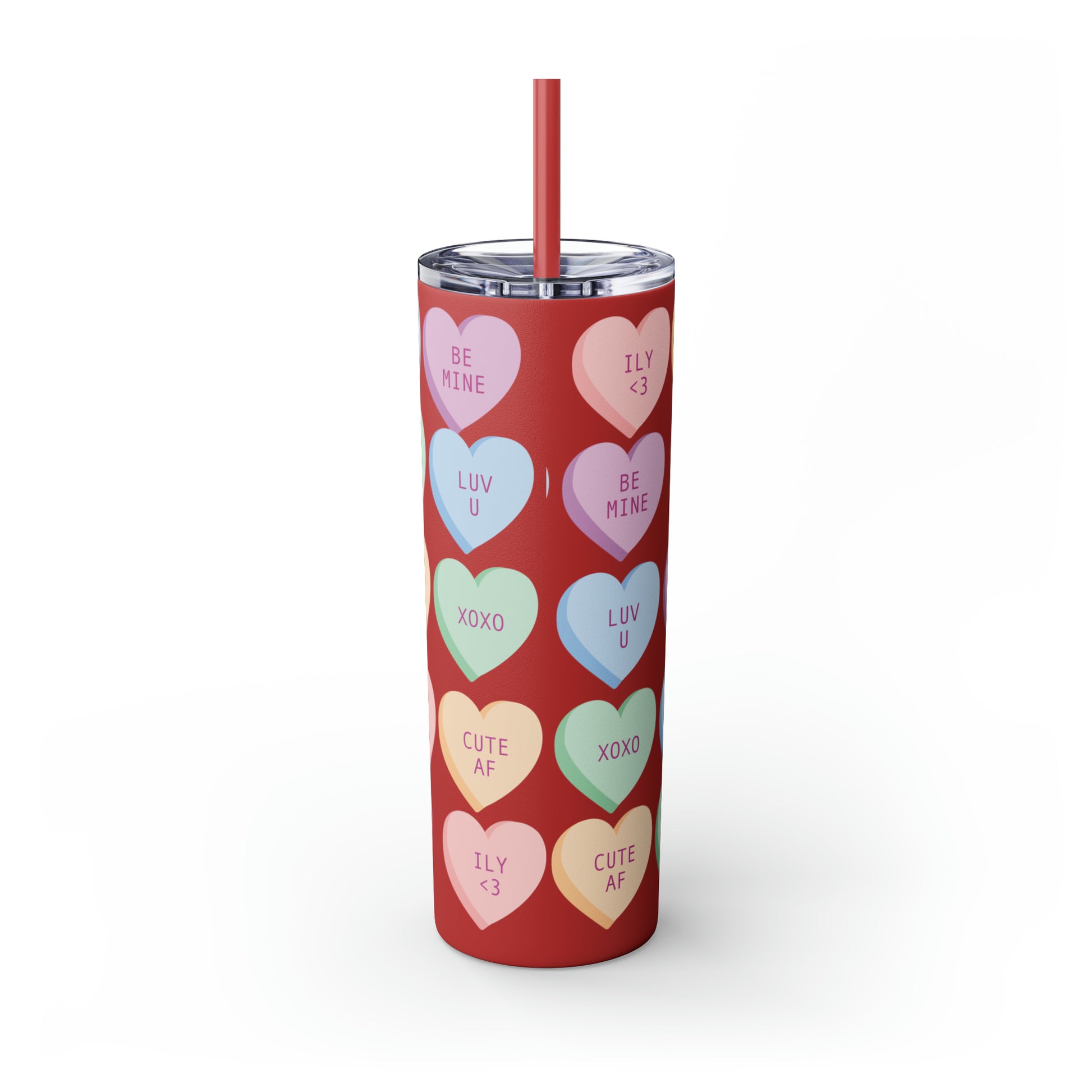 Conversation Hearts Valentine Tumbler with Straw - Sweet Sips of Love, 20oz