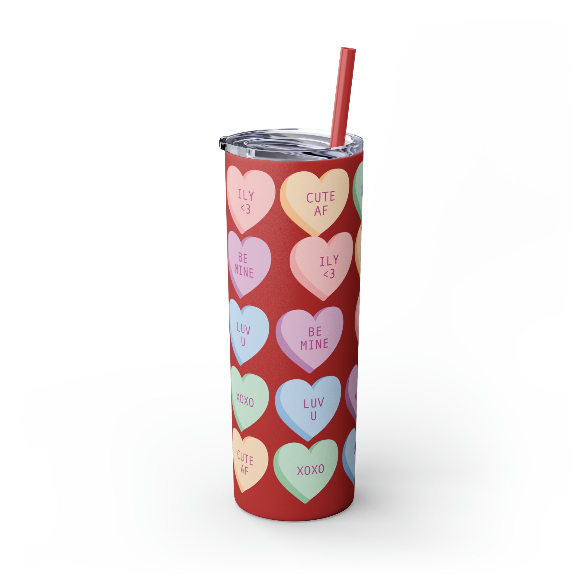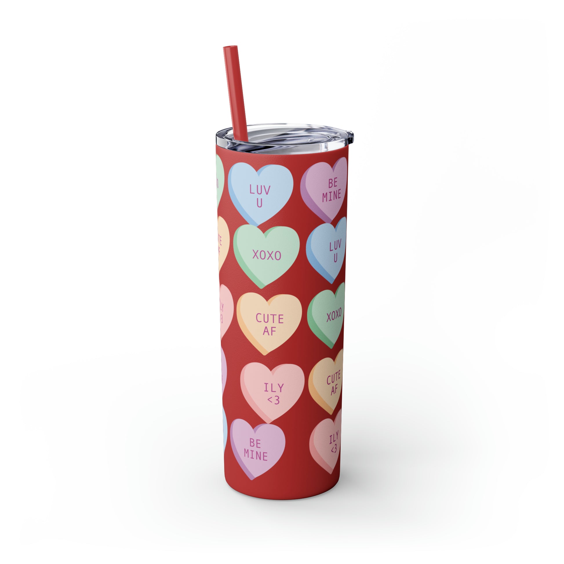 The Conversation Hearts Valentine Tumbler with Straw is more than just a vessel for your drinks; it's a symbol of love, care, and the little things that make relationships so sweet. Sip your favorite beverage and bask in the warmth of affection with this charming Valentine's Day tumbler.