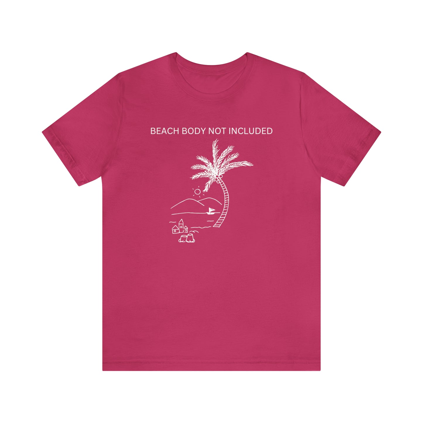 The shirt's captivating design serves as a gentle reminder that everyone deserves to feel comfortable and confident in their own skin. With bold, eye-catching typography, the phrase "Beach Body Not Included" takes center stage, embracing the idea that beach-ready bodies come in all shapes, sizes, and forms. Whether you're rocking a six-pack or not, this shirt encourages self-acceptance and the celebration of diverse beauty standards.