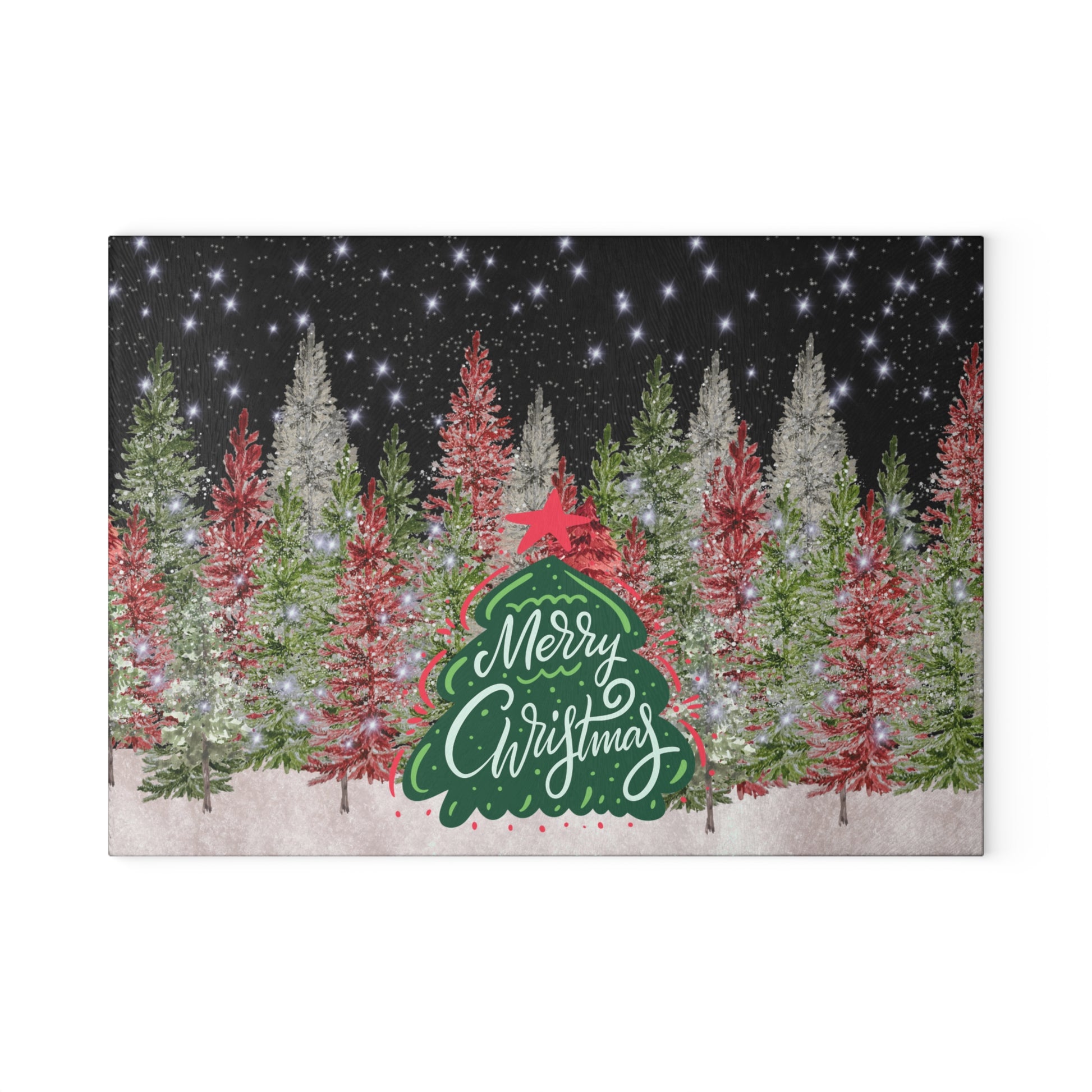 Christmas Glass Cutting Board - Merry Christmas Design, Holiday Decor, Kitchen Gift, Festive Cooking Board, Seasonal Kitchenware