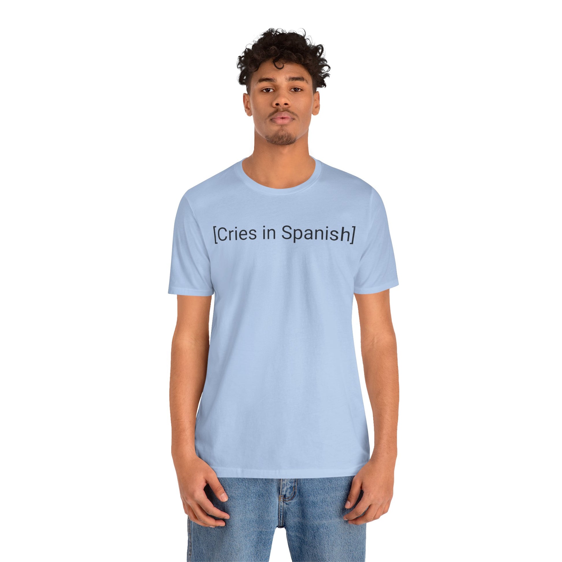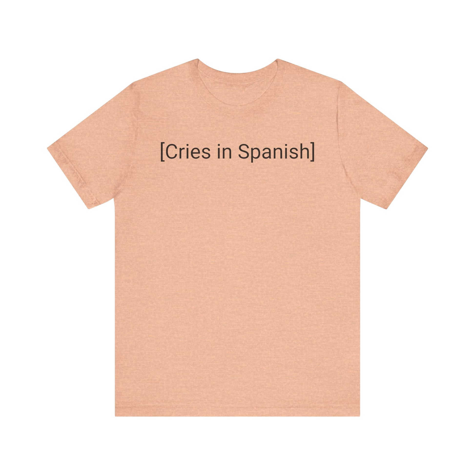 Meticulously crafted with premium quality fabric, this shirt ensures both comfort and style. The design features a clever and eye-catching typography that captures attention. The phrase "Cries in Spanish" takes center stage, conveying the idea that sometimes words spoken in Spanish carry an extra dose of passion and emotion.
