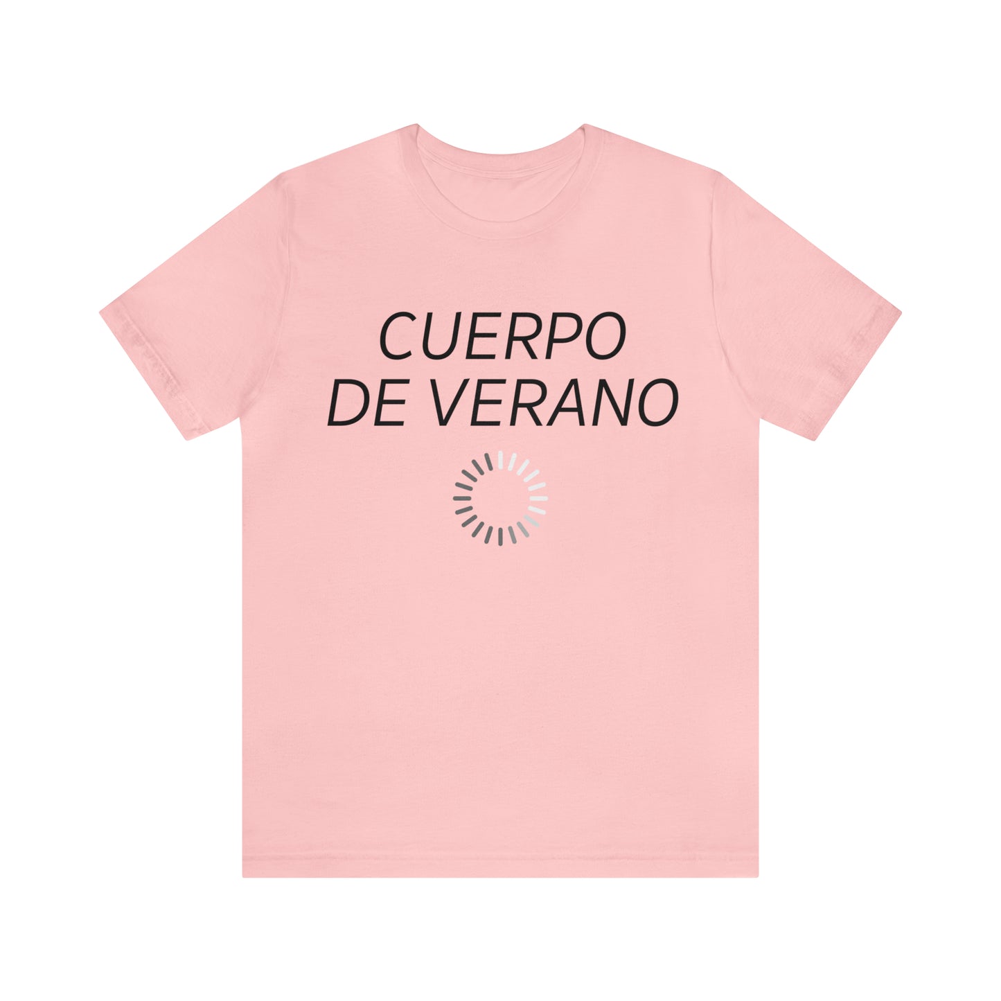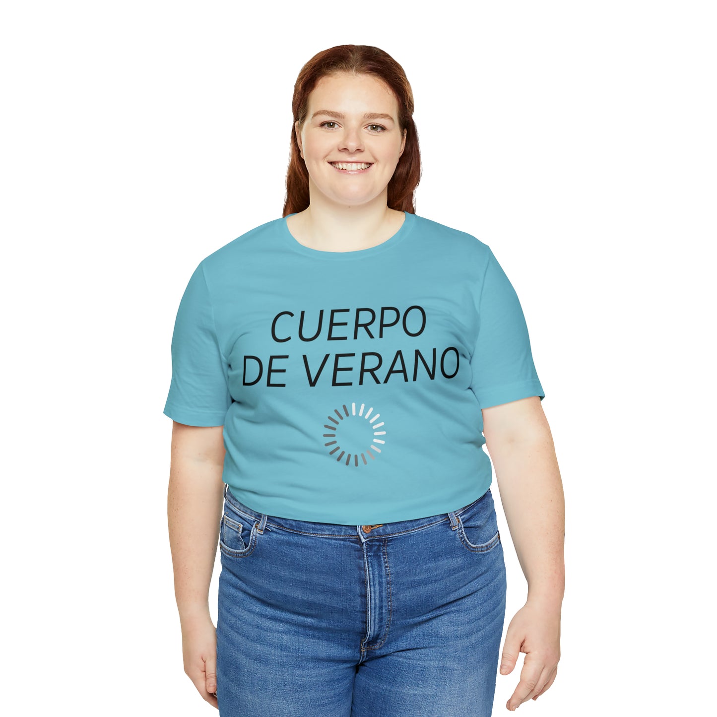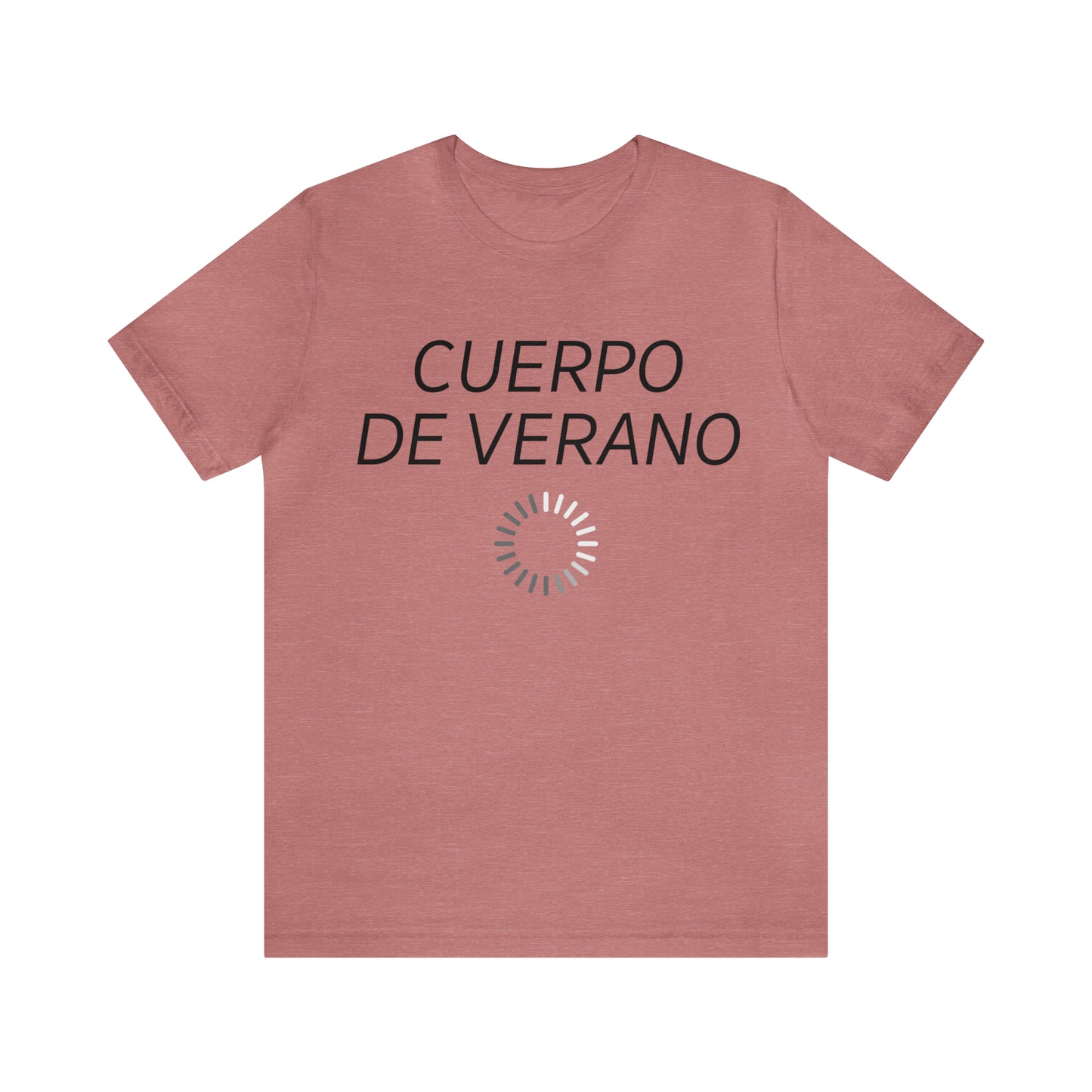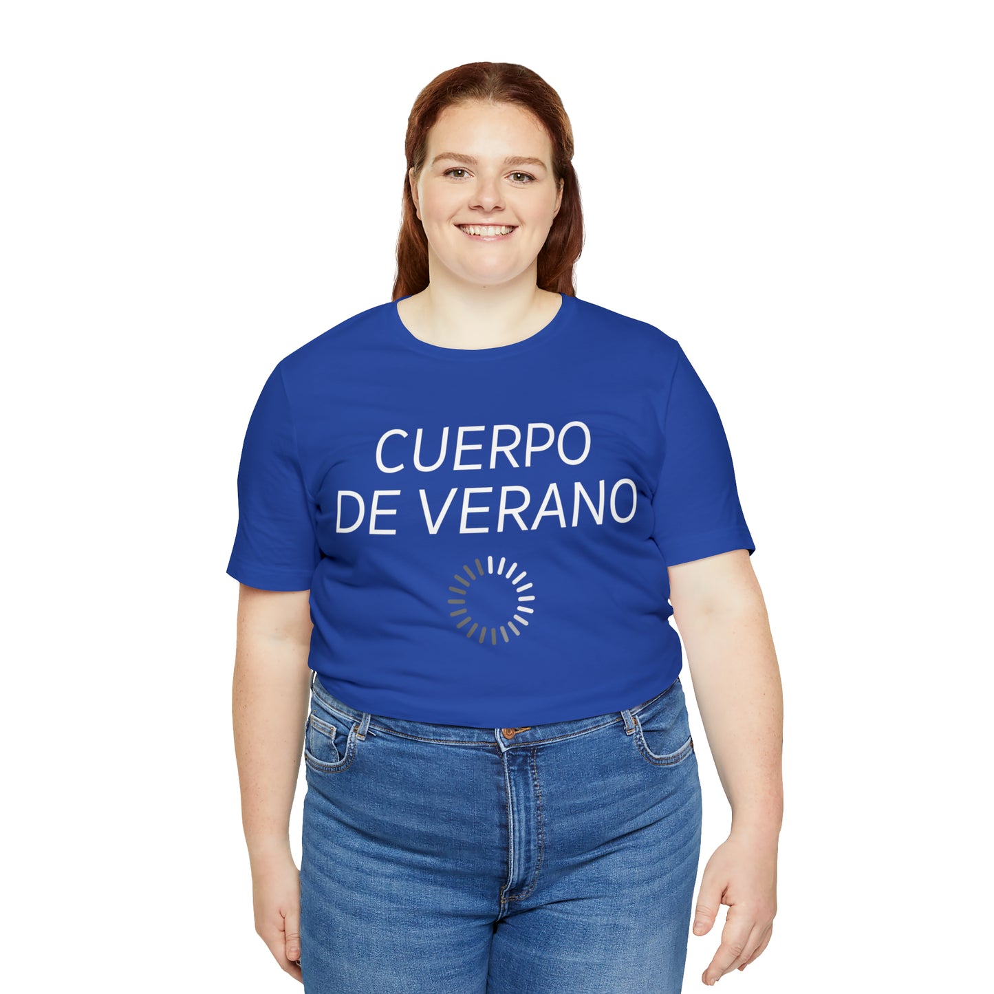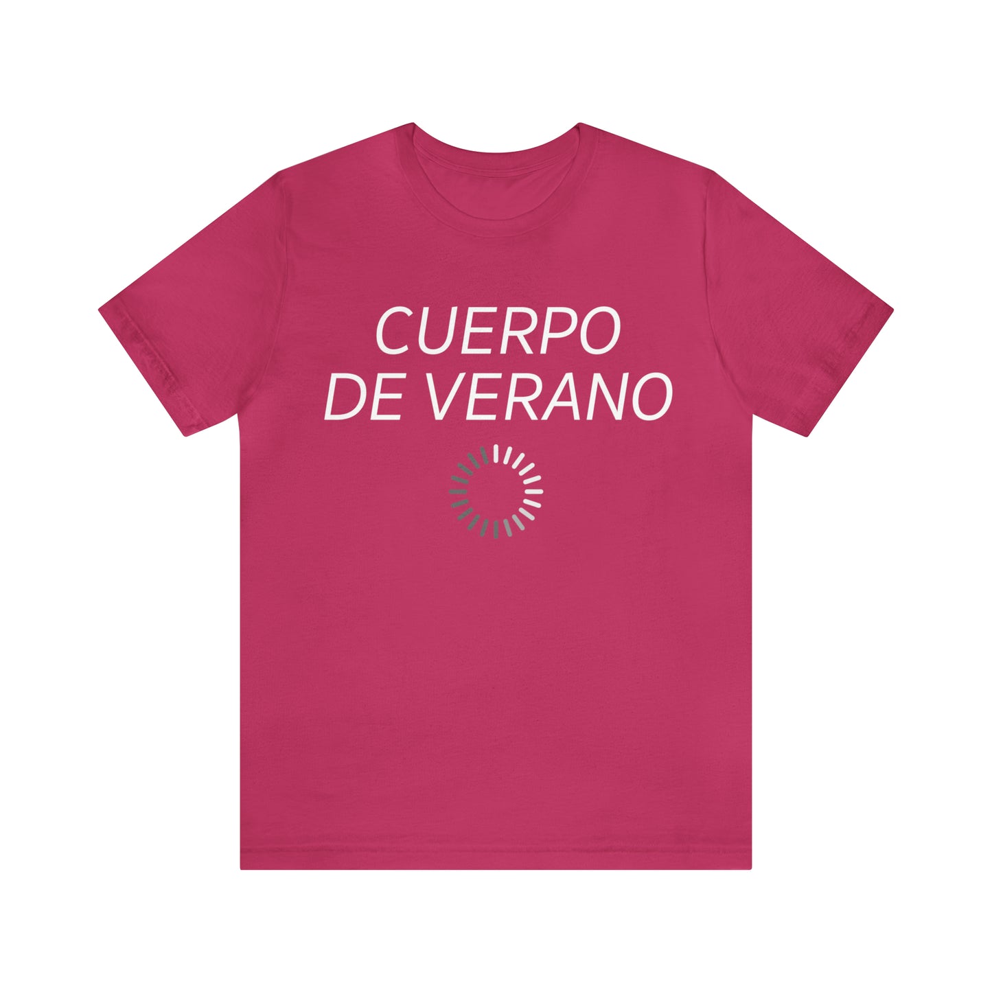 Emblazoned with the phrase "Cuerpo De Verano Cargando" which translates to "Summer Body Loading," this shirt playfully signifies that you are in the process of shaping and sculpting your body for the summer season. It serves as a lighthearted reminder to appreciate the steps taken towards your fitness goals, regardless of where you currently are on your journey.