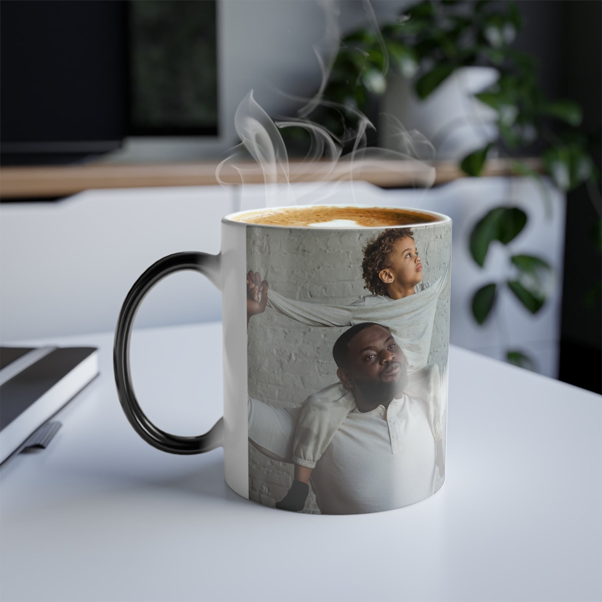 Elevate your coffee experience with our Custom Photo Thermal Morphing Mug. This 11oz mug transforms with heat, revealing your cherished photo when filled with a hot beverage. Perfect for capturing special moments, this mug makes an ideal personalized gift or a unique addition to your own collection.