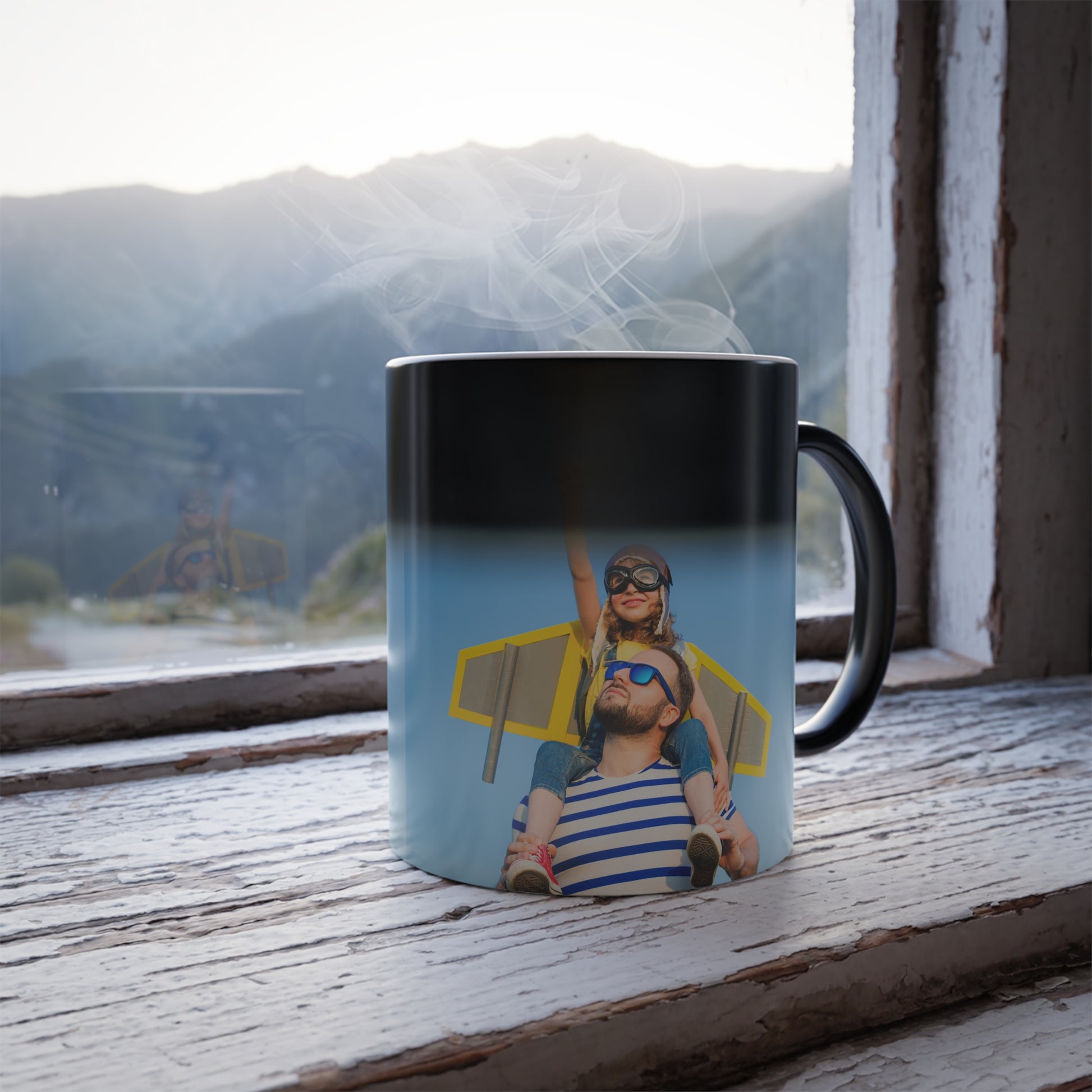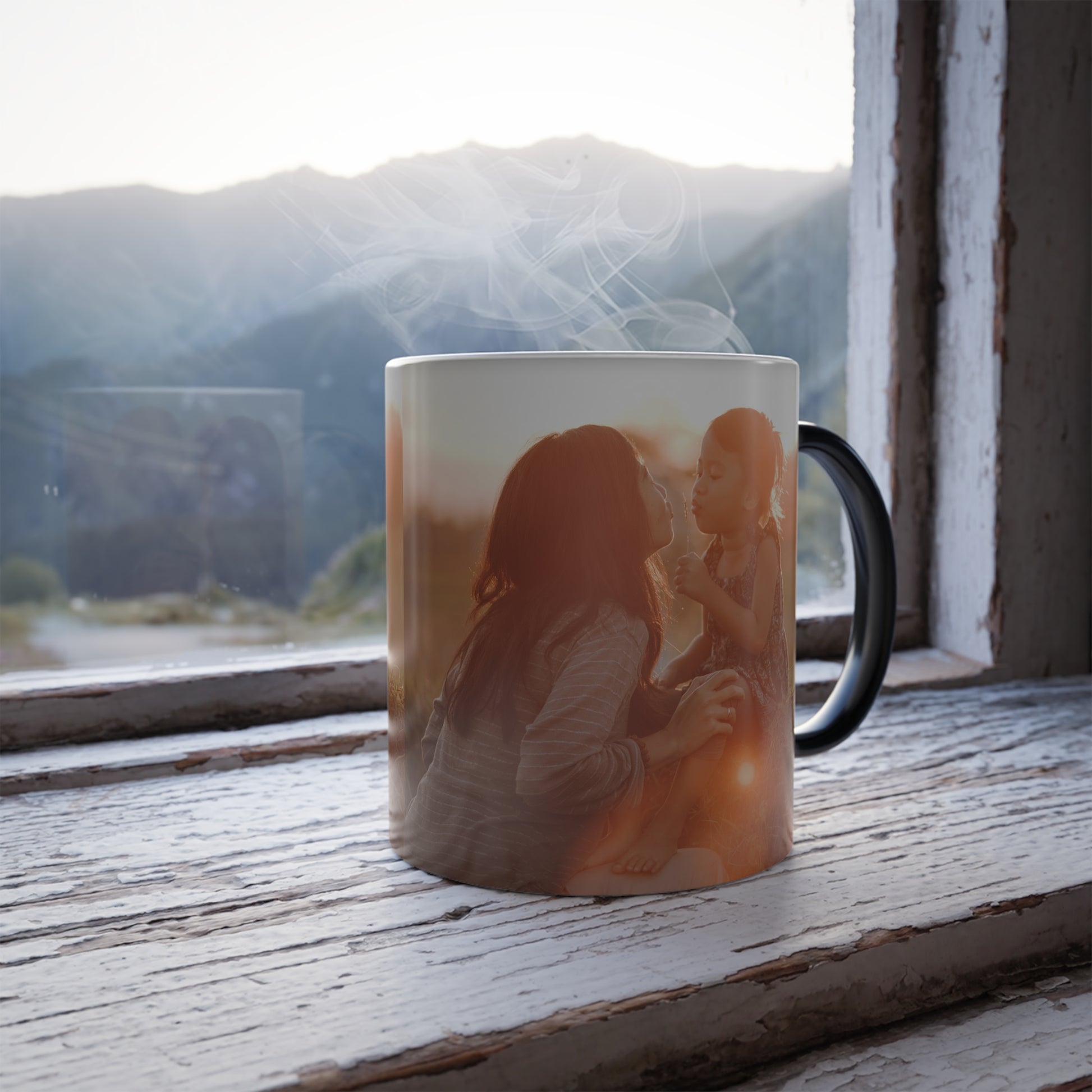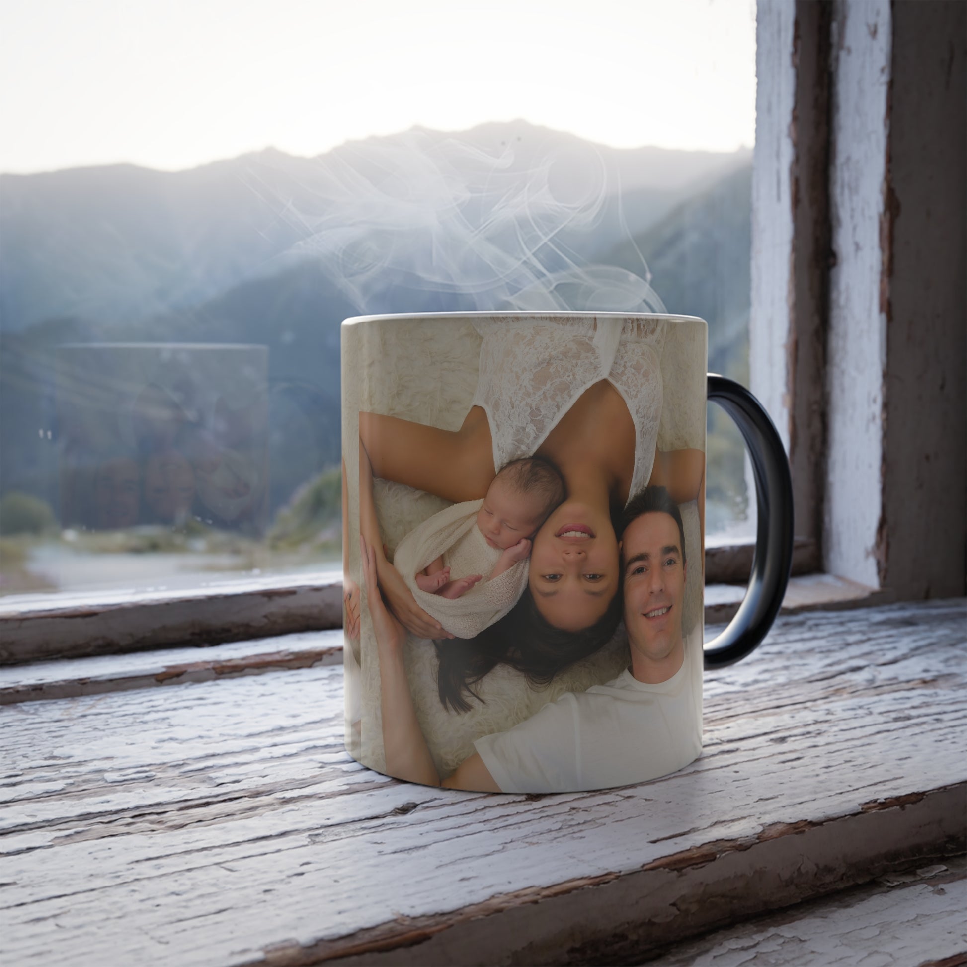 - Thermal Morphing: Mug changes color when filled with hot liquid, revealing your custom photo.