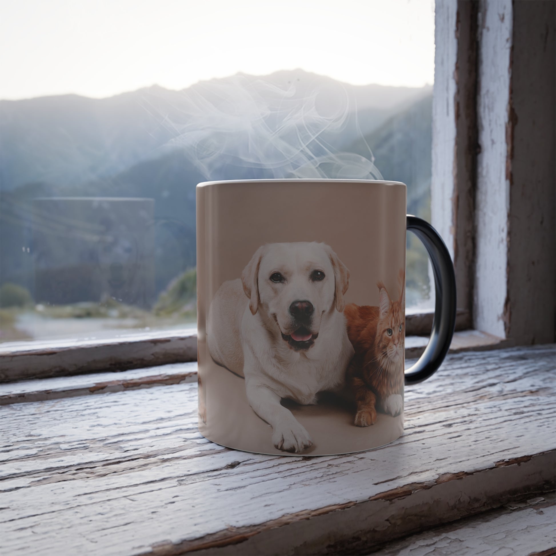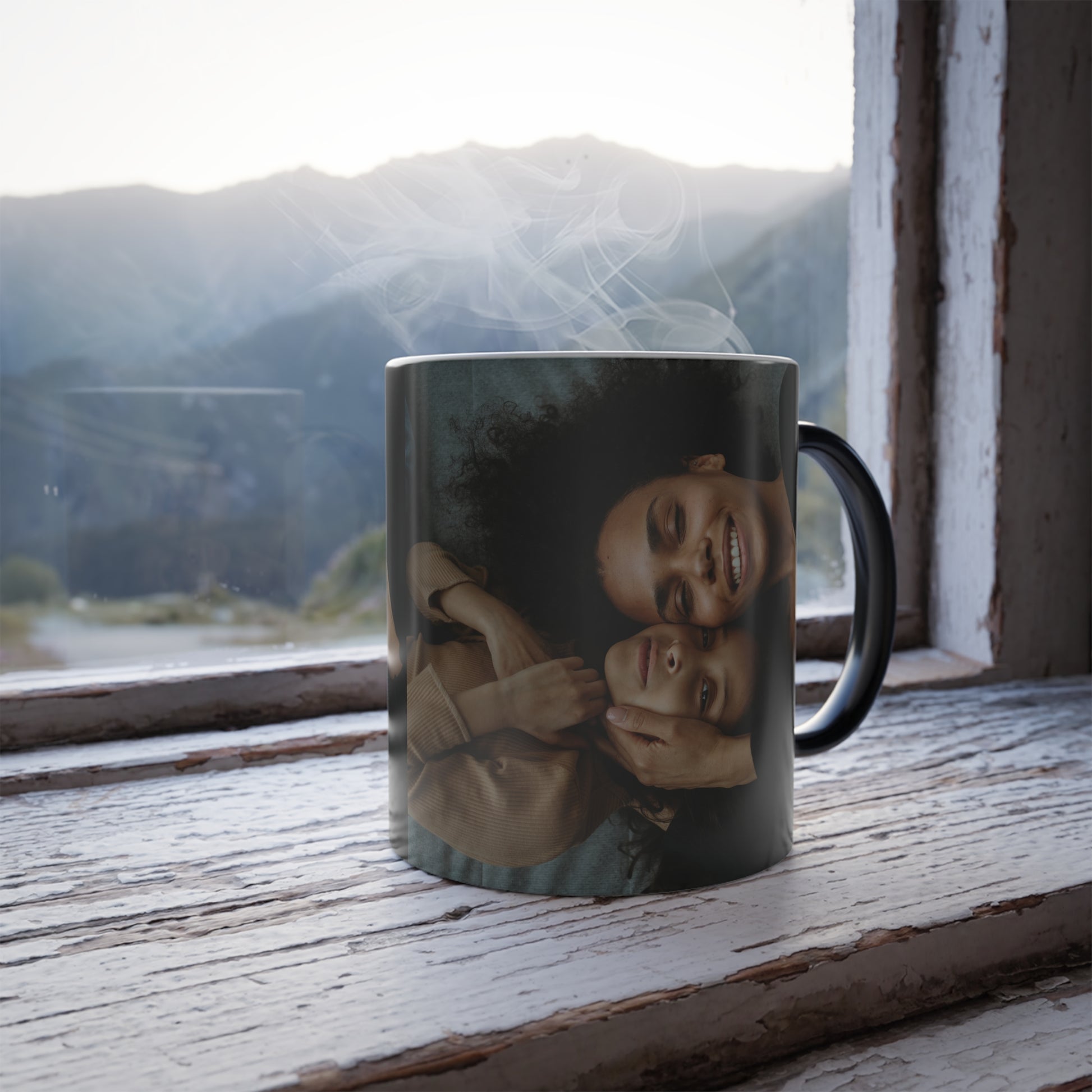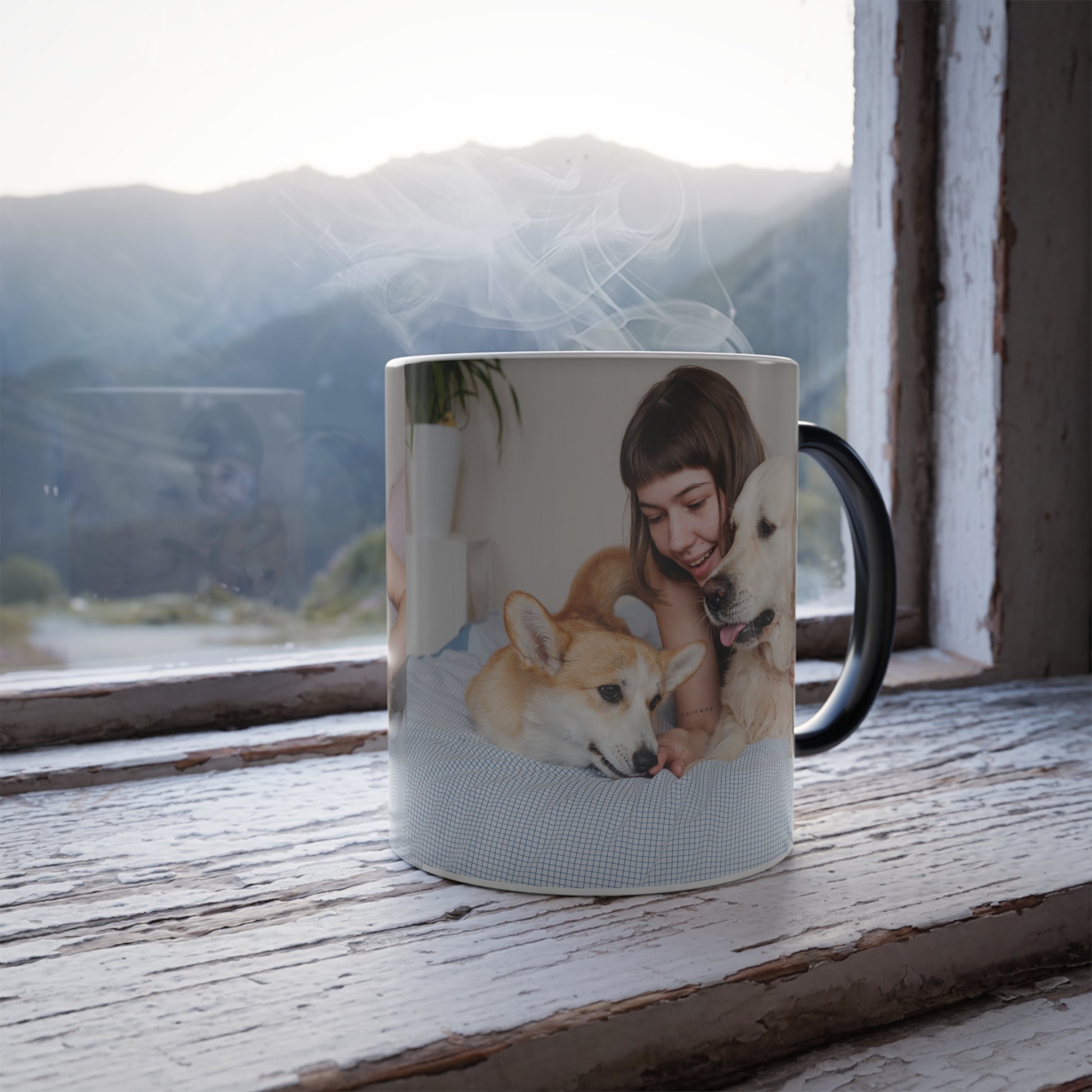 - Thermal Morphing: Mug changes color when filled with hot liquid, revealing your custom photo.