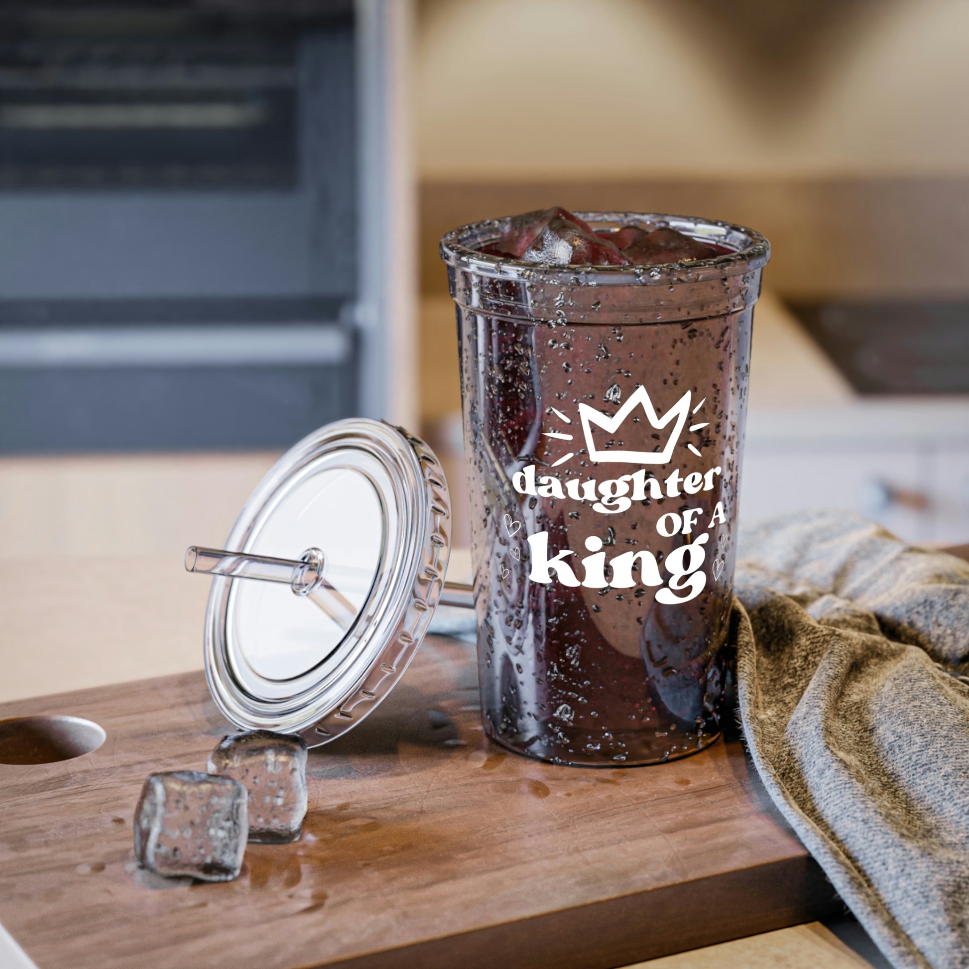 Introducing the "Daughter of a King" Acrylic Cup, a dazzling and empowering accessory that combines style with a regal affirmation. This cup serves as a constant reminder of your inherent worth, strength, and royal heritage, while keeping you hydrated and refreshed.
