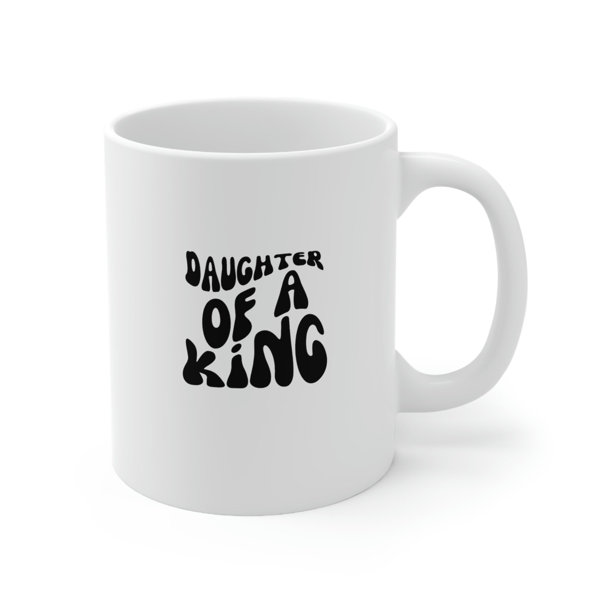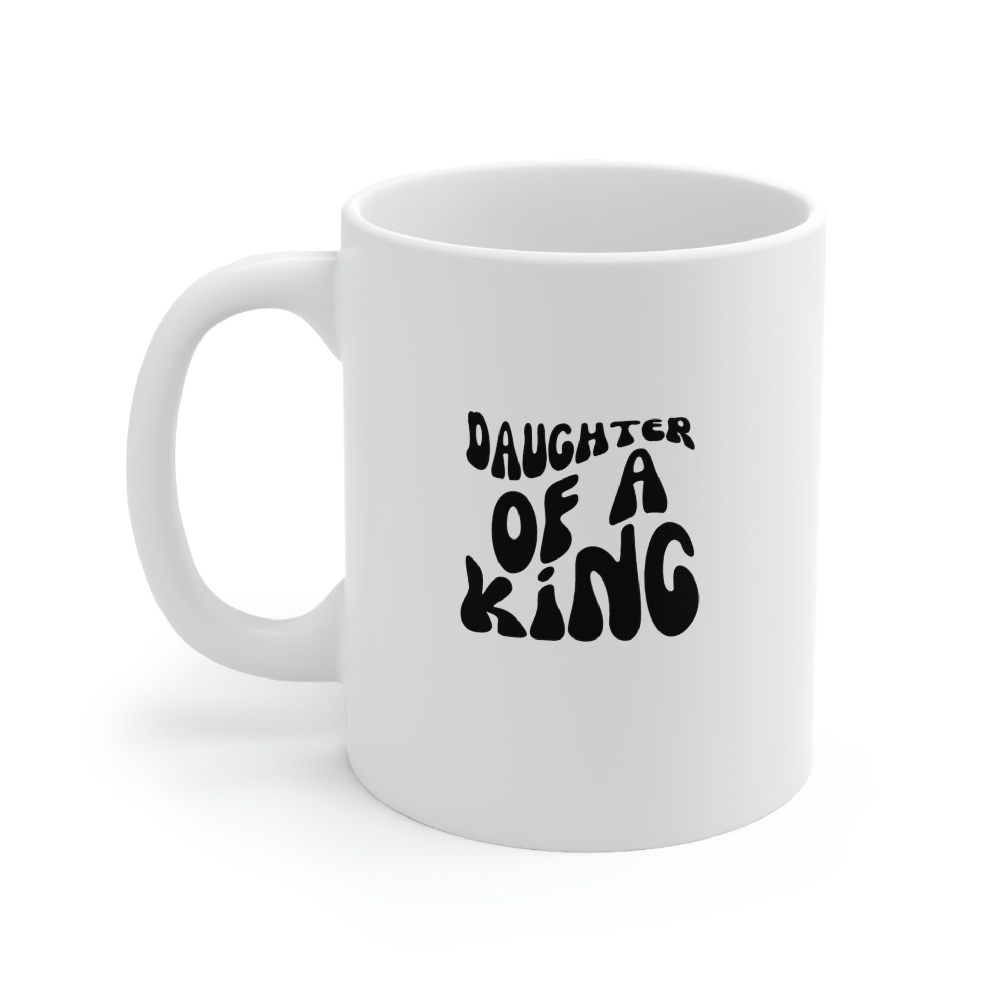 Introducing our enchanting 11 oz white mug that beautifully proclaims the empowering message, "Daughter of a King." Designed to inspire and uplift, this mug is perfect for the daughters who radiate grace, strength, and royal lineage.