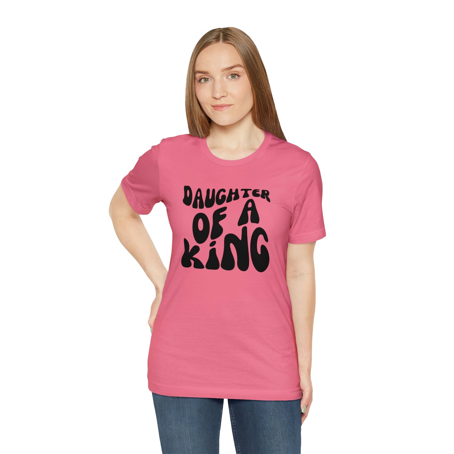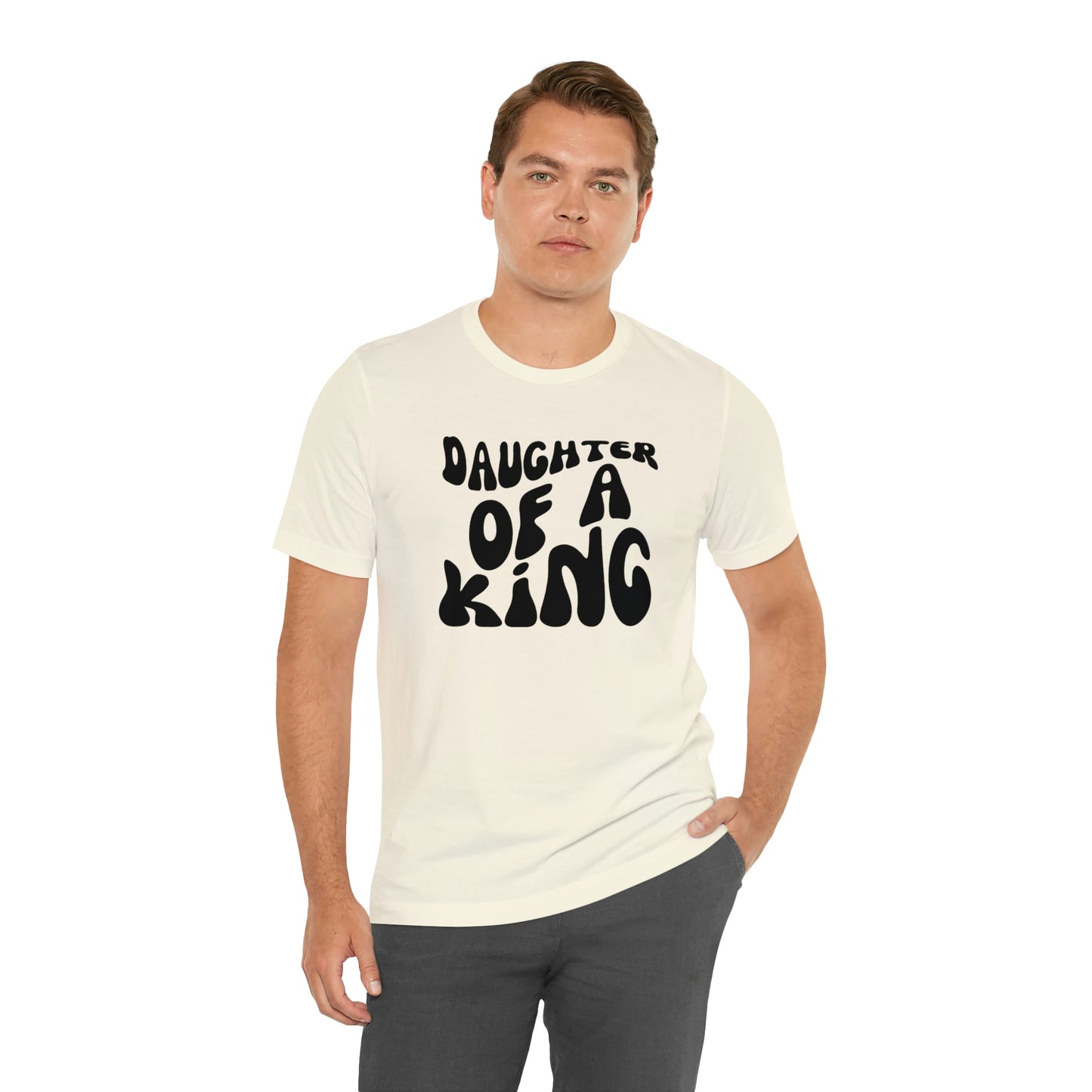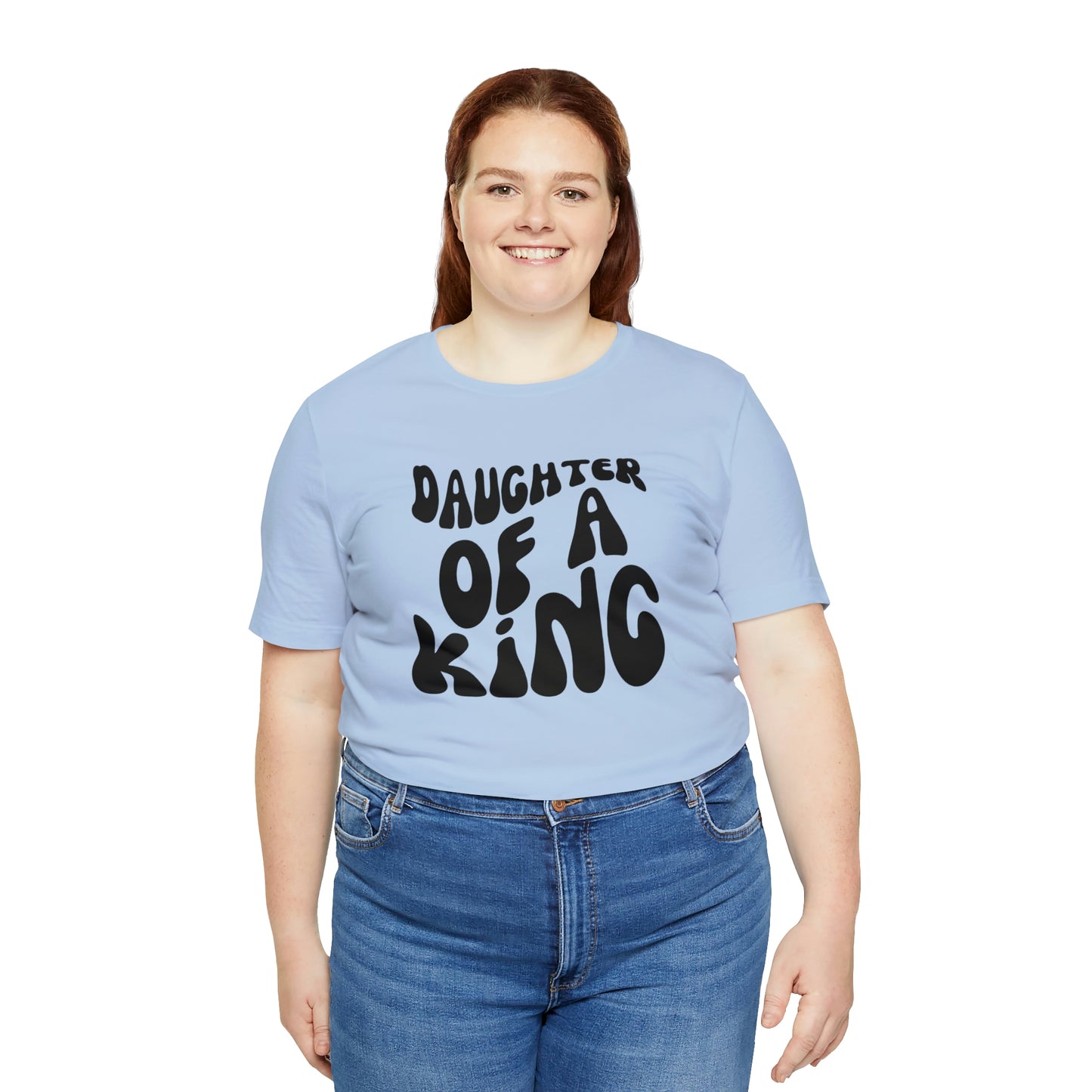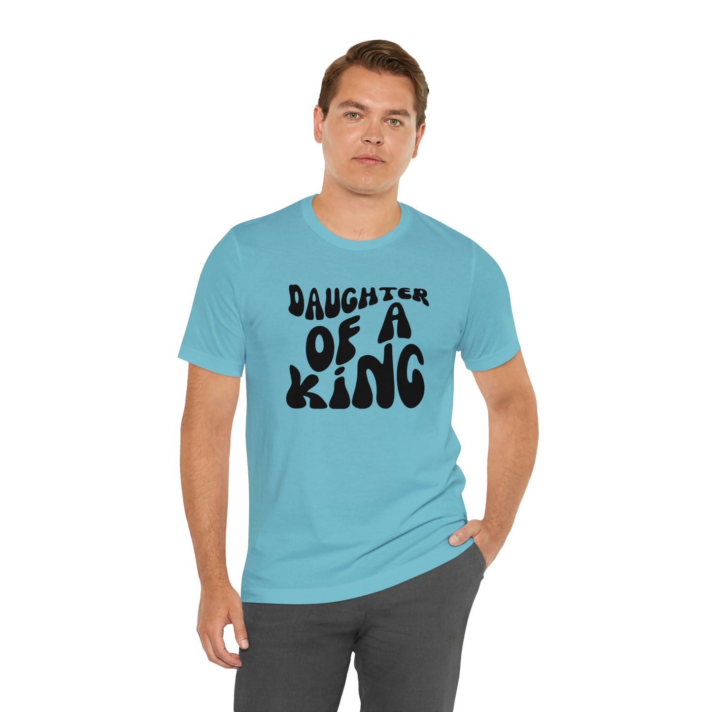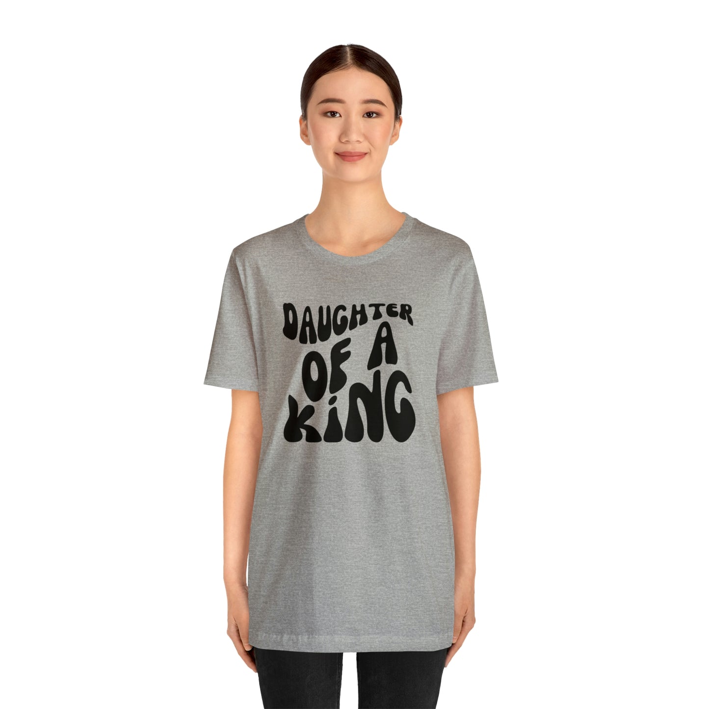 The words "Daughter of a King" take center stage, elegantly displayed on the fabric in a script that exudes confidence and sophistication. The message serves as a powerful reminder of your inherent worth, a declaration that you are no ordinary individual. As the offspring of a king, you possess a regal heritage, a legacy of strength, and a spirit that shines with greatness.