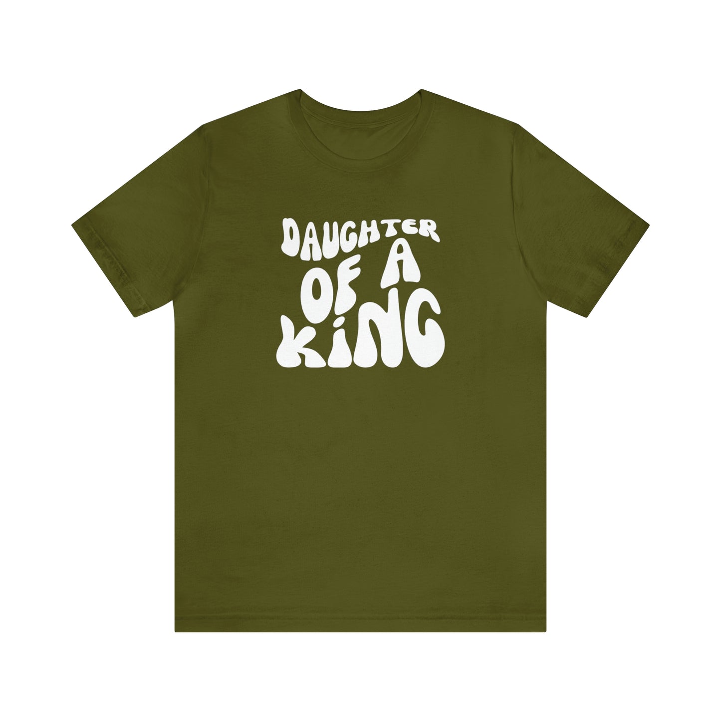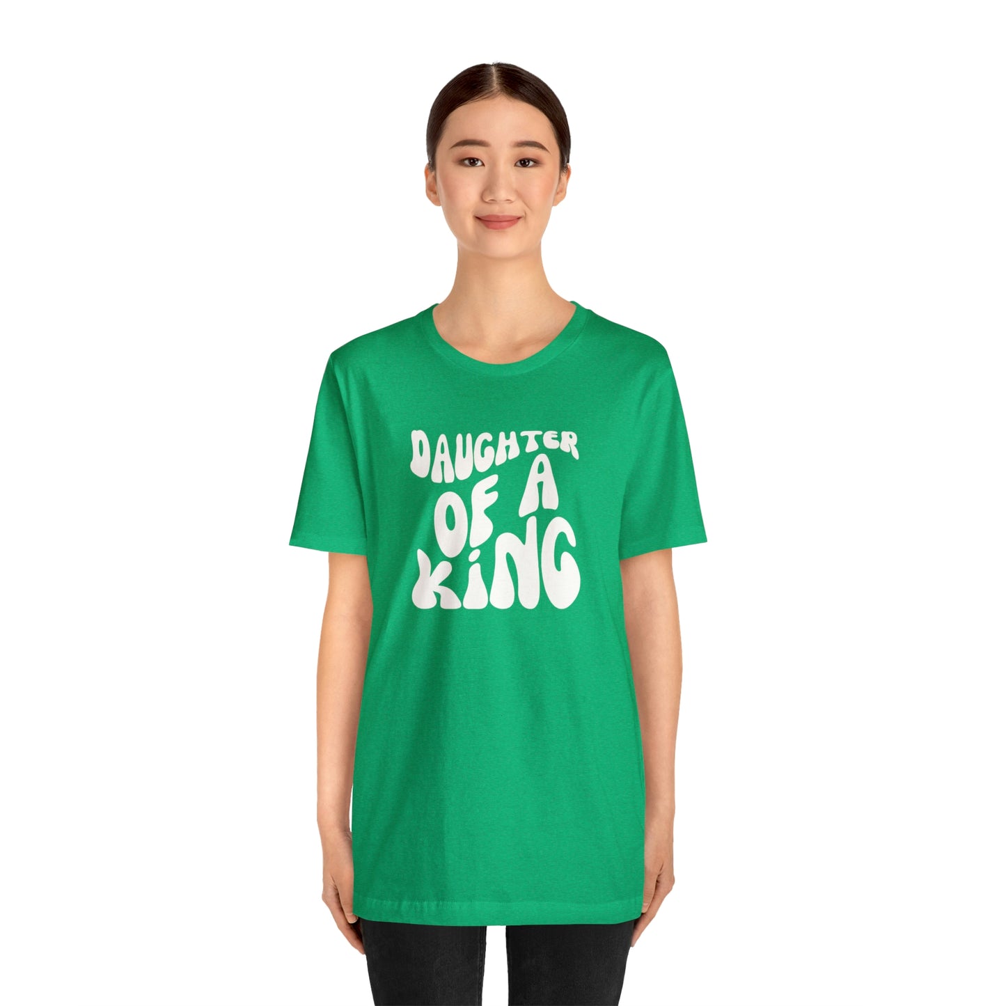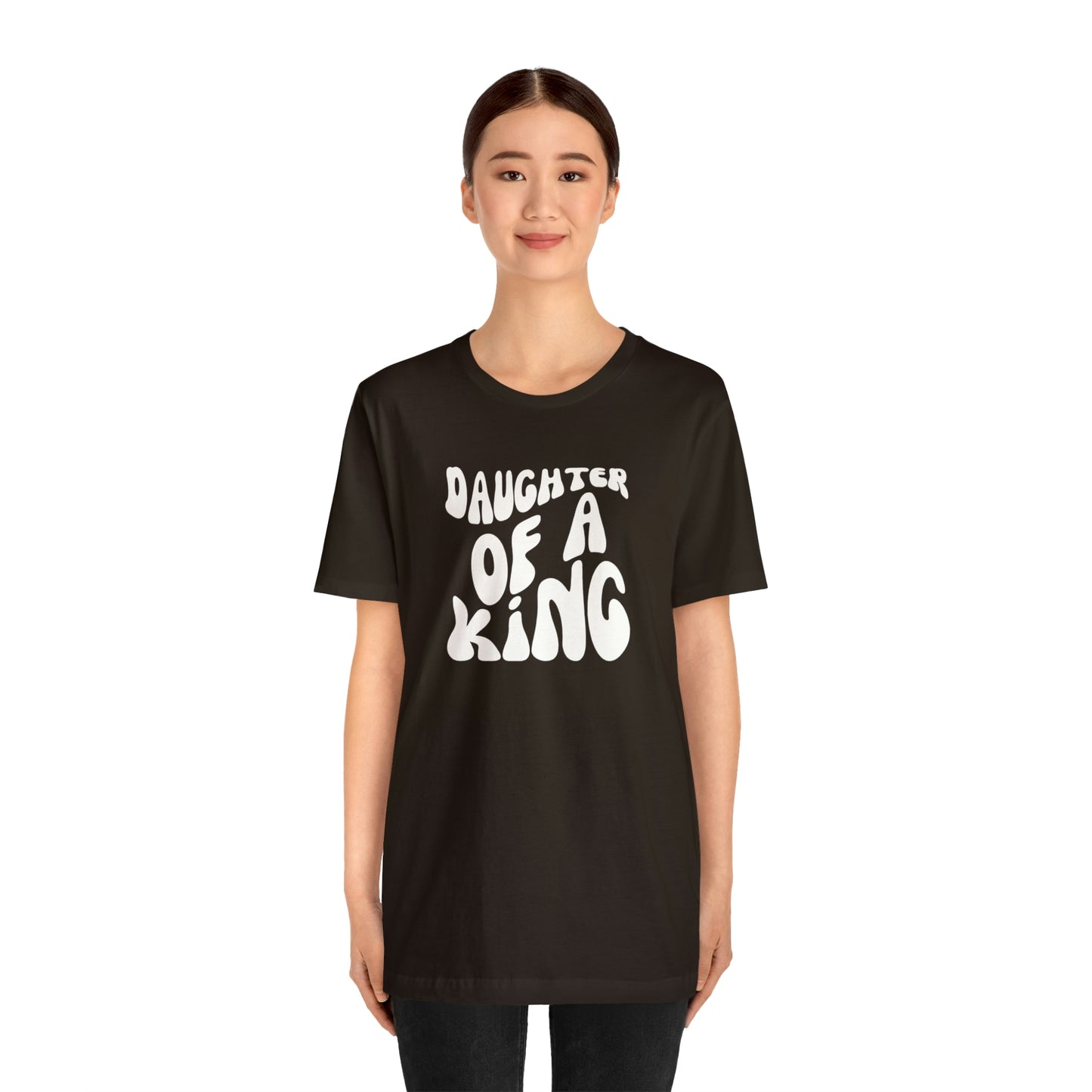 The words "Daughter of a King" take center stage, elegantly displayed on the fabric in a script that exudes confidence and sophistication. The message serves as a powerful reminder of your inherent worth, a declaration that you are no ordinary individual. As the offspring of a king, you possess a regal heritage, a legacy of strength, and a spirit that shines with greatness.