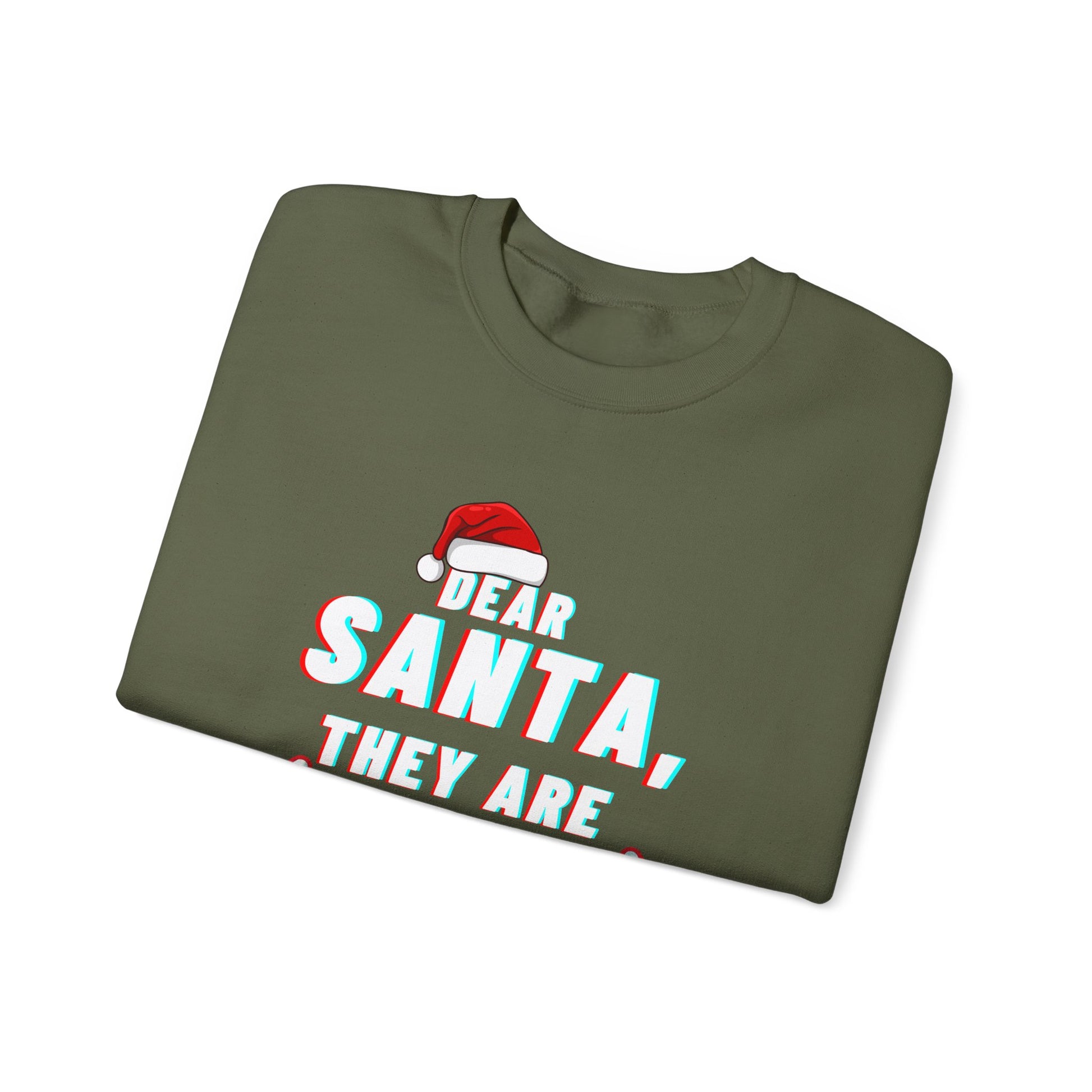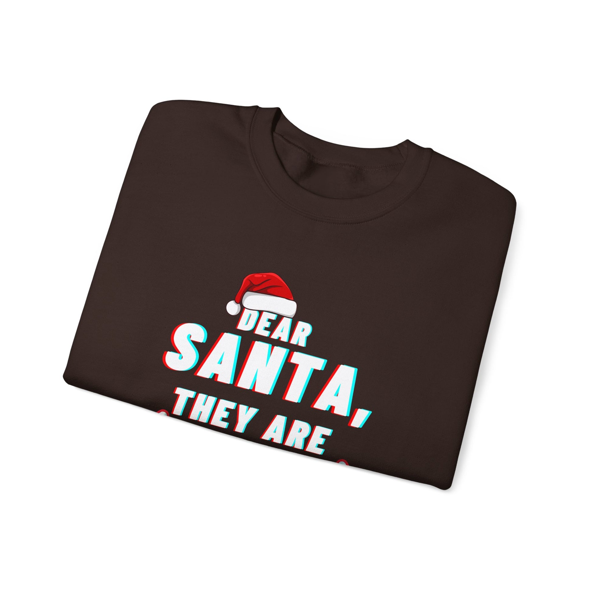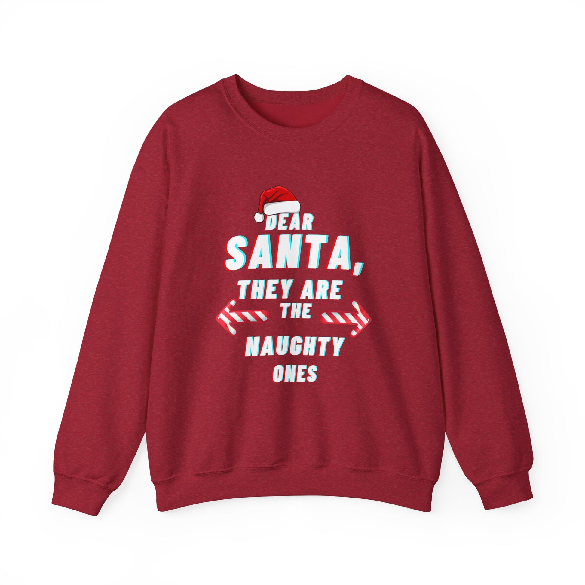 Introducing the Dear Santa, They Are the Naughty Ones Ugly Christmas Sweater – the ultimate way to shift the blame and spread some holiday humor! 🎅🎄 This playful sweater features the message "Dear Santa, They Are the Naughty Ones" with bold arrows pointing to the left and right, making sure everyone knows you're off the hook! Perfect for family gatherings, holiday parties, or ugly sweater contests, this cozy sweater will have everyone laughing. Add a little festive mischief to your wardrobe and let your sweater do the talking this Christmas season! 🎁😂