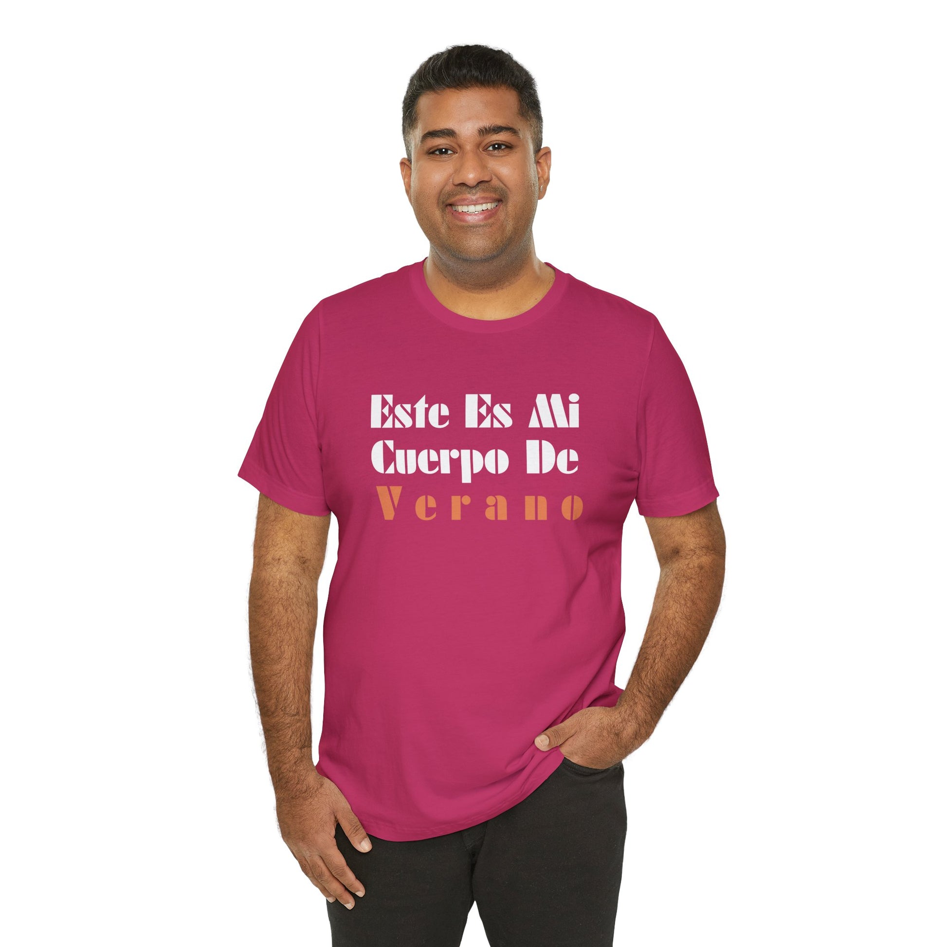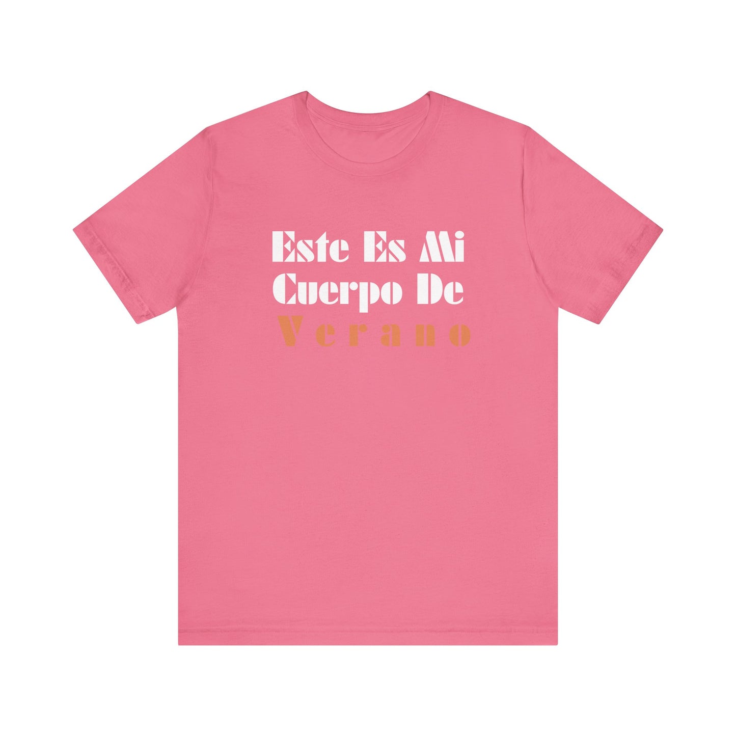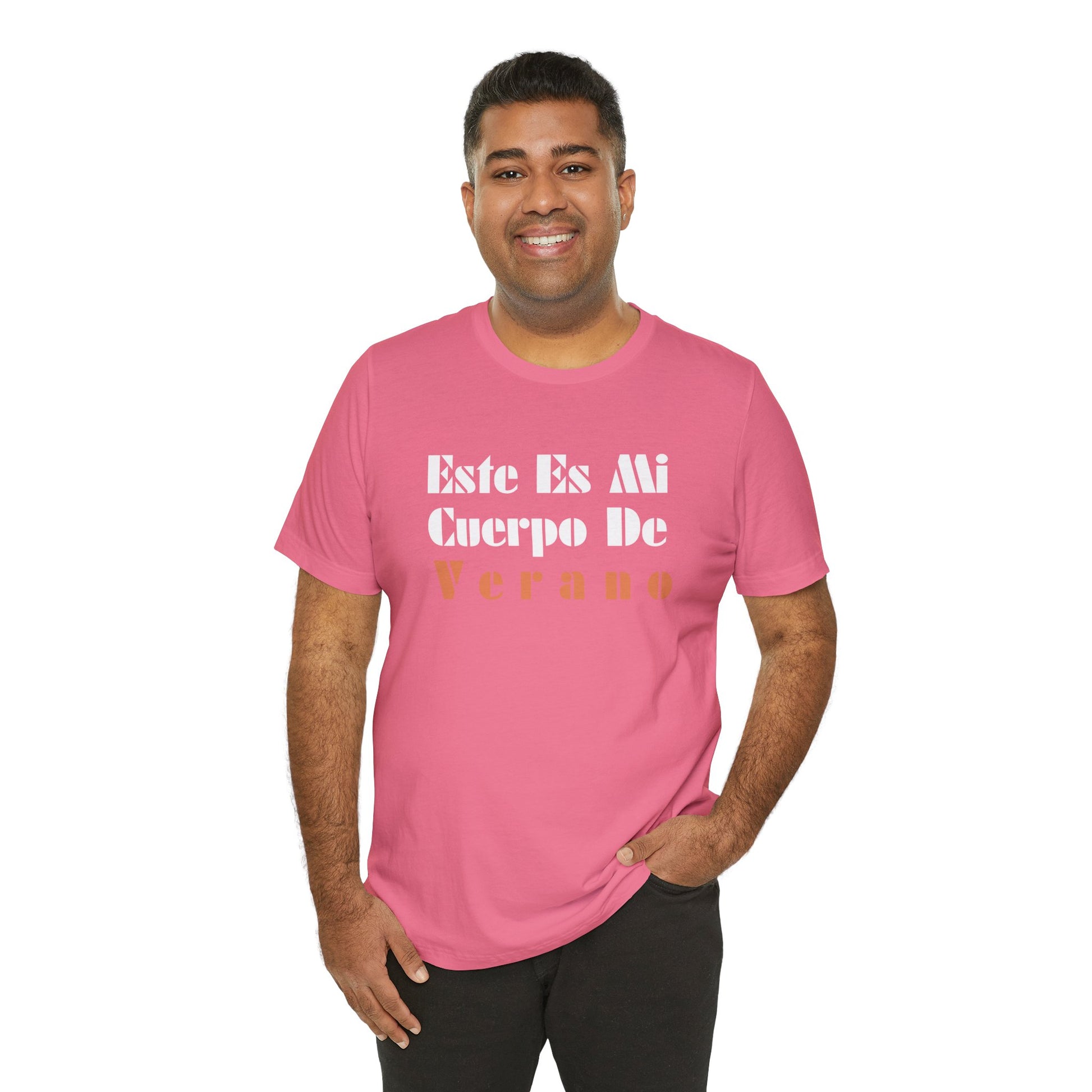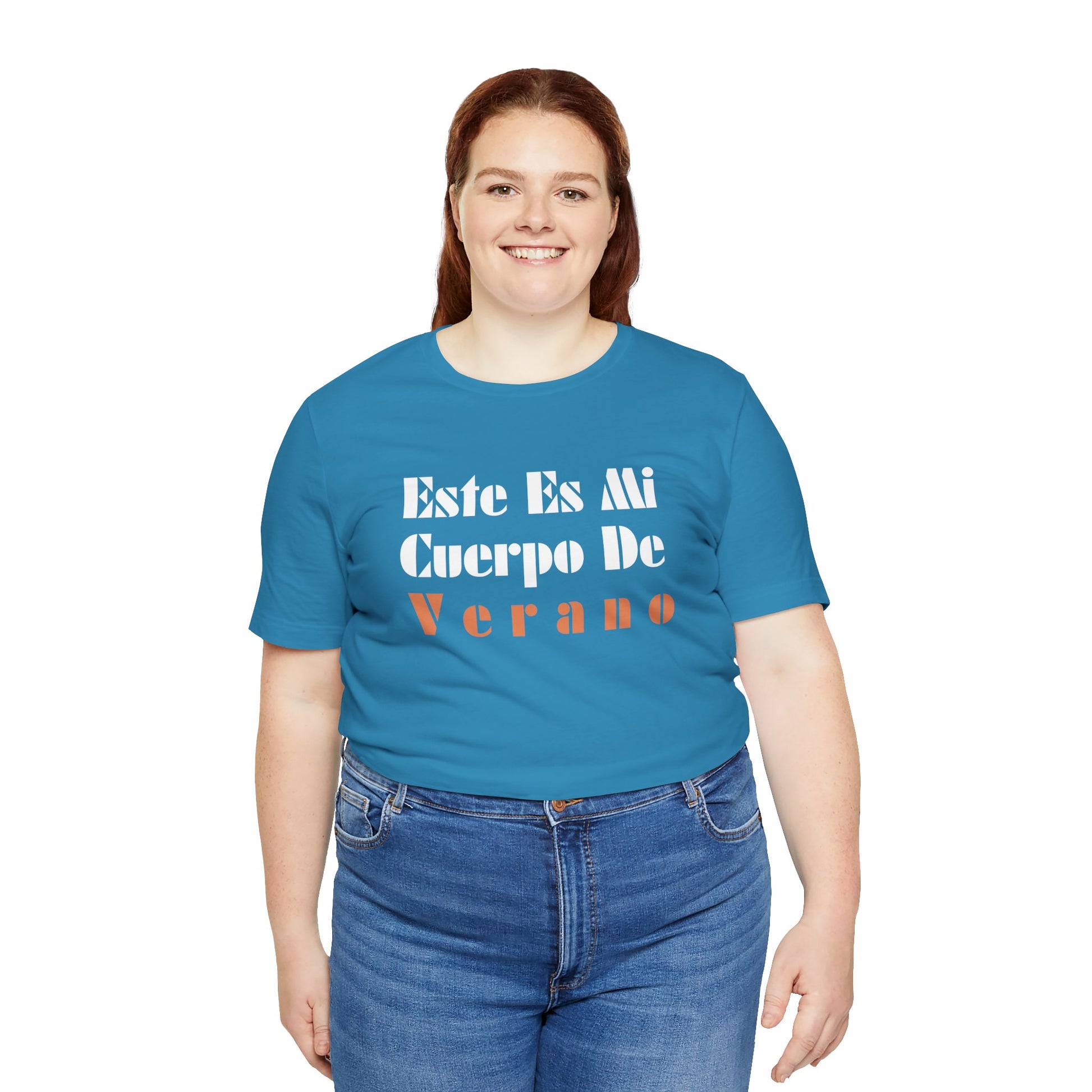 El mensaje estampado en la camiseta, "Este es mi cuerpo de verano", es una declaración audaz y empoderadora. Te recuerda que tu cuerpo es único, hermoso y digno de ser celebrado en todas sus formas y tamaños. Es un llamado a desafiar los estándares de belleza restrictivos y a amarte a ti misma sin condiciones ni comparaciones.