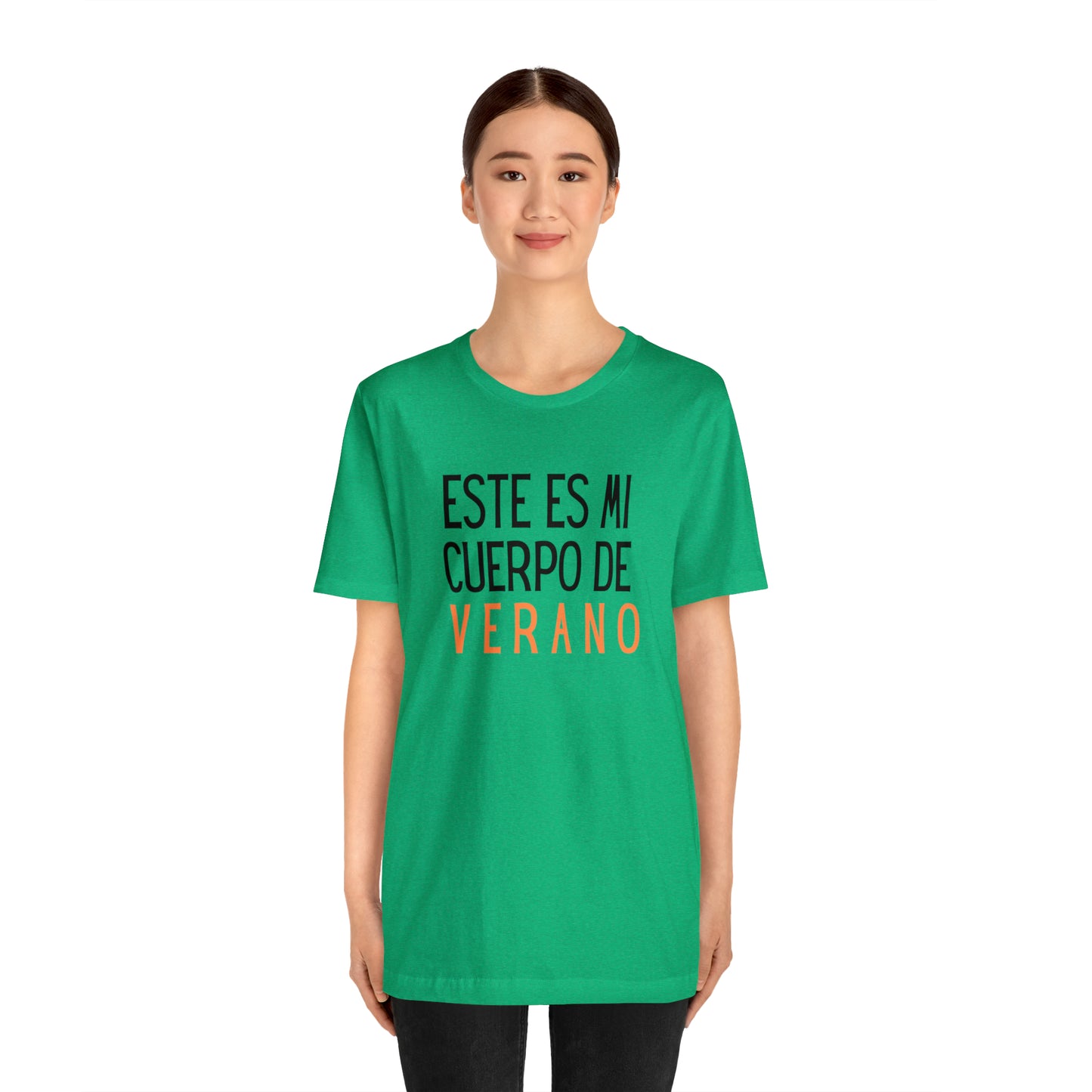 El mensaje estampado en la camiseta, "Este es mi cuerpo de verano", es una declaración audaz y empoderadora. Te recuerda que tu cuerpo es único, hermoso y digno de ser celebrado en todas sus formas y tamaños. Es un llamado a desafiar los estándares de belleza restrictivos y a amarte a ti misma sin condiciones ni comparaciones.