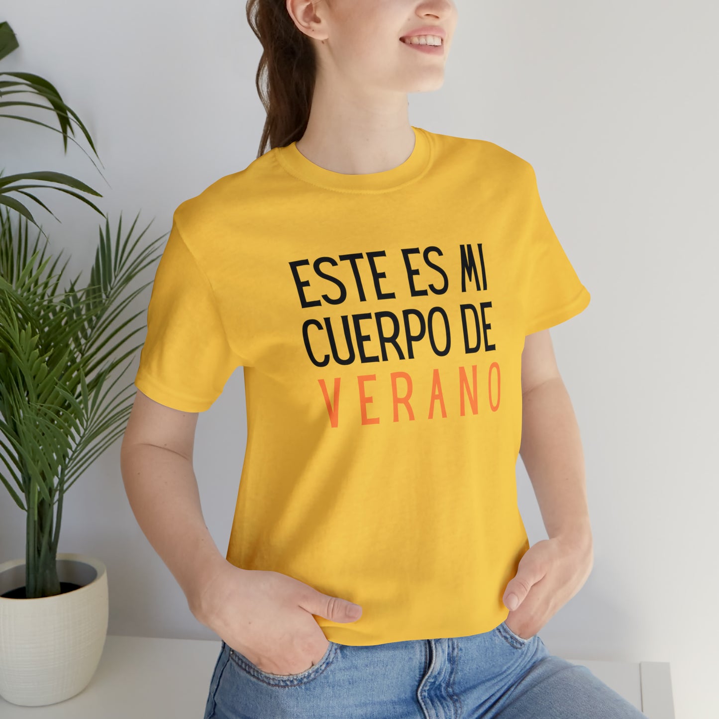 La camiseta "Este es mi cuerpo de verano" presenta un diseño moderno y versátil, con una silueta cómoda y favorecedora que se adapta a diferentes estilos y ocasiones. Está confeccionada con materiales suaves y transpirables que te mantienen fresca y cómoda durante los días soleados.