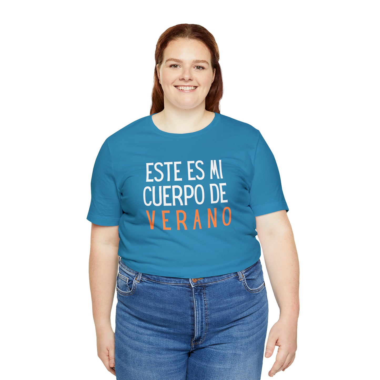 Únete al movimiento de amor propio y celebra tu cuerpo con la camiseta "Este es mi cuerpo de verano". Permítete ser auténtica, valiente y radiante. Que esta camiseta sea un recordatorio diario de que eres única, hermosa y digna de amor y respeto.