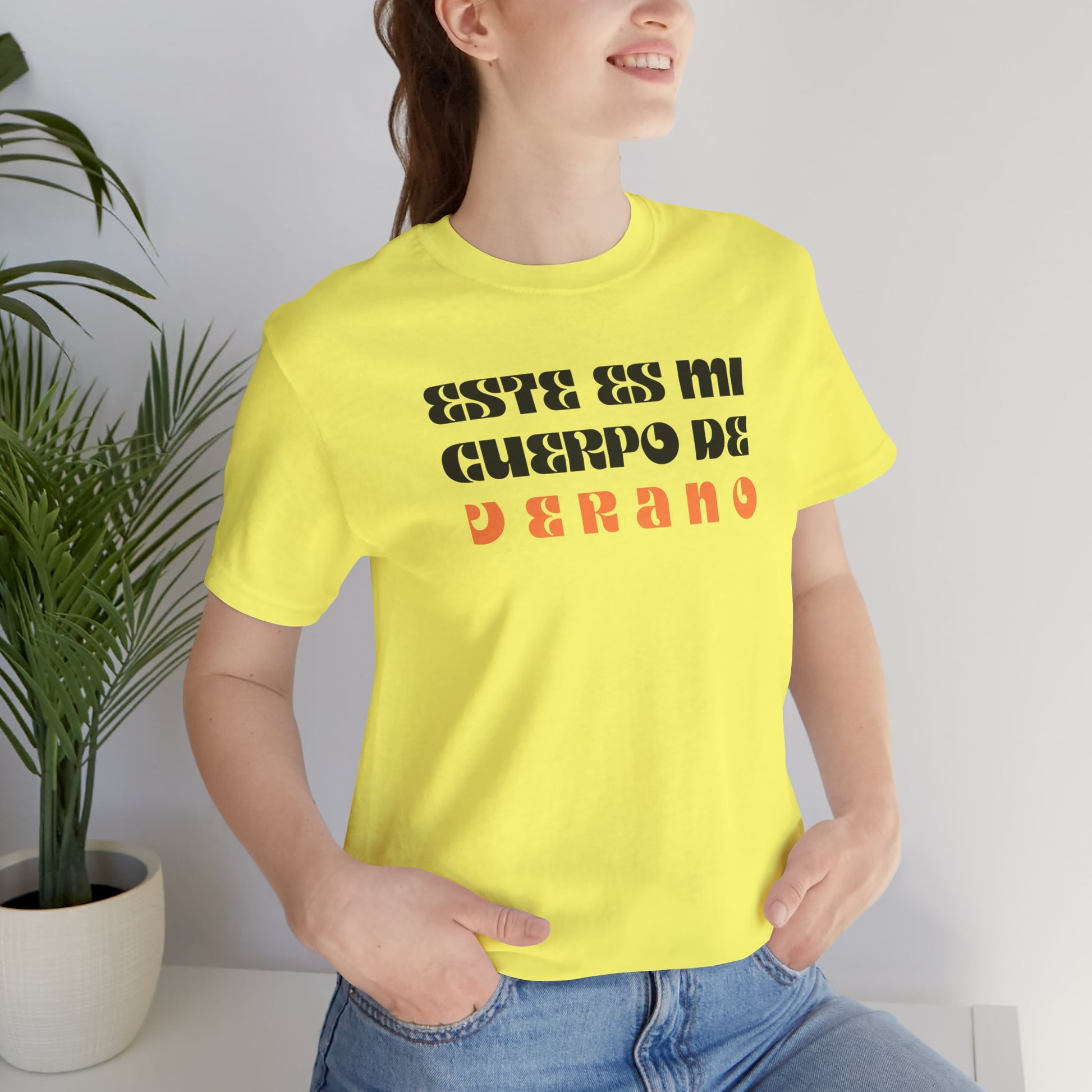La camiseta "Este es mi cuerpo de verano" presenta un diseño moderno y versátil, con una silueta cómoda y favorecedora que se adapta a diferentes estilos y ocasiones. Está confeccionada con materiales suaves y transpirables que te mantienen fresca y cómoda durante los días soleados.