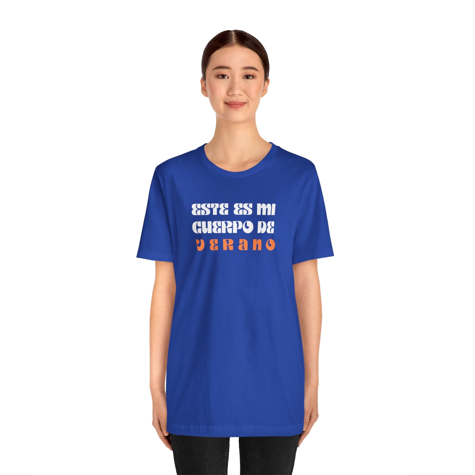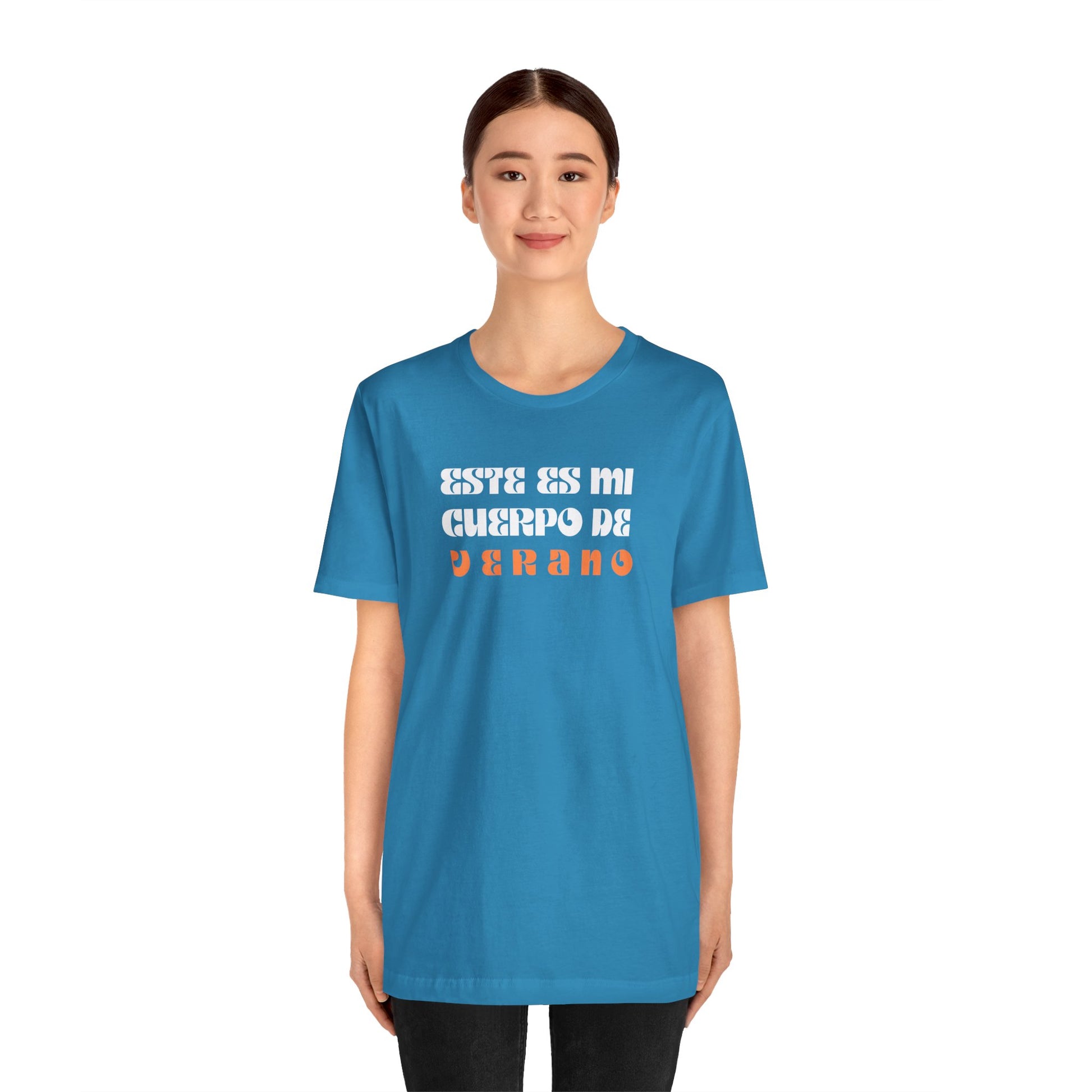 El mensaje estampado en la camiseta, "Este es mi cuerpo de verano", es una declaración audaz y empoderadora. Te recuerda que tu cuerpo es único, hermoso y digno de ser celebrado en todas sus formas y tamaños. Es un llamado a desafiar los estándares de belleza restrictivos y a amarte a ti misma sin condiciones ni comparaciones.