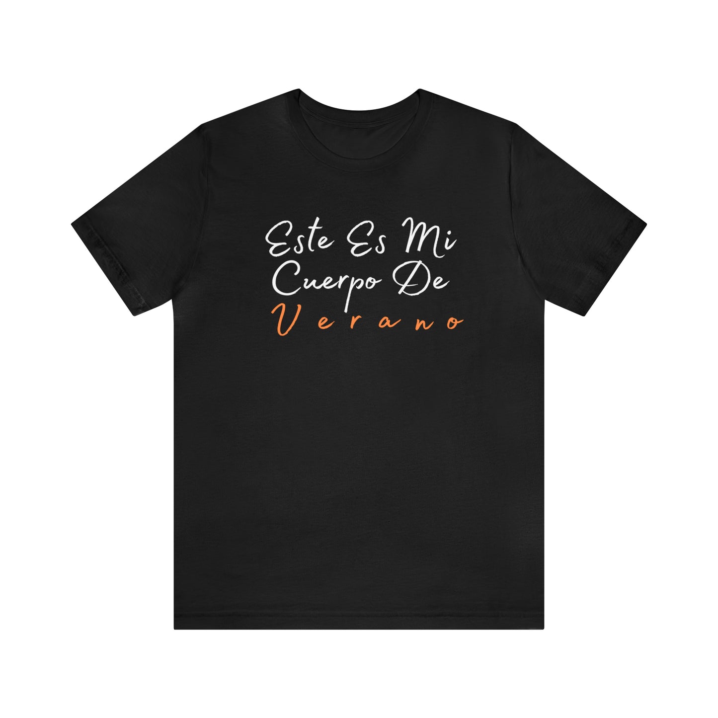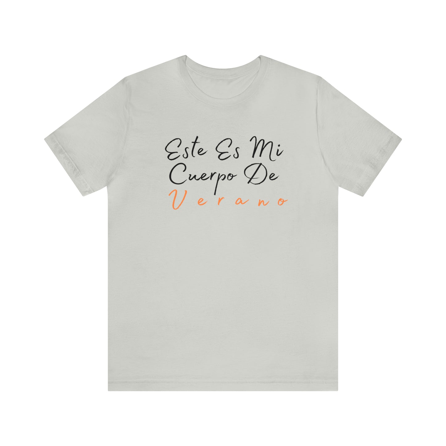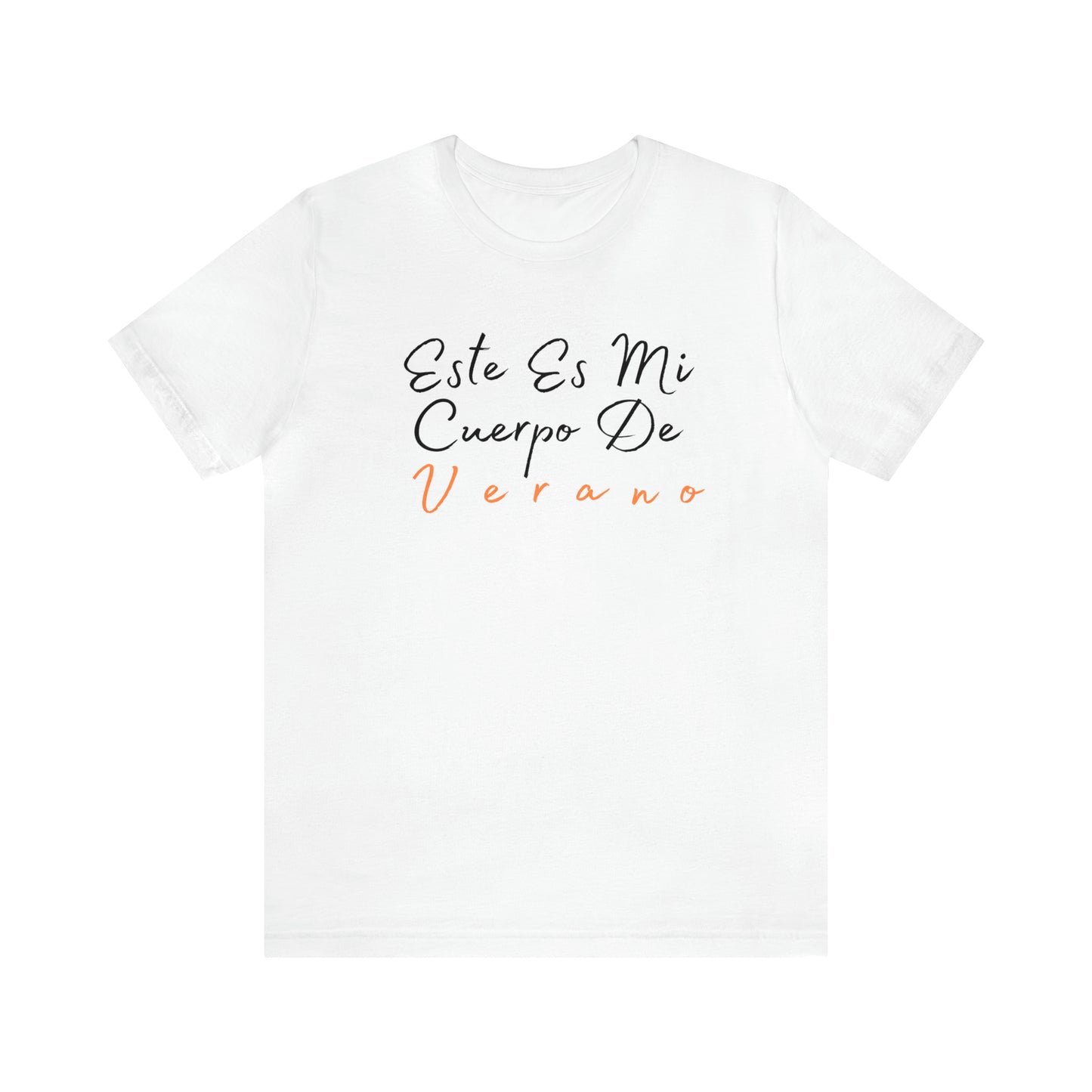 El mensaje estampado en la camiseta, "Este es mi cuerpo de verano", es una declaración audaz y empoderadora. Te recuerda que tu cuerpo es único, hermoso y digno de ser celebrado en todas sus formas y tamaños. Es un llamado a desafiar los estándares de belleza restrictivos y a amarte a ti misma sin condiciones ni comparaciones.