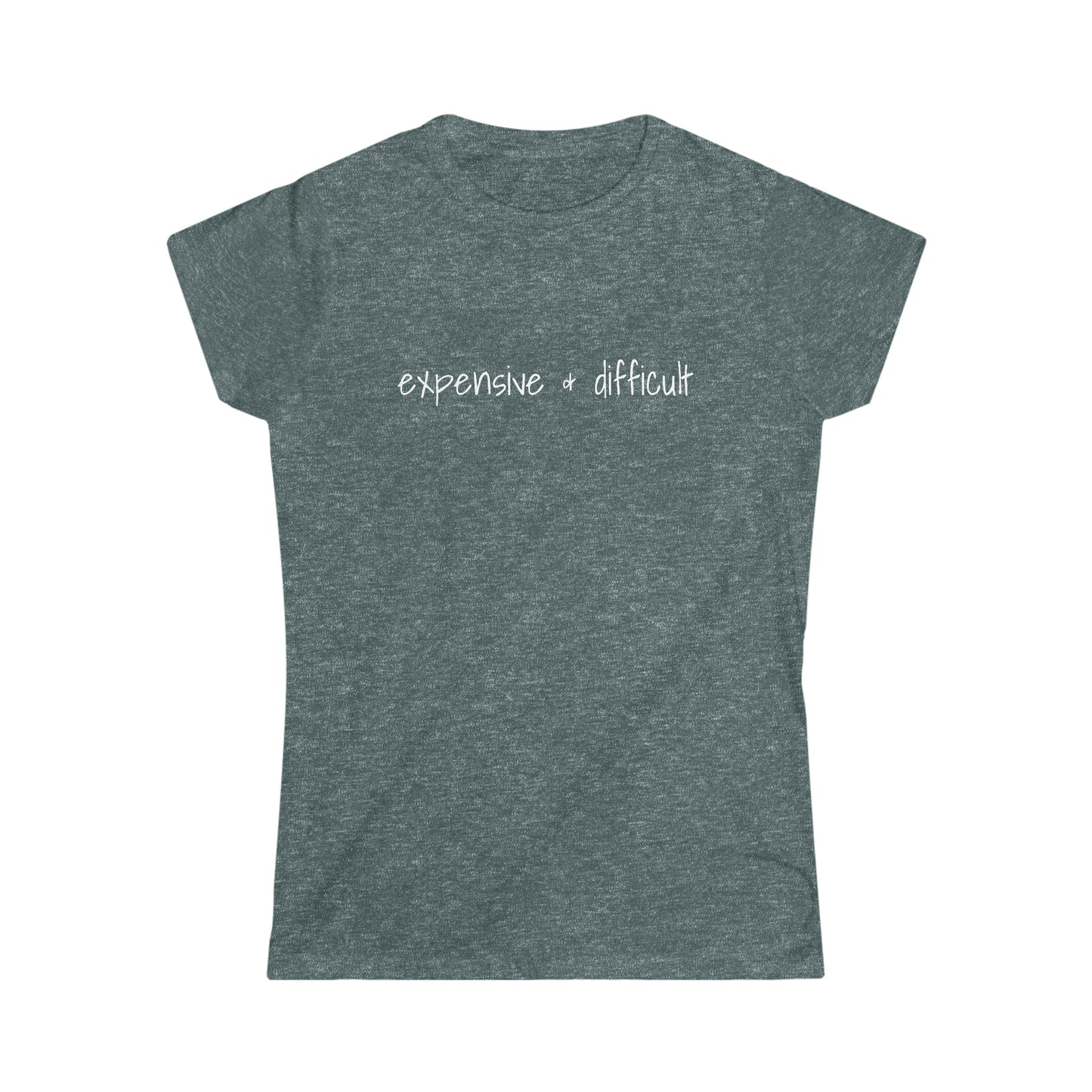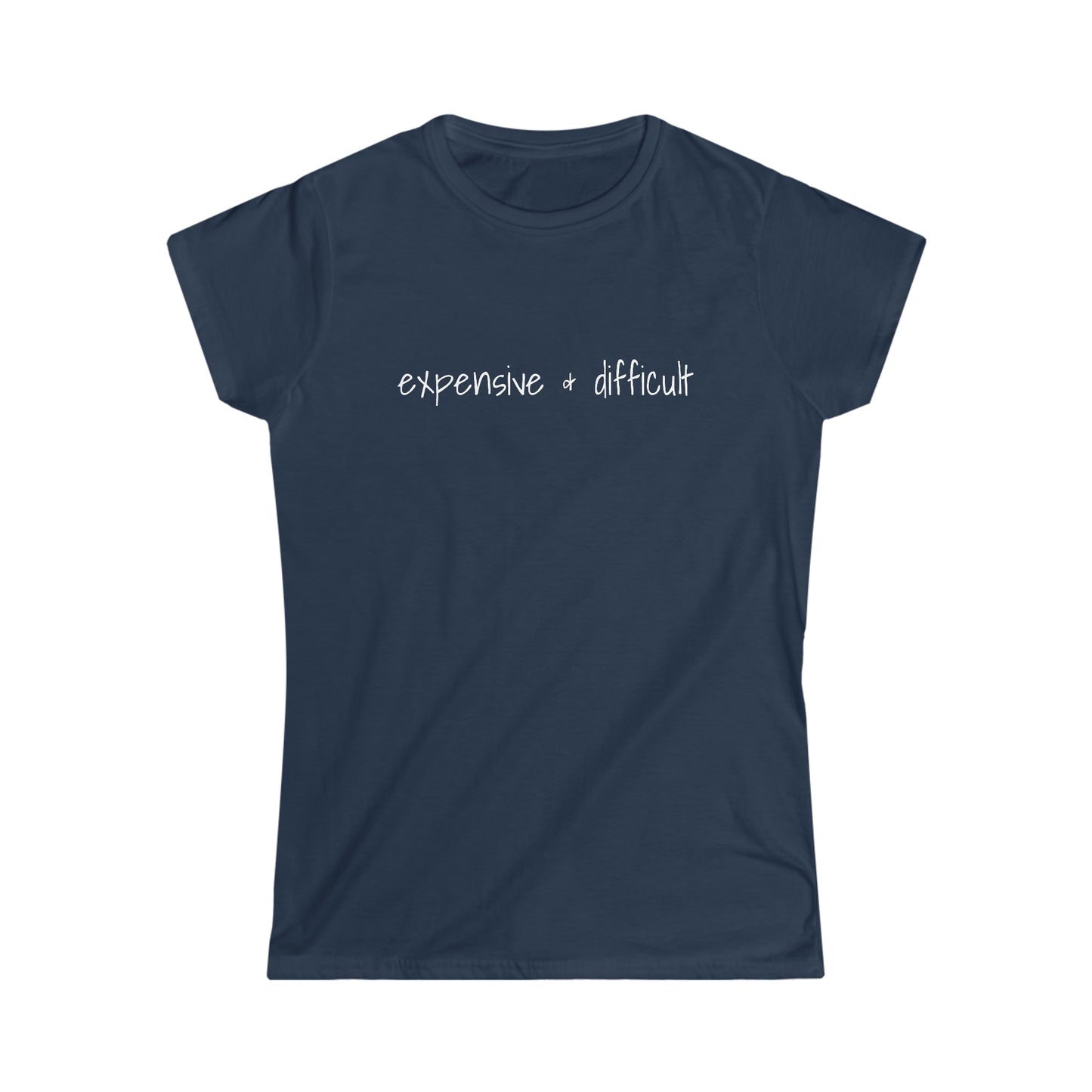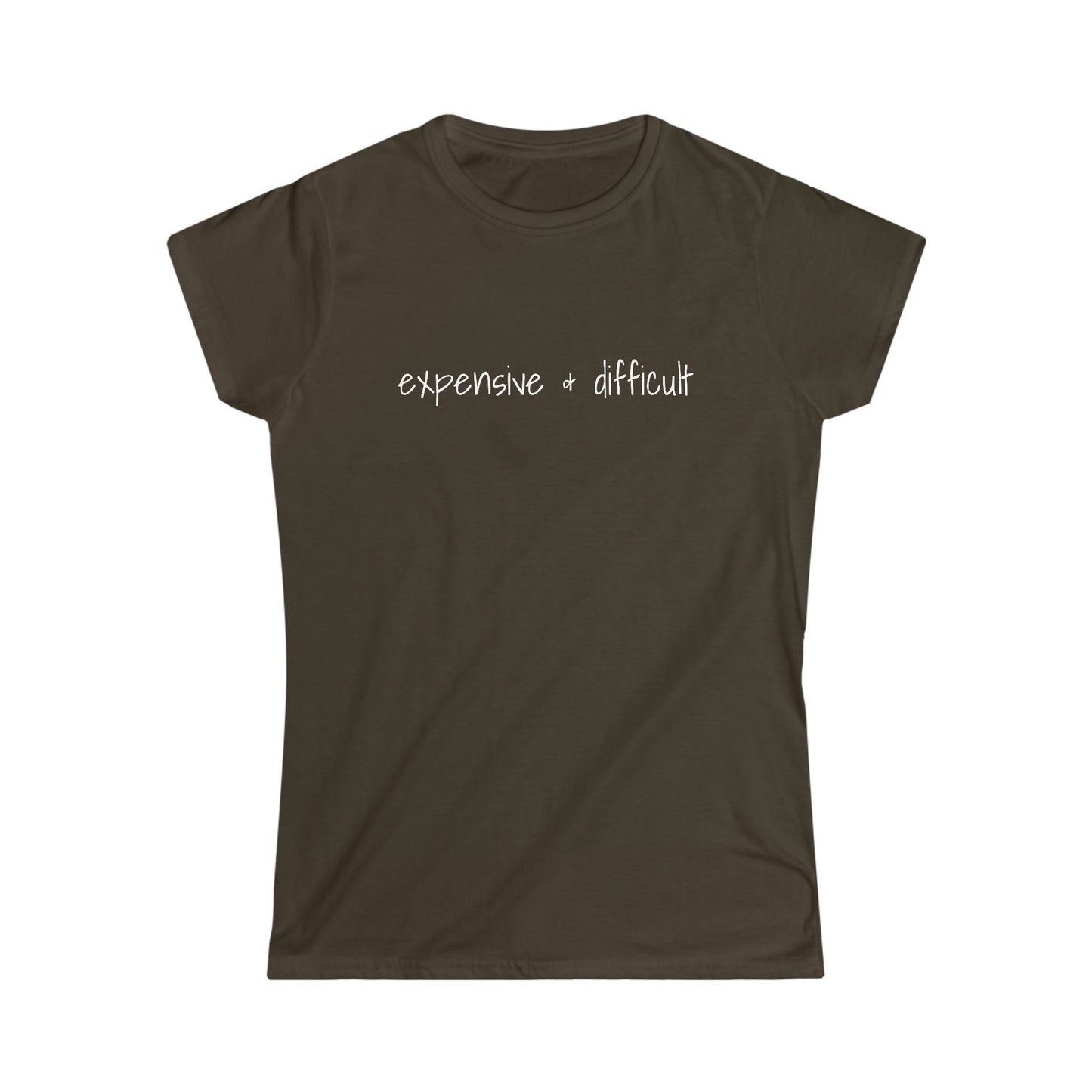 Women's T-shirt, Expensive & Difficult, Bold Print, High-quality, Soft Cotton, Fashion-forward, Confident Women, Embrace Challenges, Casual, Streetwear, Everyday Wear, Unique, Eye-catching Design, Available in Multiple Sizes.