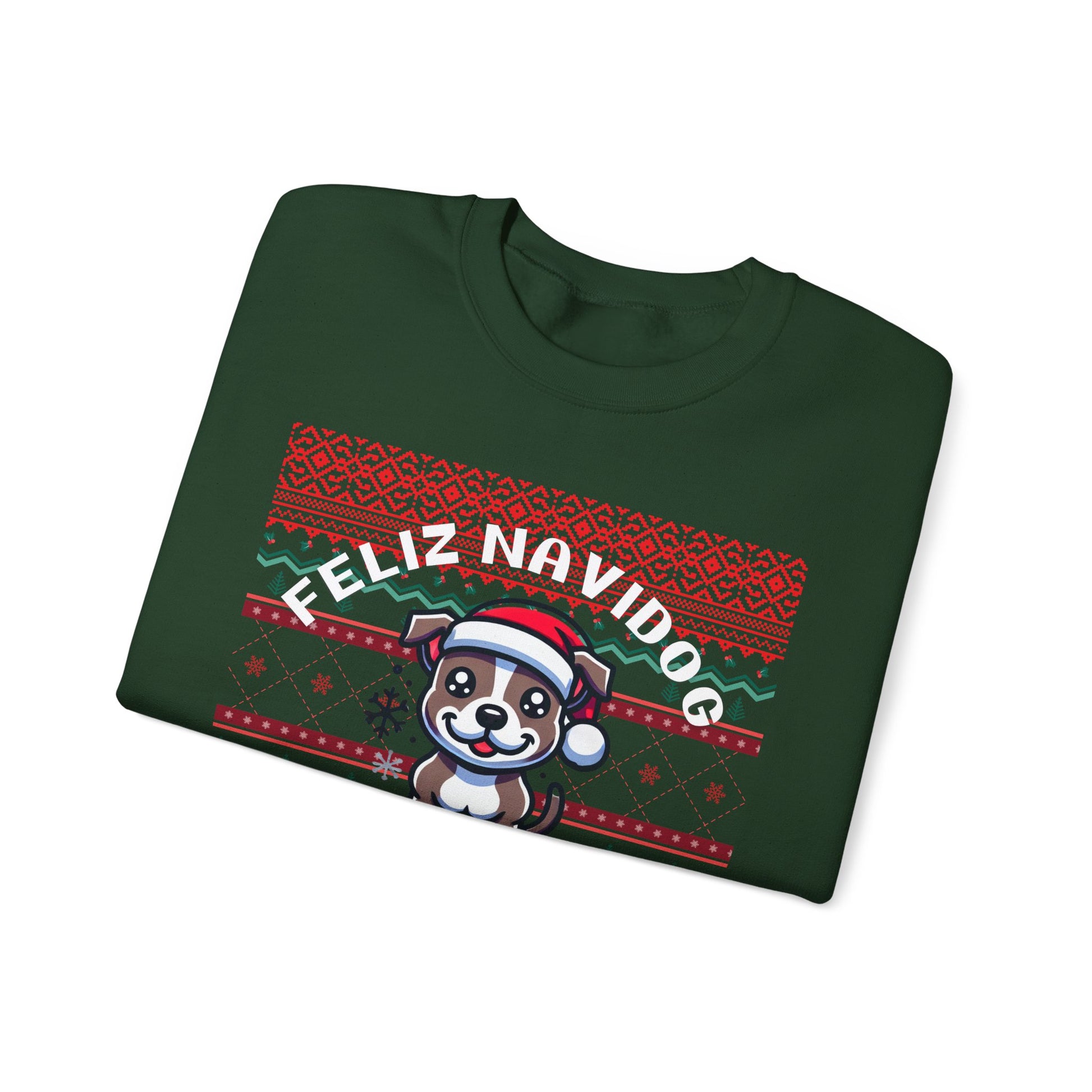 Get ready to paws-itively sleigh this holiday season with our Feliz Navidog Ugly Christmas Sweater! This festive and playful sweater features an adorable dog decked out in a Santa hat, spreading holiday cheer in style. With its bright and bold design, this sweater is the perfect mix of ugly Christmas sweater tradition and dog lover’s delight. Whether you're attending an ugly sweater party, taking holiday photos, or simply spreading some four-legged festive fun, this cozy sweater will have you wagging your tail with joy.
