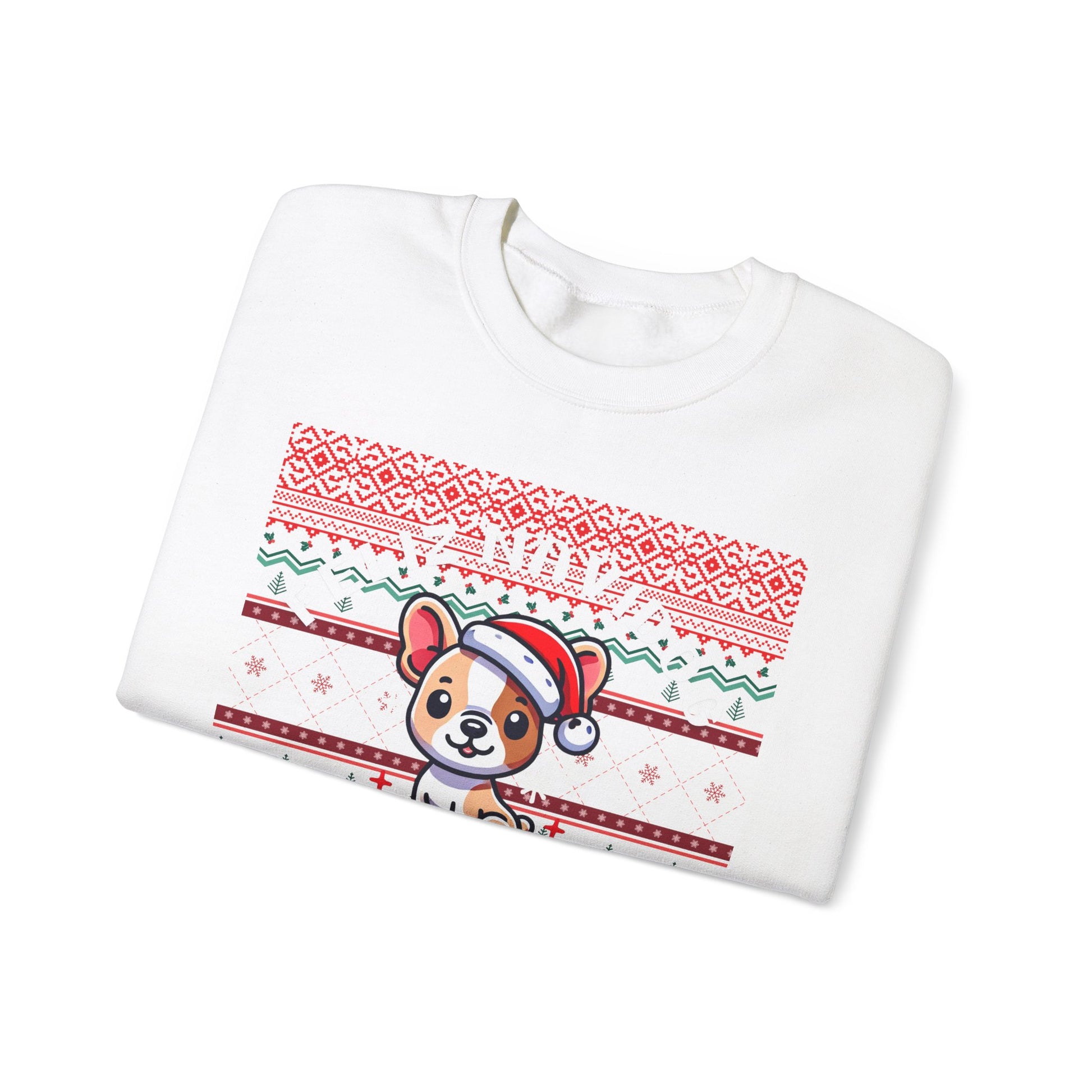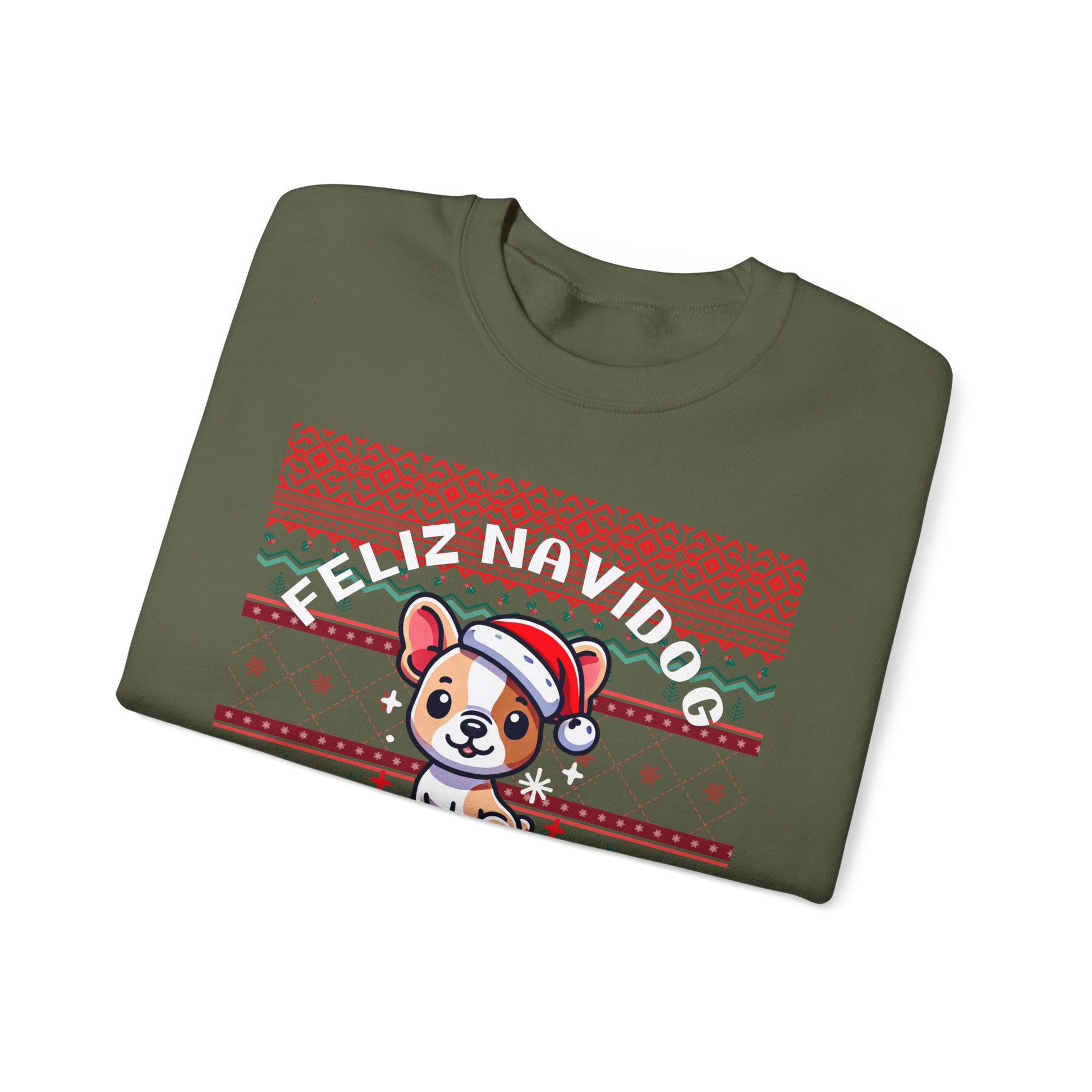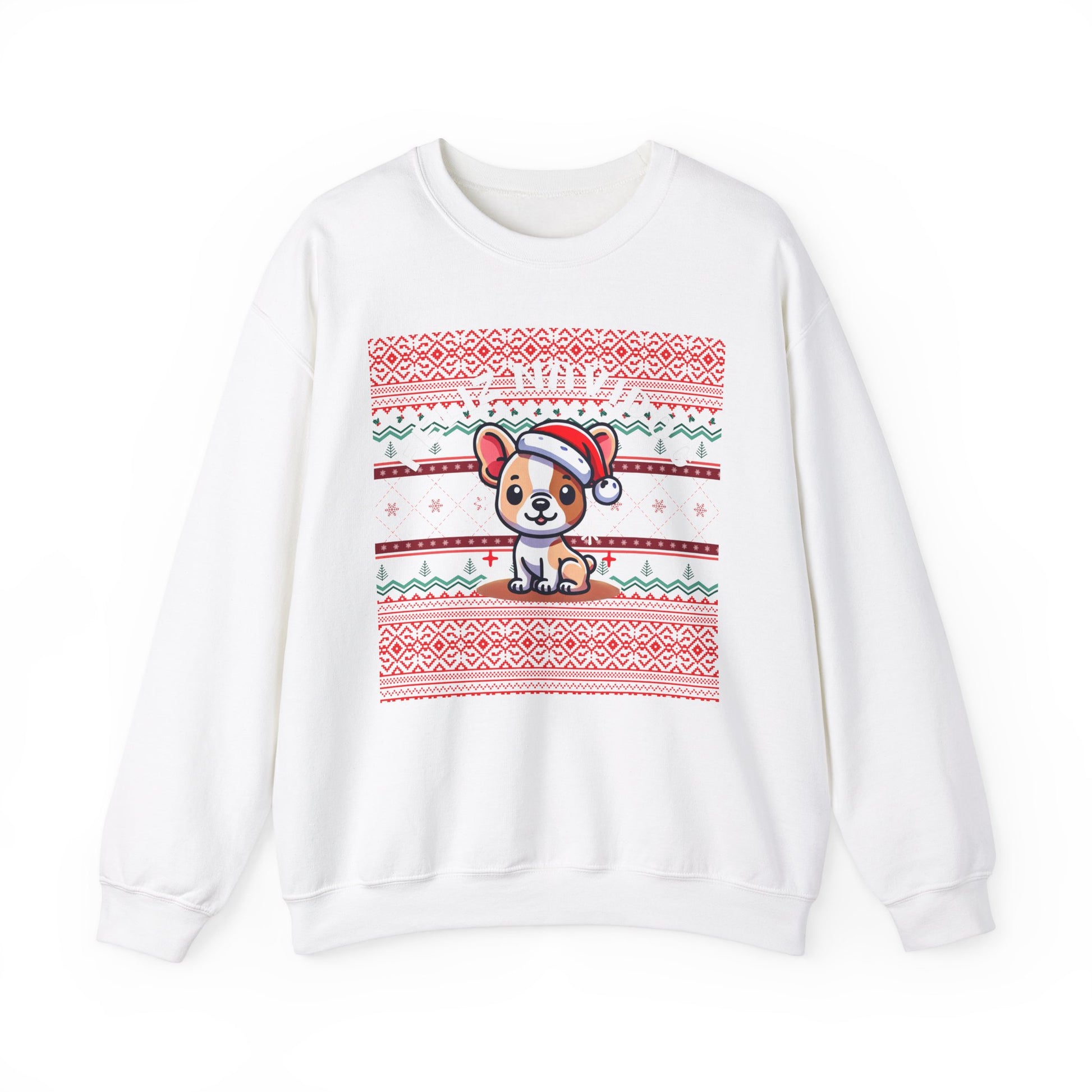 Get ready to paws-itively sleigh this holiday season with our Feliz Navidog Ugly Christmas Sweater! This festive and playful sweater features an adorable dog decked out in a Santa hat, spreading holiday cheer in style. With its bright and bold design, this sweater is the perfect mix of ugly Christmas sweater tradition and dog lover’s delight. Whether you're attending an ugly sweater party, taking holiday photos, or simply spreading some four-legged festive fun, this cozy sweater will have you wagging your tail with joy.