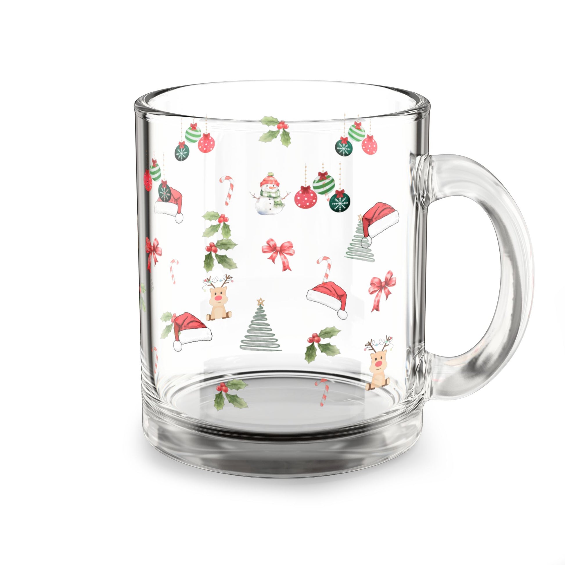 Festive Holiday Glass Mug, 10oz - Perfect for Christmas, Winter Parties, Coffee Lovers, Gift for Friends, Home Decor