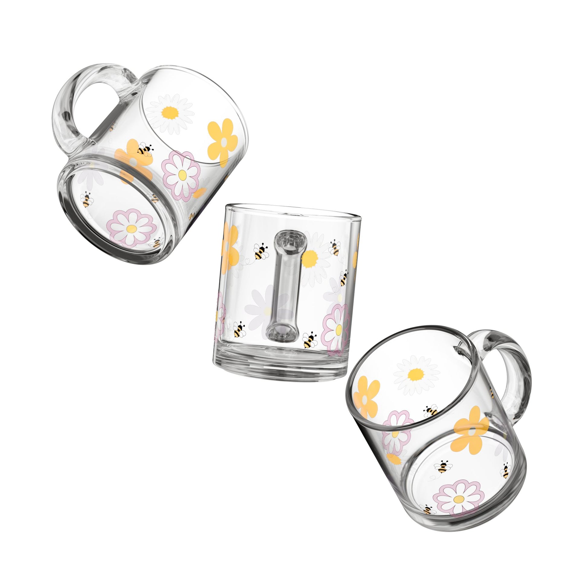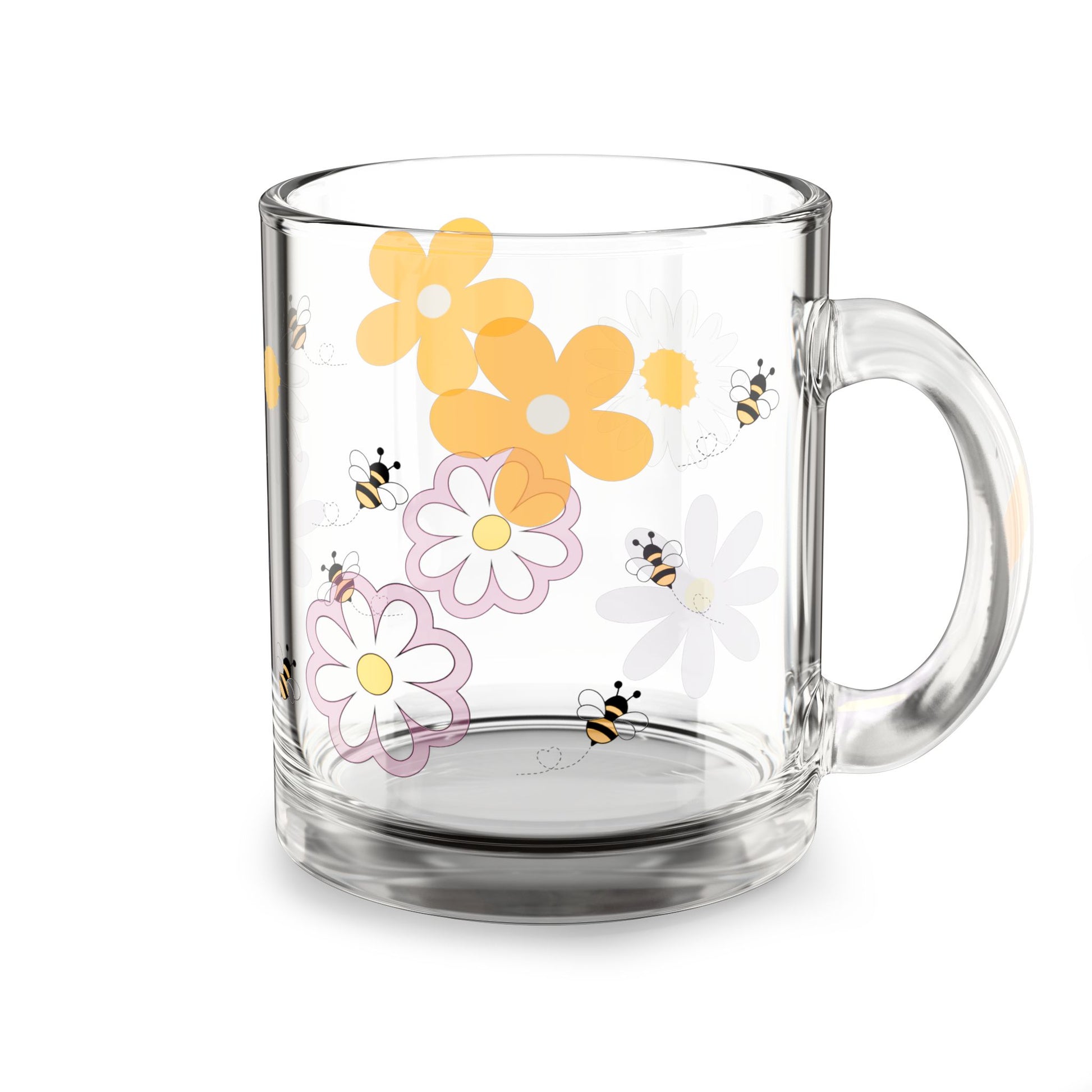 Floral Bee Glass Mug, 10oz - Cute Coffee Mug, Gift for Garden Lovers, Spring Decor, Bee-Inspired Drinkware