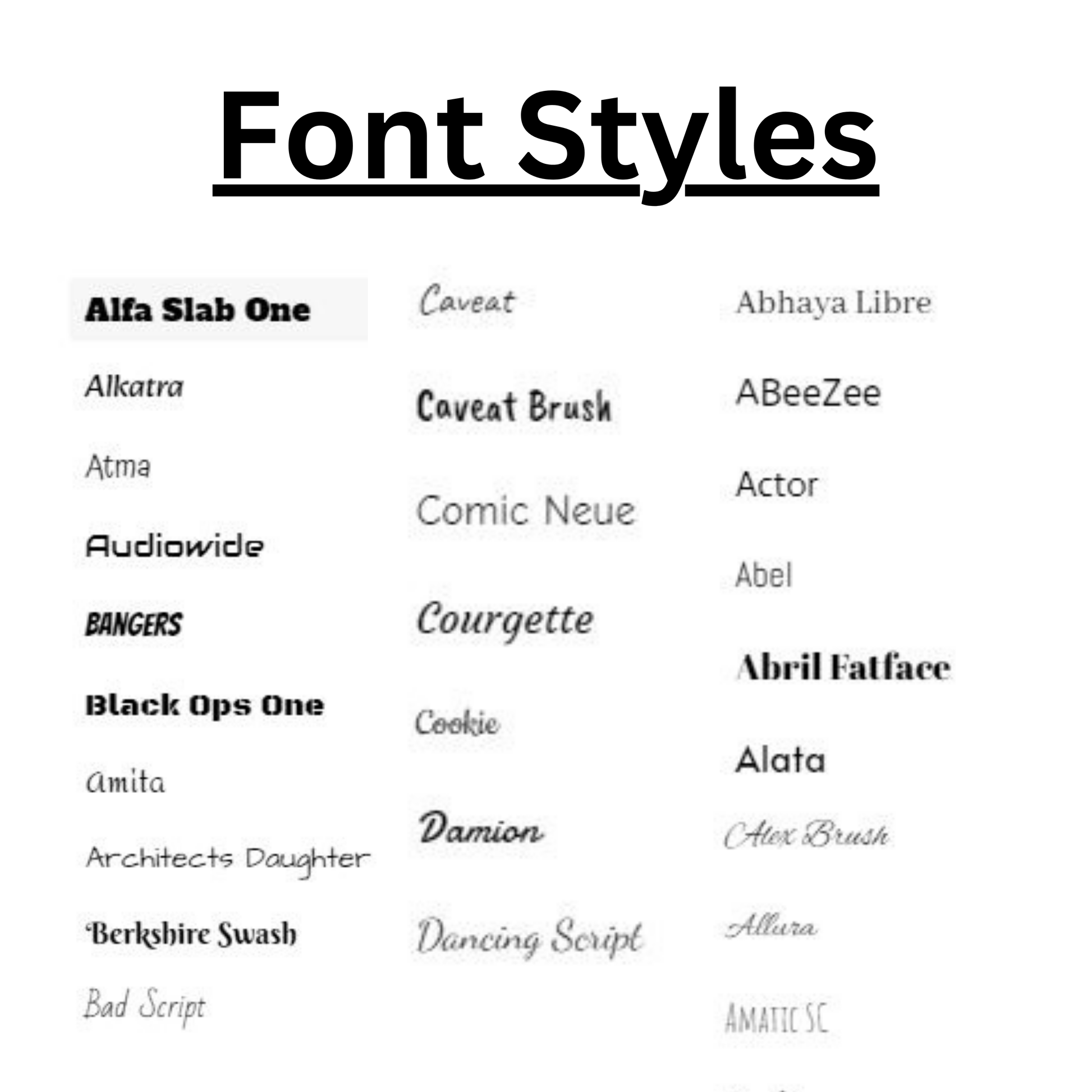 - Choose Your Font: Refer to the provided picture for all font options and write it into the text box.