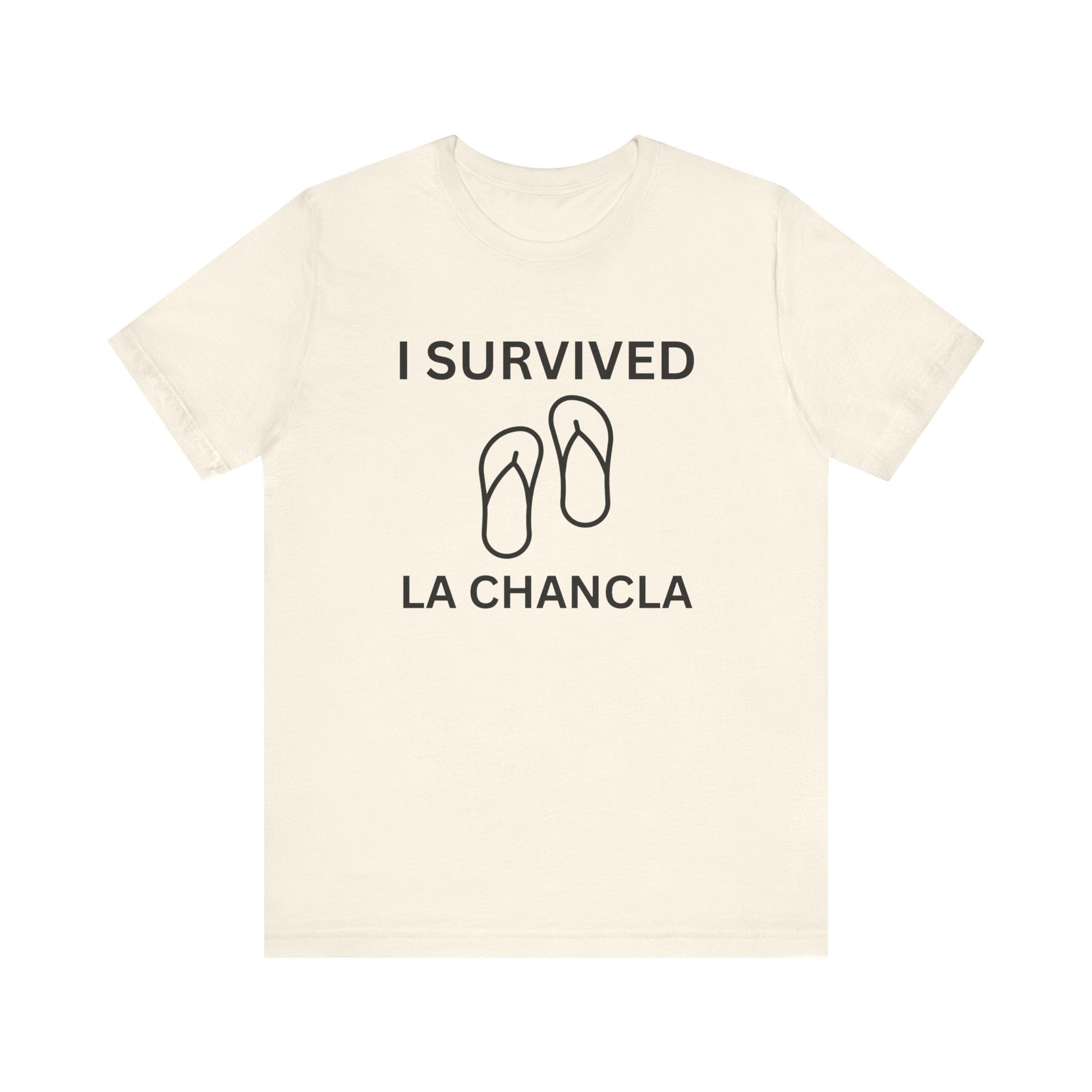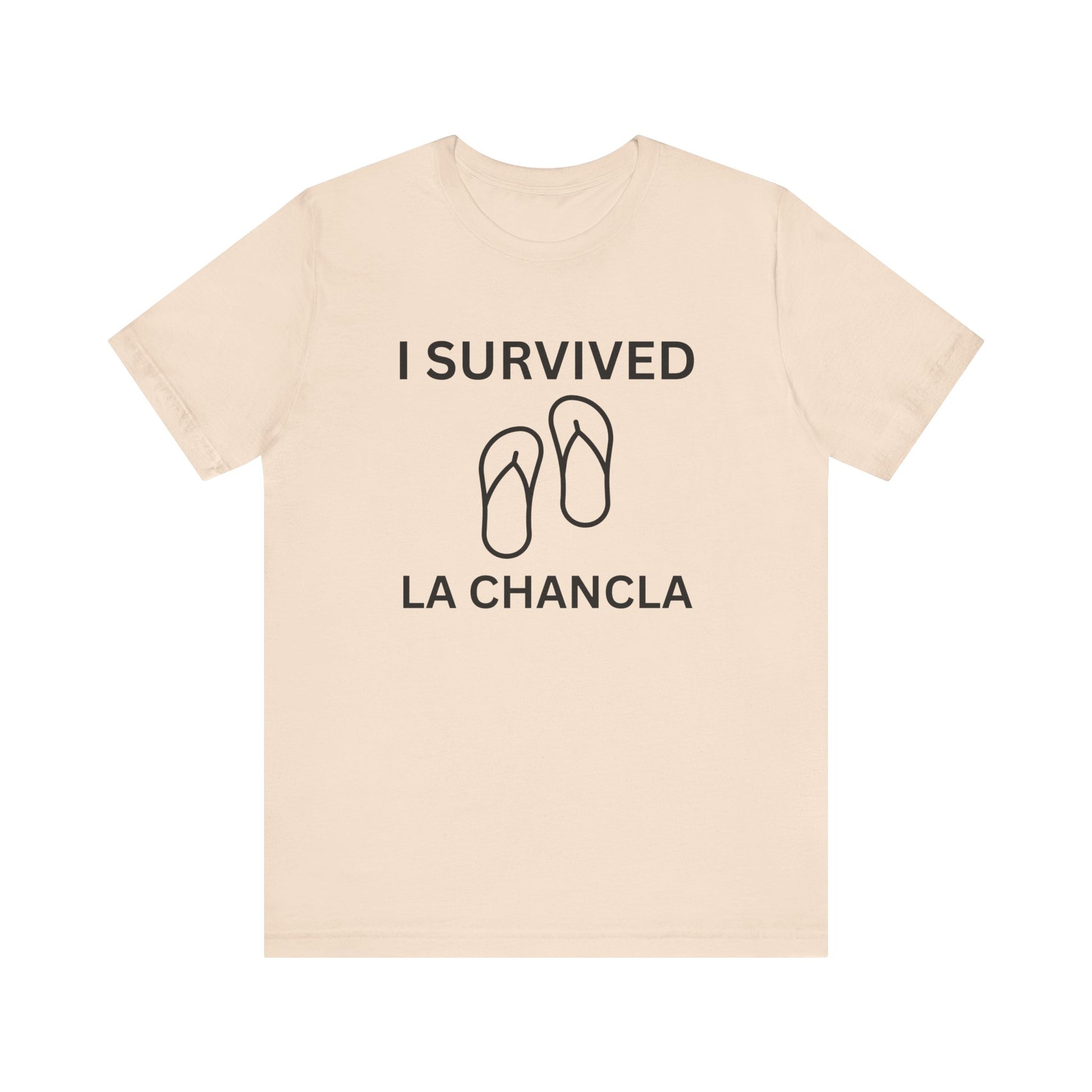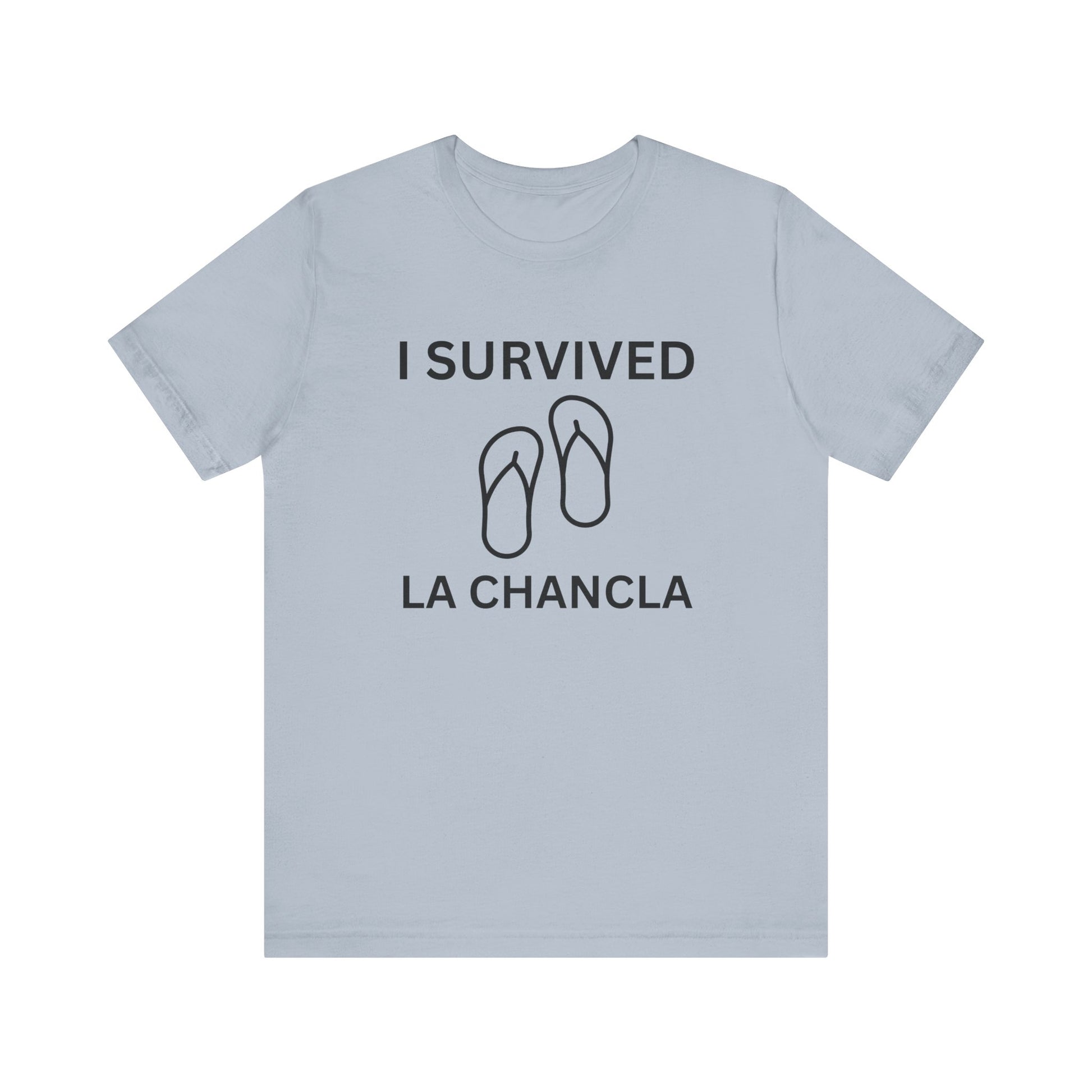 Available in a range of sizes, this unisex shirt is perfect for both men and women who appreciate the cultural significance and humor behind surviving "la chancla." It pairs effortlessly with jeans, shorts, or skirts, making it a versatile addition to your wardrobe.