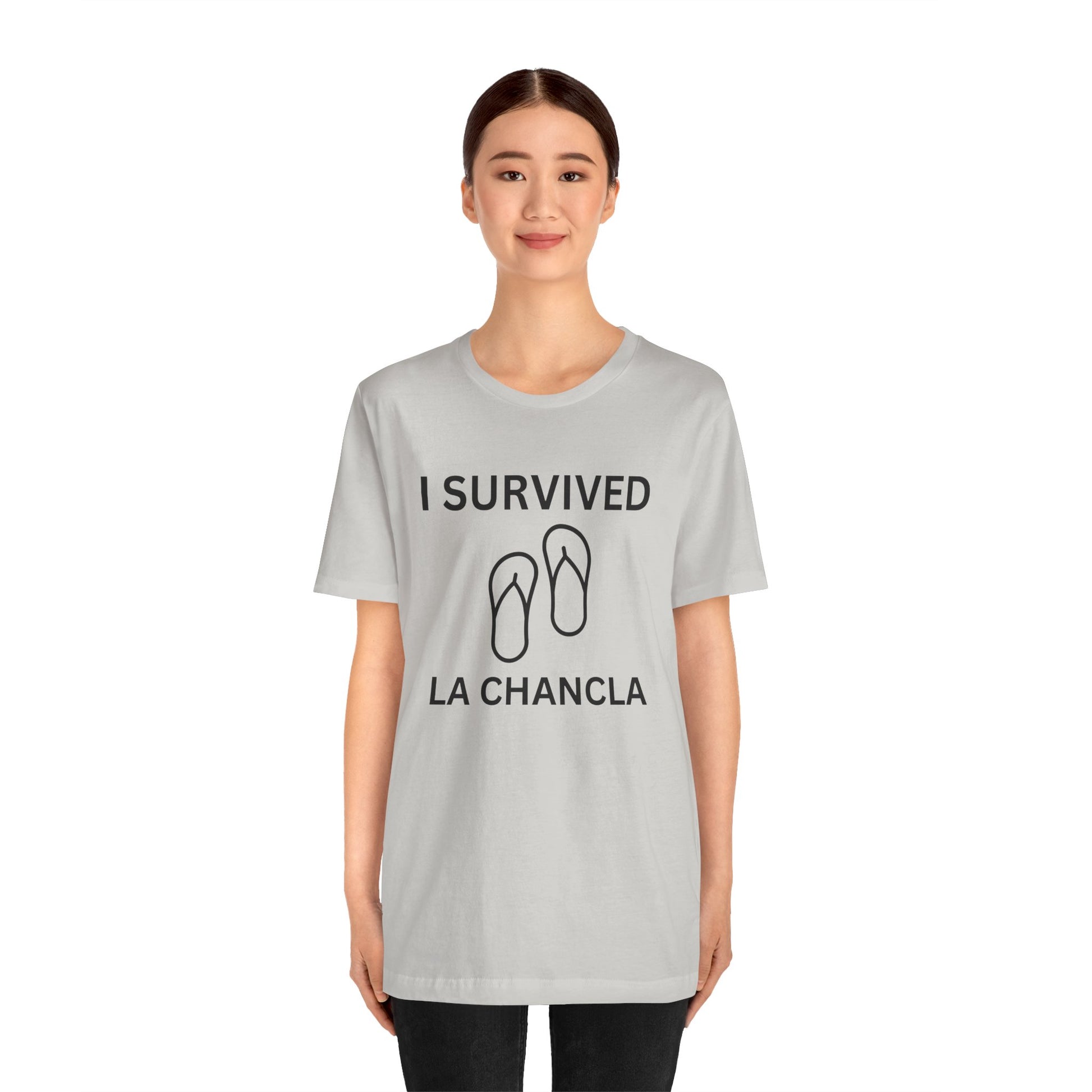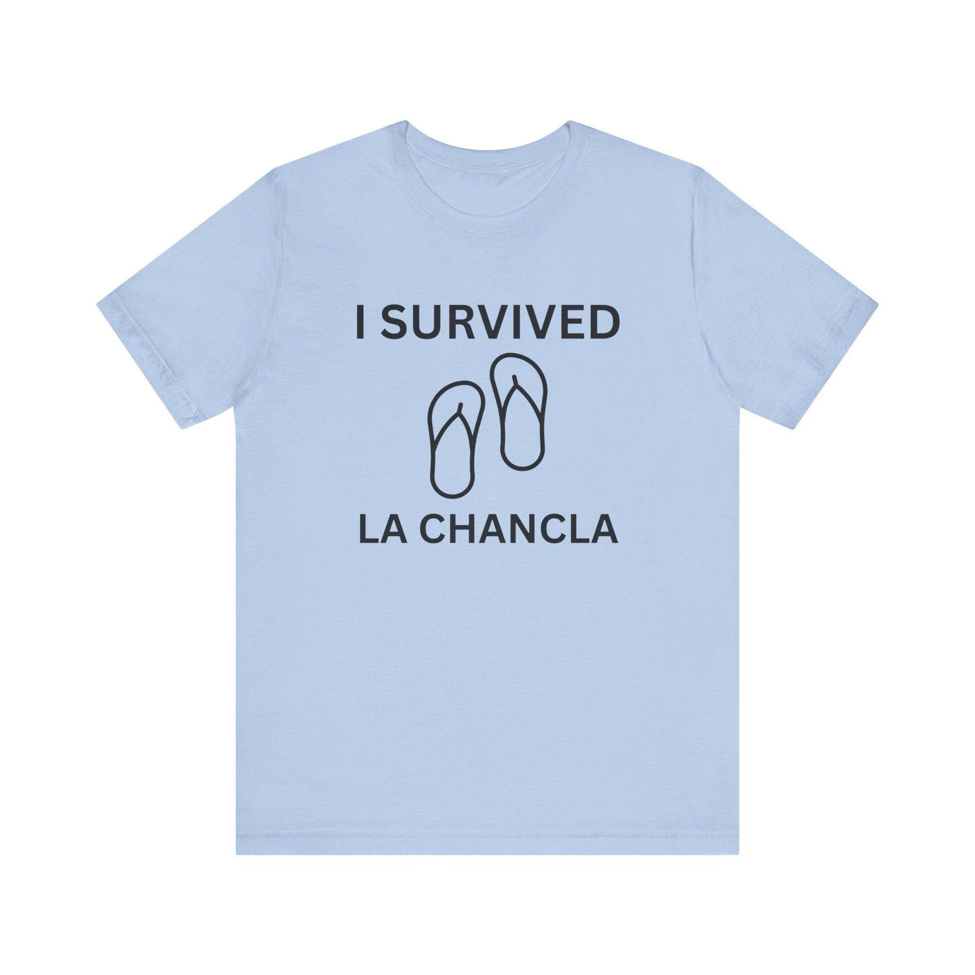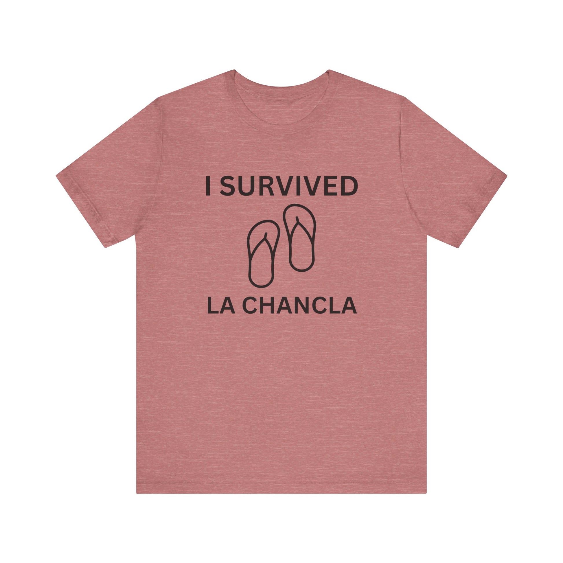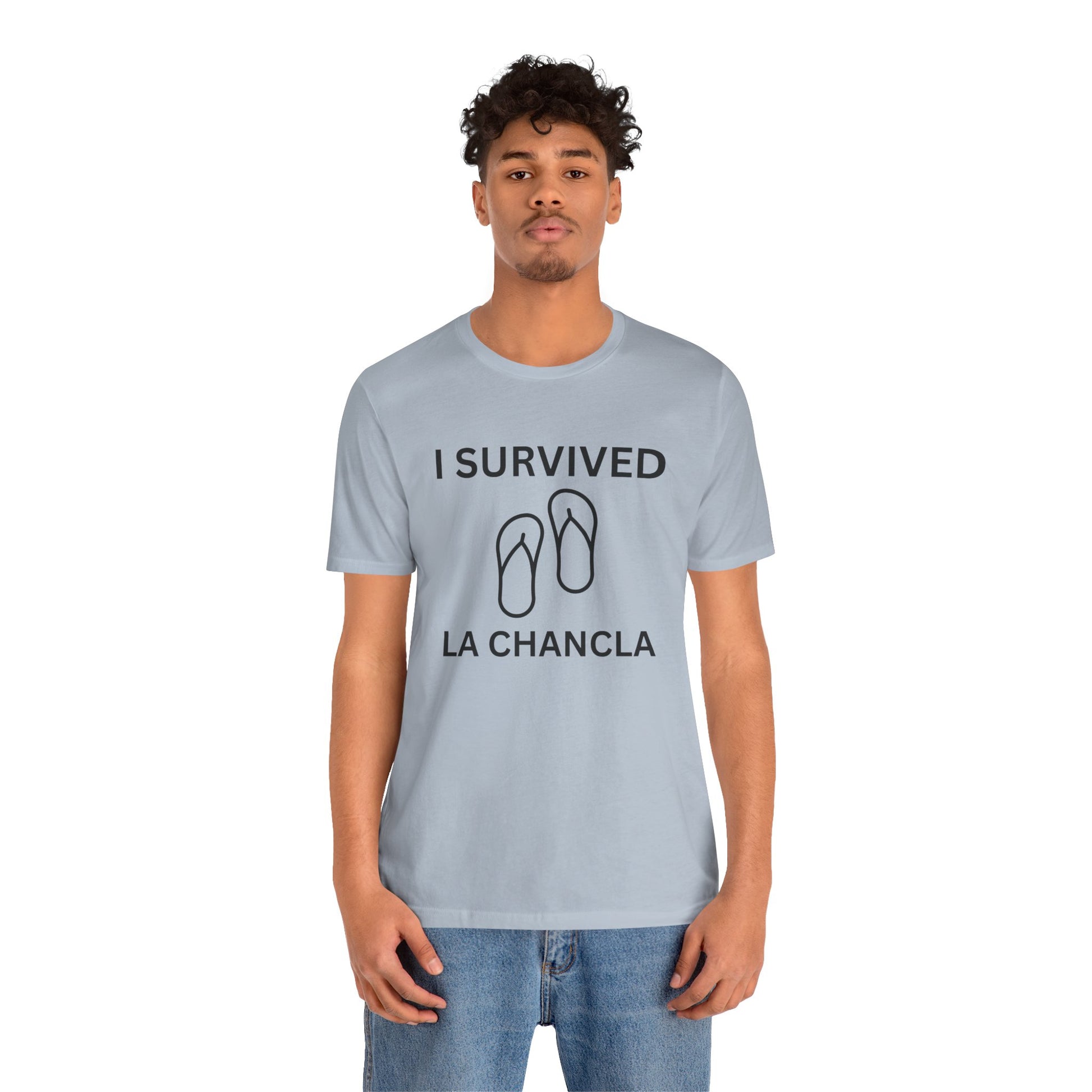 Available in a range of sizes, this unisex shirt is perfect for both men and women who appreciate the cultural significance and humor behind surviving "la chancla." It pairs effortlessly with jeans, shorts, or skirts, making it a versatile addition to your wardrobe.