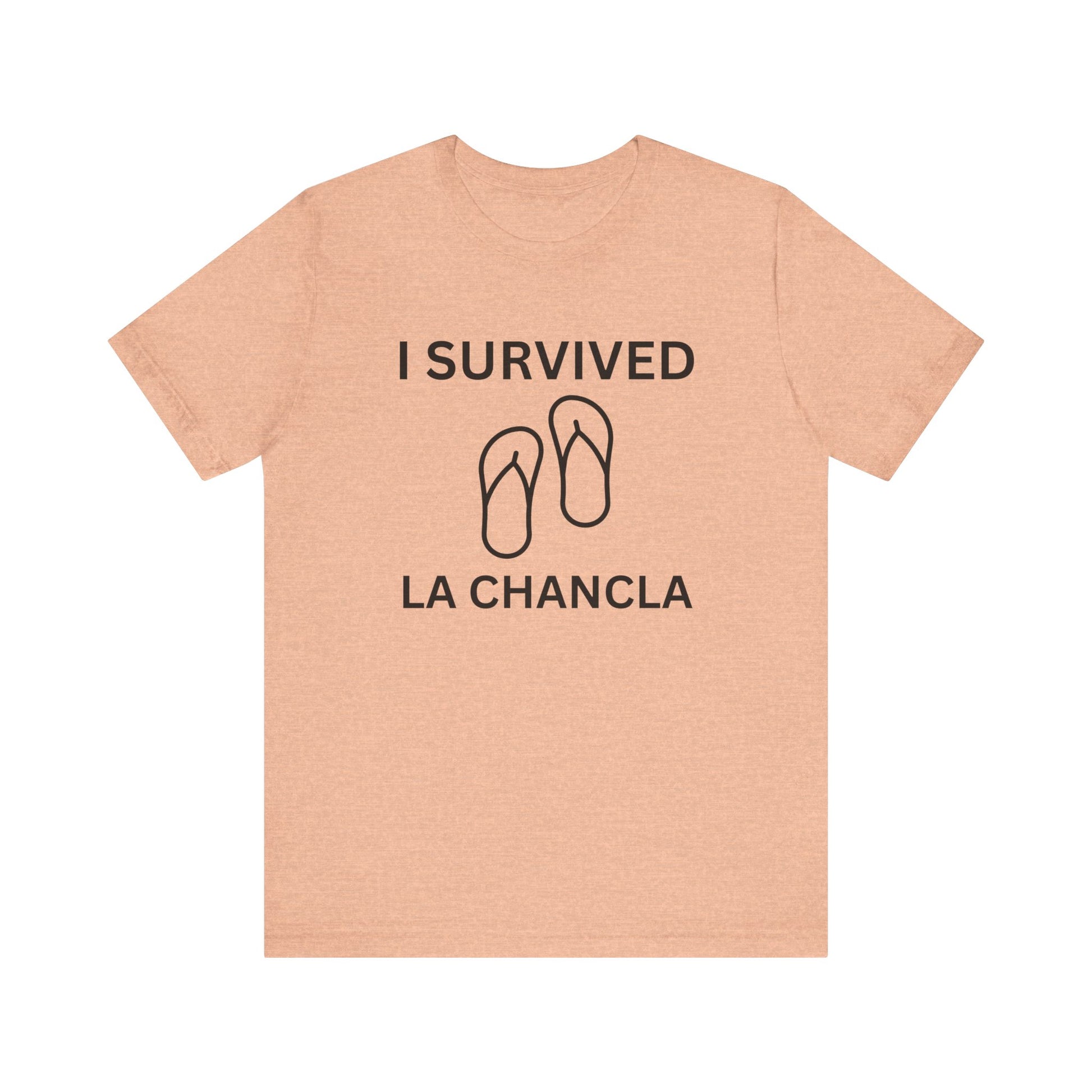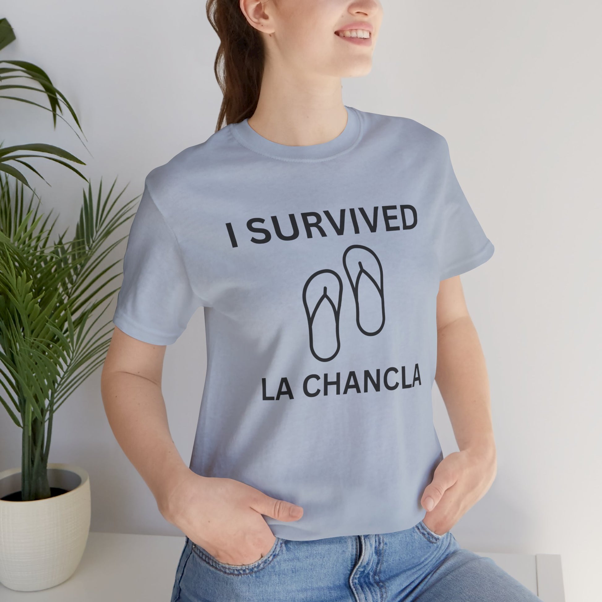 Created with care using premium quality fabric, this shirt offers both comfort and style. The design features a playful and eye-catching typography that captures attention. The phrase "I Survived La Chancla" takes center stage, symbolizing the power to endure and persevere through the traditional disciplinary tool used by many Latinx families.
