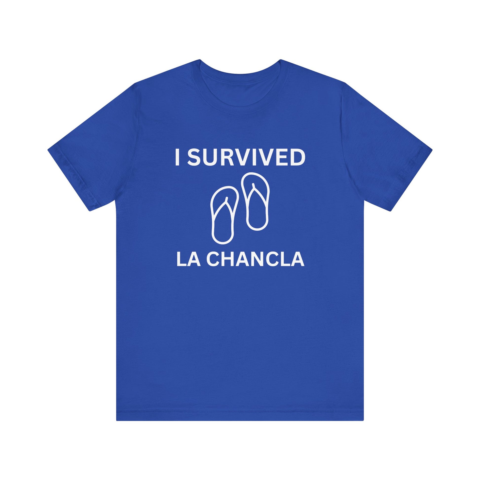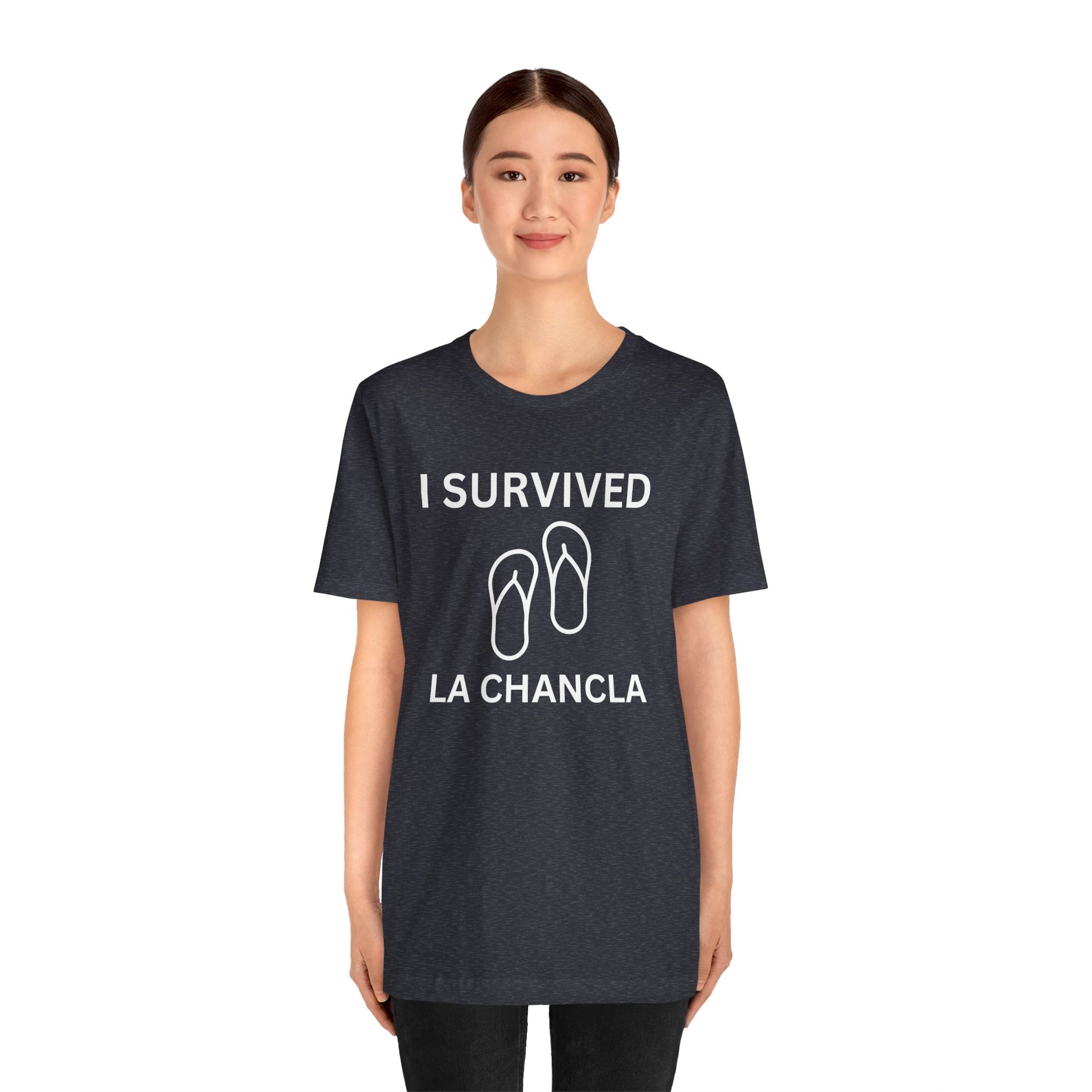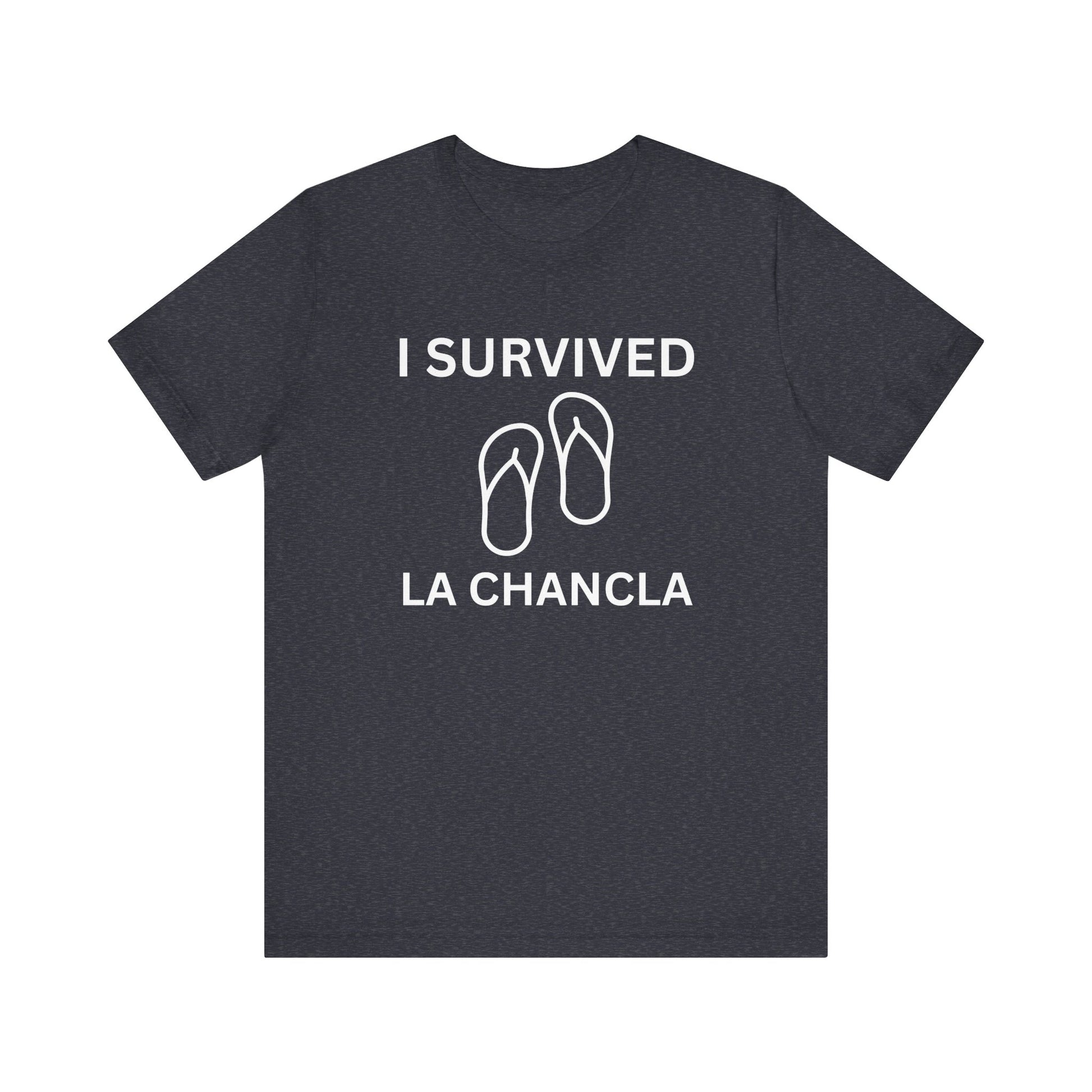 Created with care using premium quality fabric, this shirt offers both comfort and style. The design features a playful and eye-catching typography that captures attention. The phrase "I Survived La Chancla" takes center stage, symbolizing the power to endure and persevere through the traditional disciplinary tool used by many Latinx families.