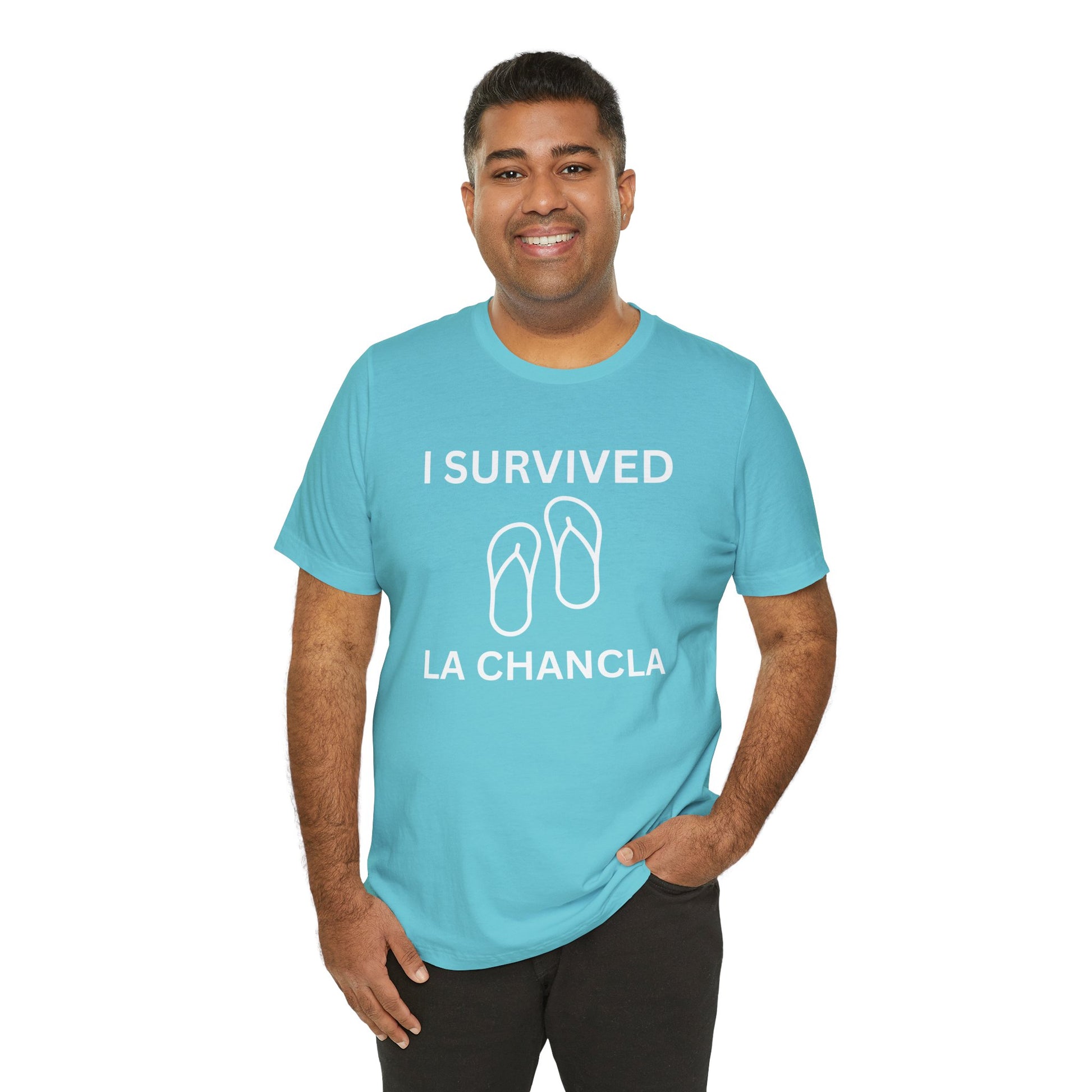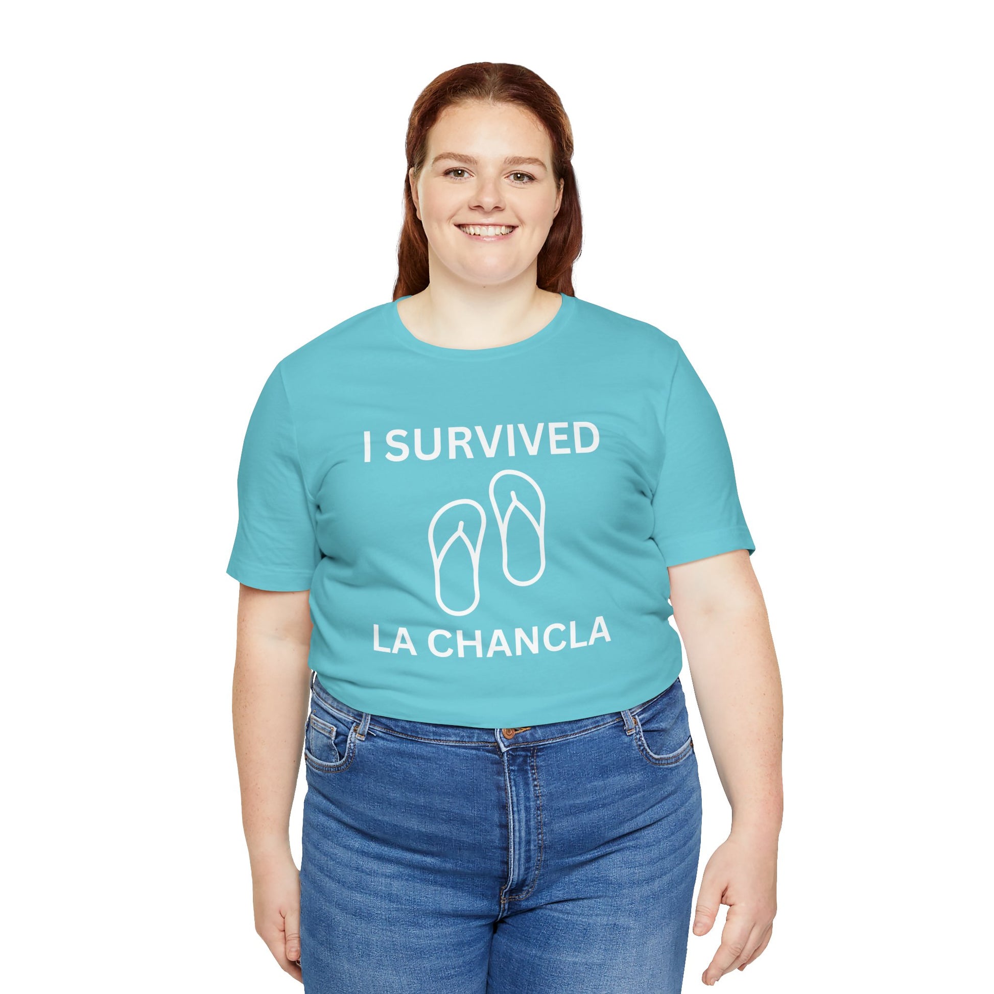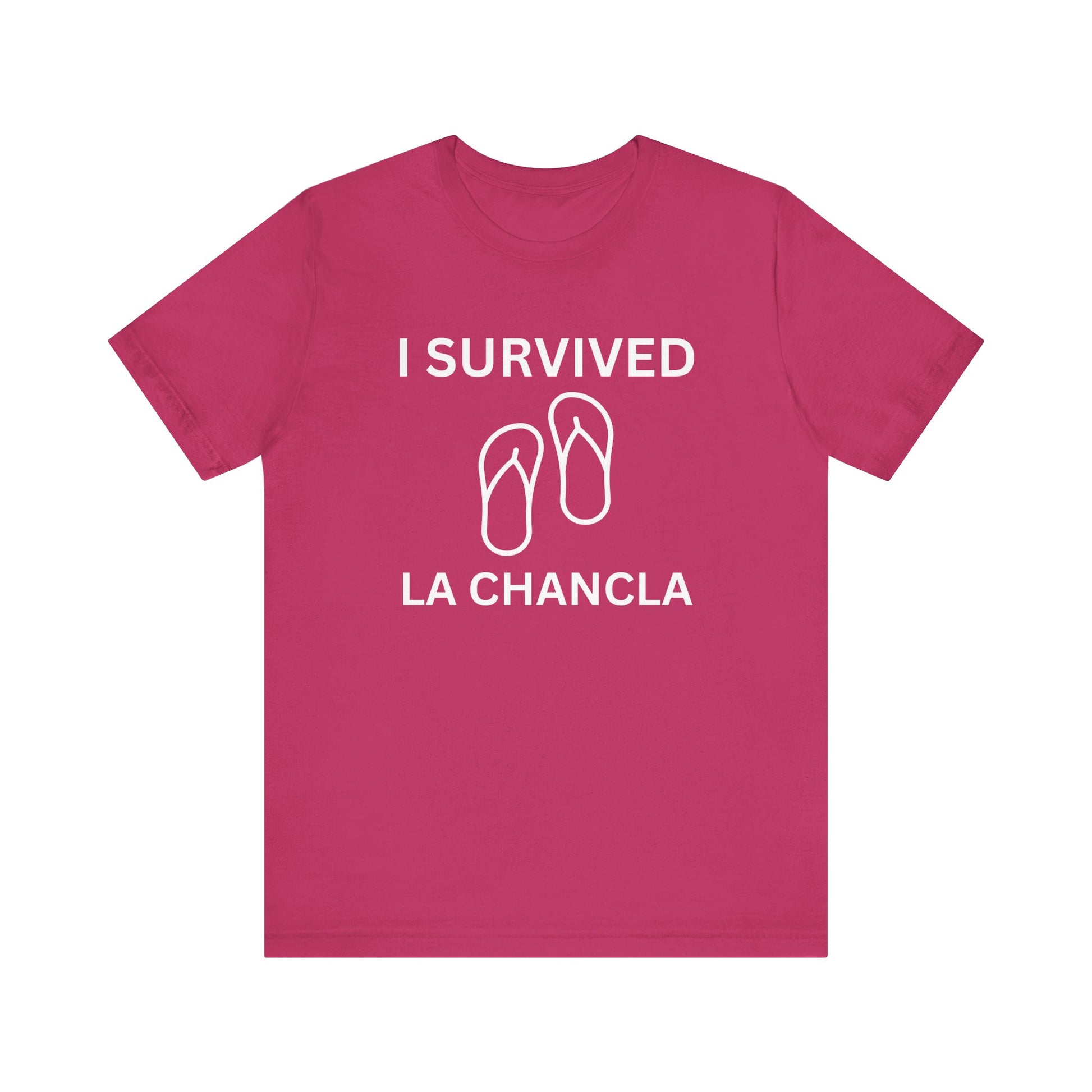 Created with care using premium quality fabric, this shirt offers both comfort and style. The design features a playful and eye-catching typography that captures attention. The phrase "I Survived La Chancla" takes center stage, symbolizing the power to endure and persevere through the traditional disciplinary tool used by many Latinx families.