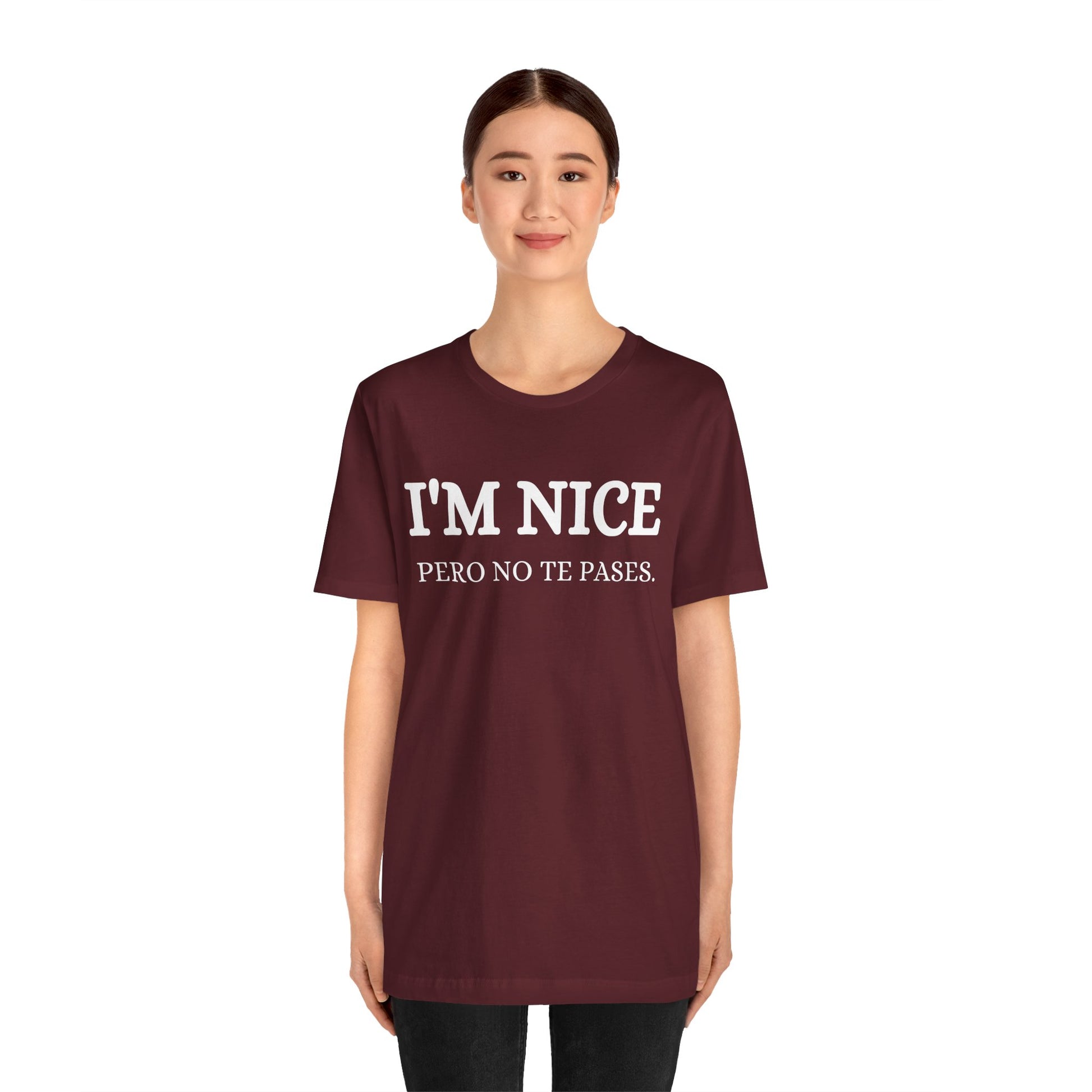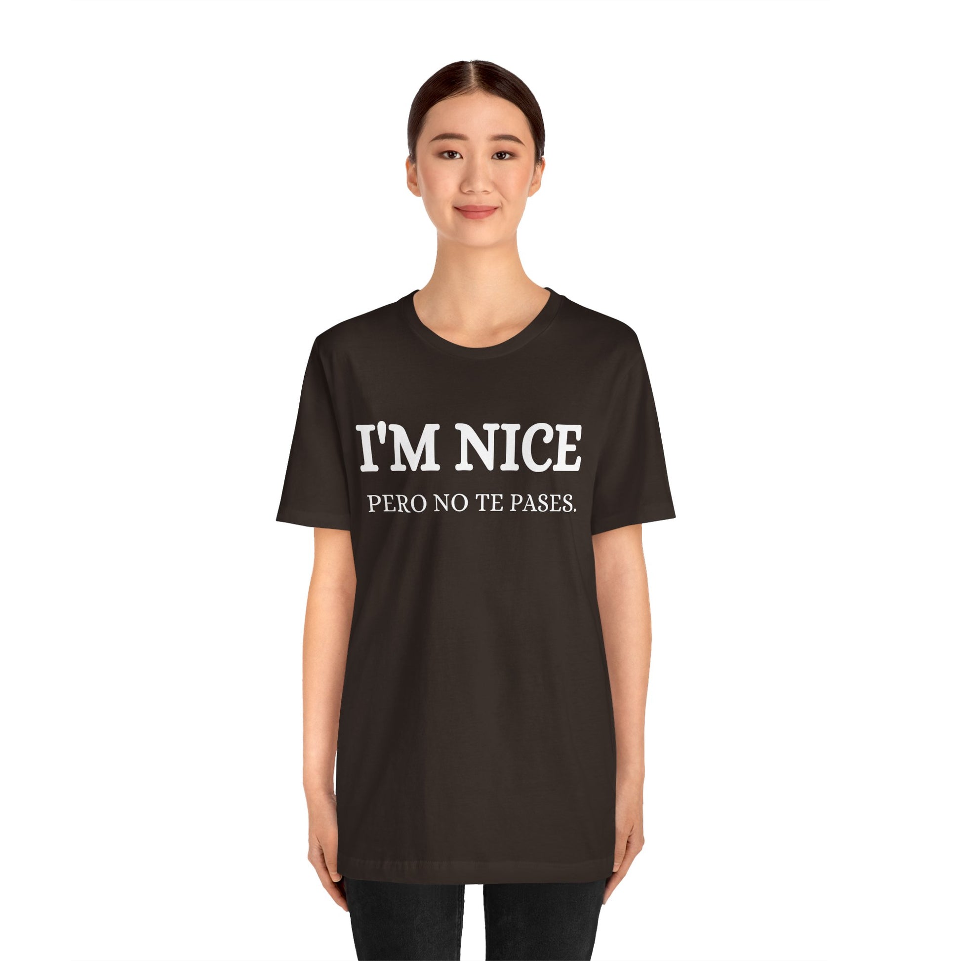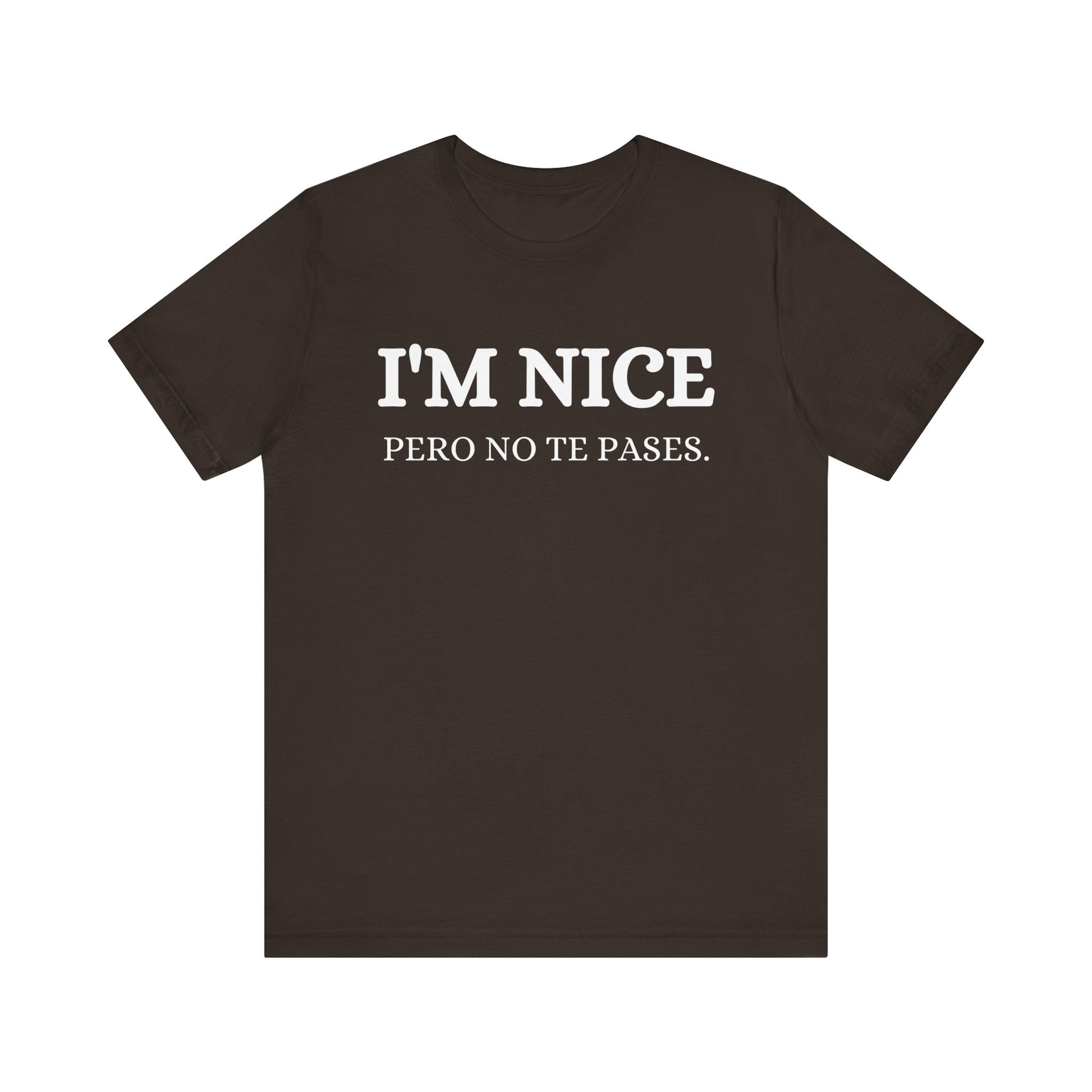 Made with high-quality materials, our I’m Nice Pero t-shirt is designed to be both comfortable and durable. It's available in a variety of sizes, so it's perfect for all body types and sizes. And with its classic design, it's sure to match any outfit or style.