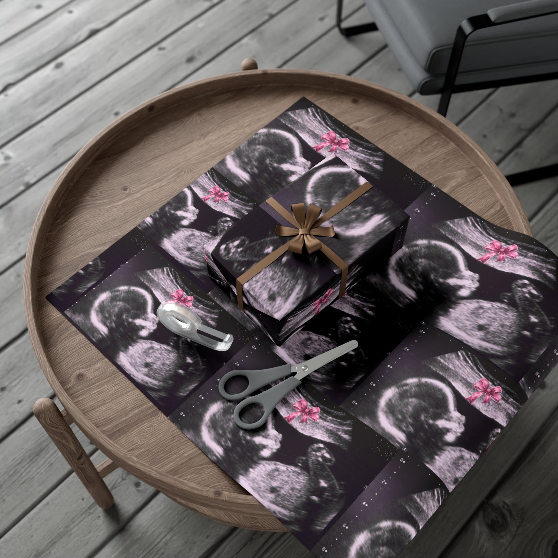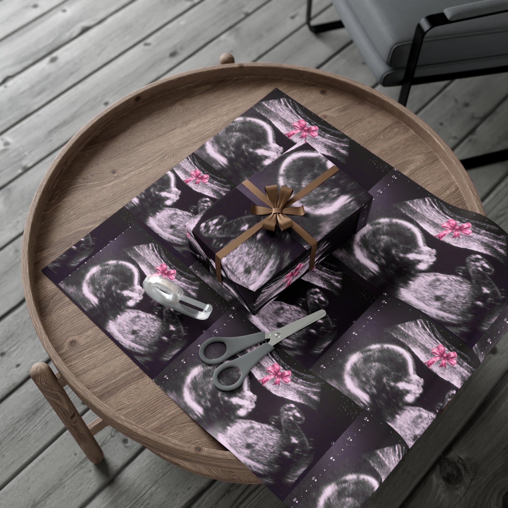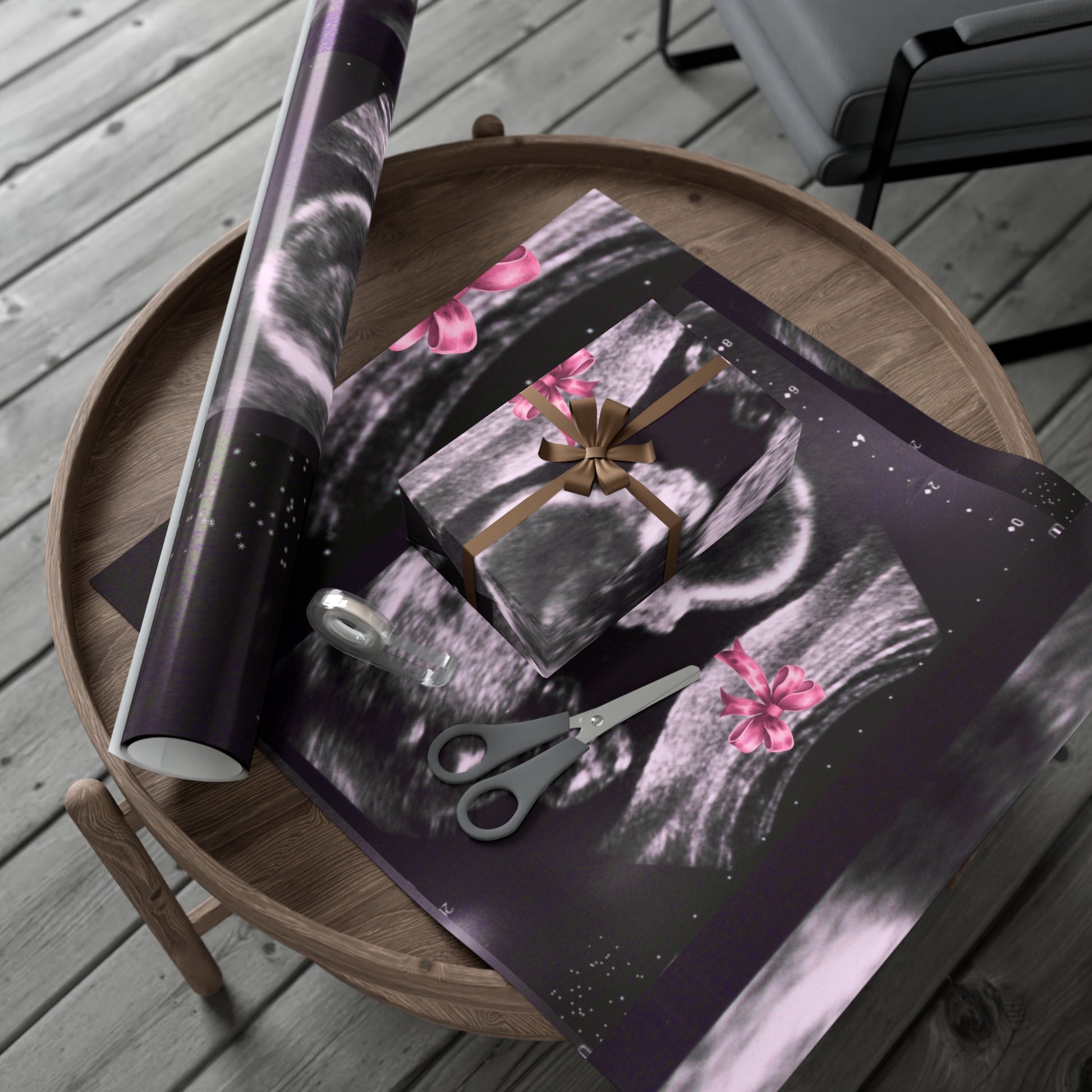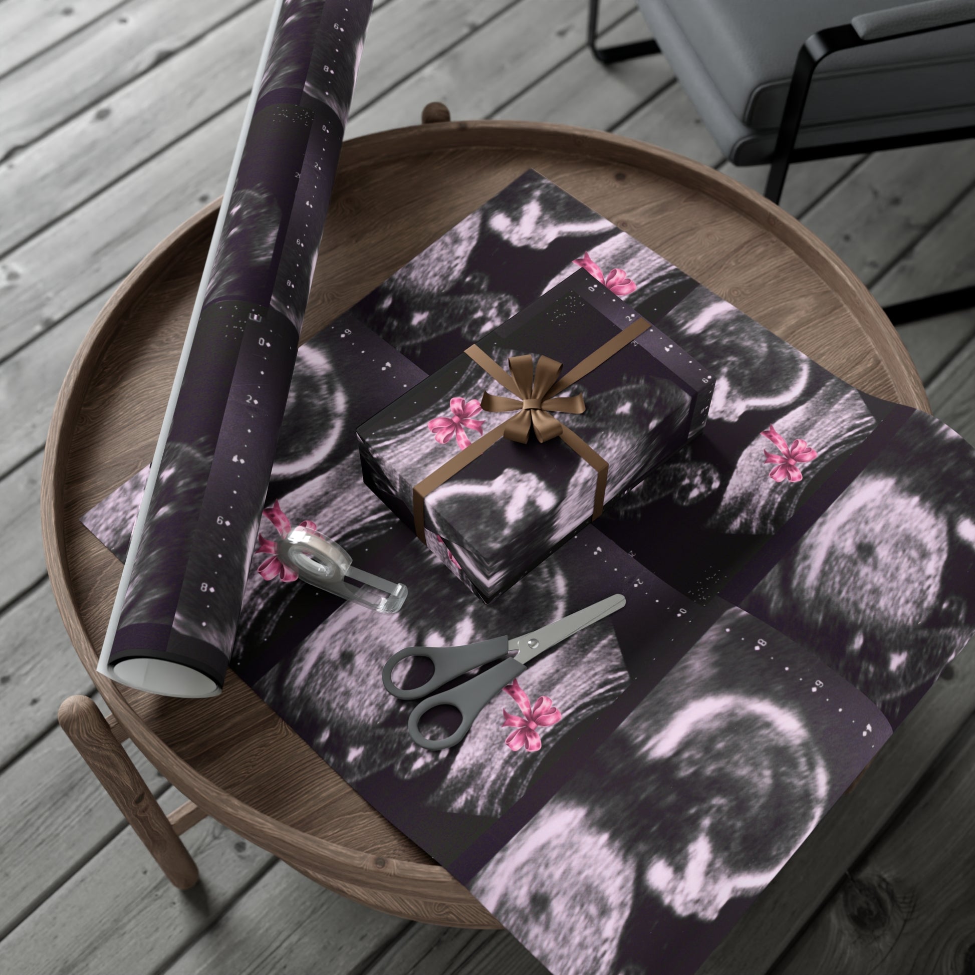 It's a Girl! Baby Announcement Gift Wrap, Unique Baby Shower Wrap, Personalized Sonogram Paper, Fun Pregnancy Reveal, New Parent Gift Wrap