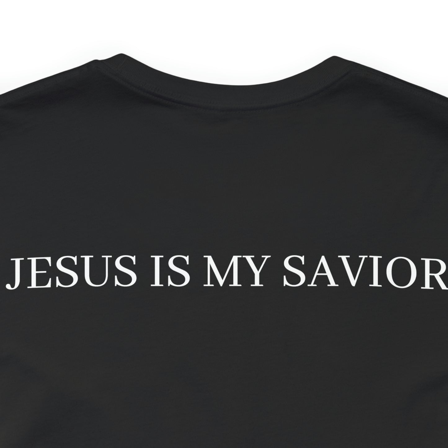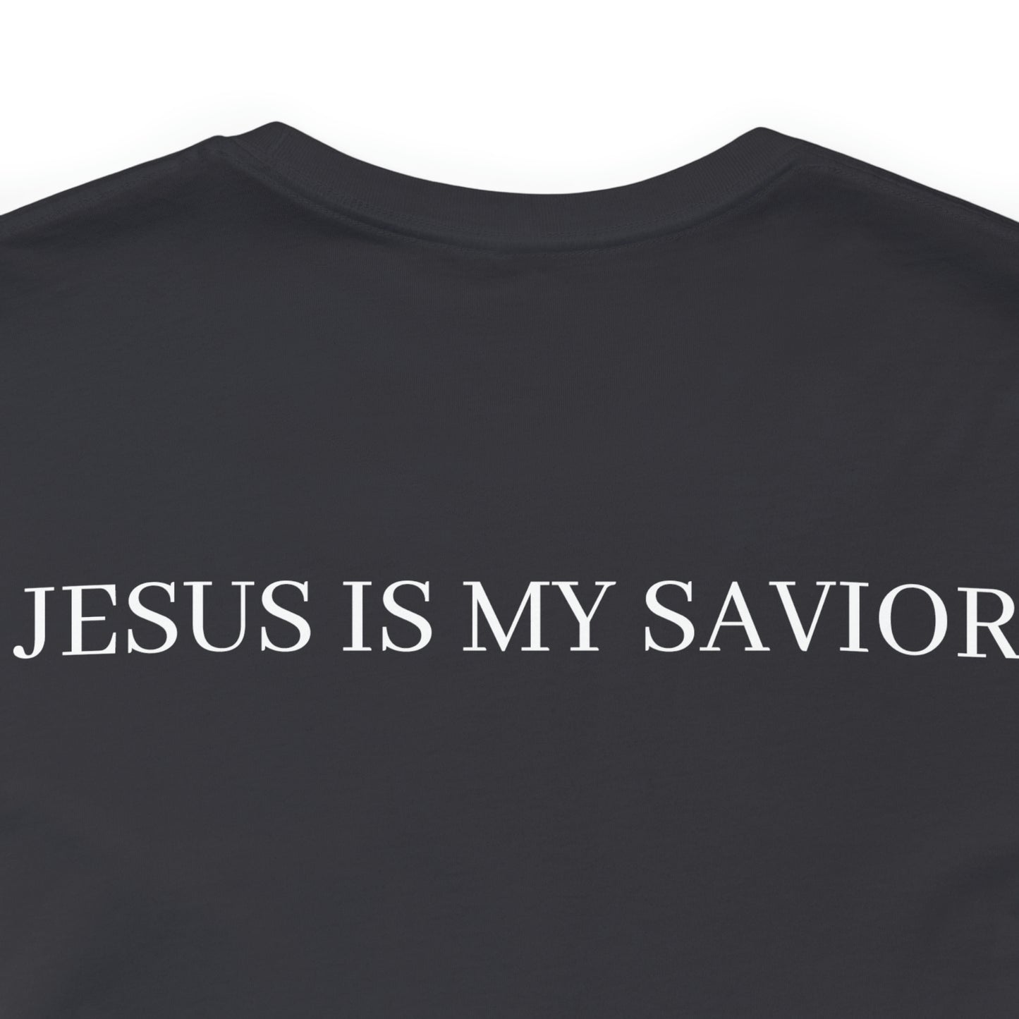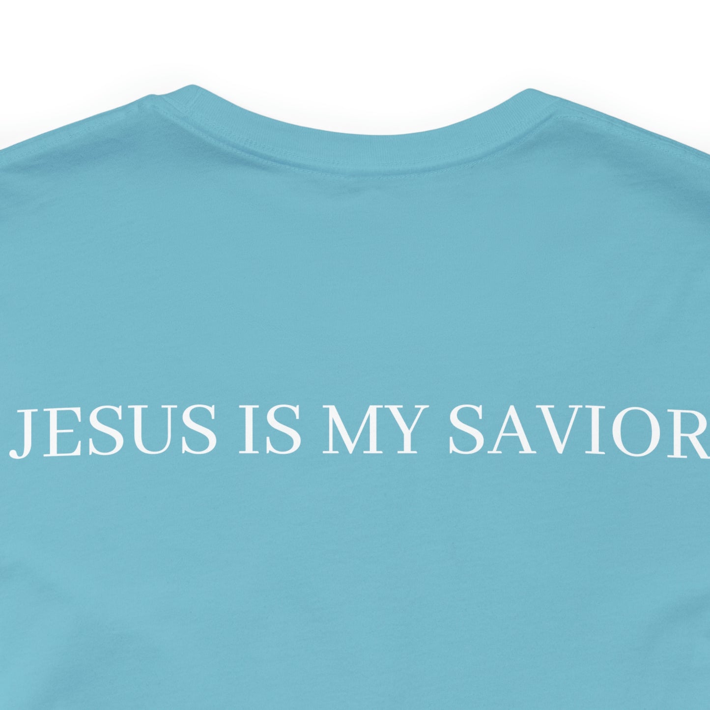 On the back of the shirt, the words "Jesus is My Savior" stand tall, embodying the core of your belief and proclaiming the personal relationship you share with the Son of God. It is a reminder of the extraordinary gift of salvation and the eternal hope found in Jesus Christ.