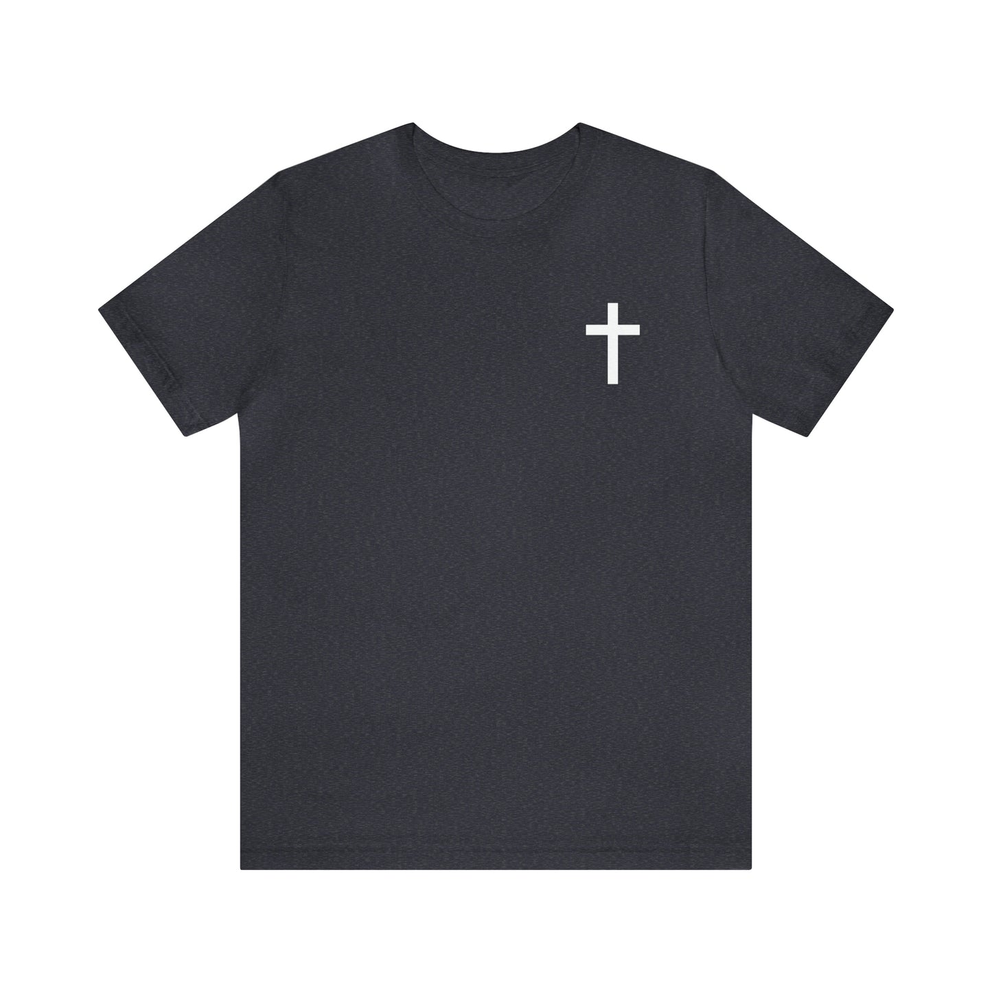 The front of the shirt showcases a beautifully crafted cross, a symbol that represents the ultimate sacrifice made by Jesus for the redemption of humanity. This cross serves as a visual reminder of the love, mercy, and grace that flow from His sacrifice, offering forgiveness and new beginnings to all who believe.