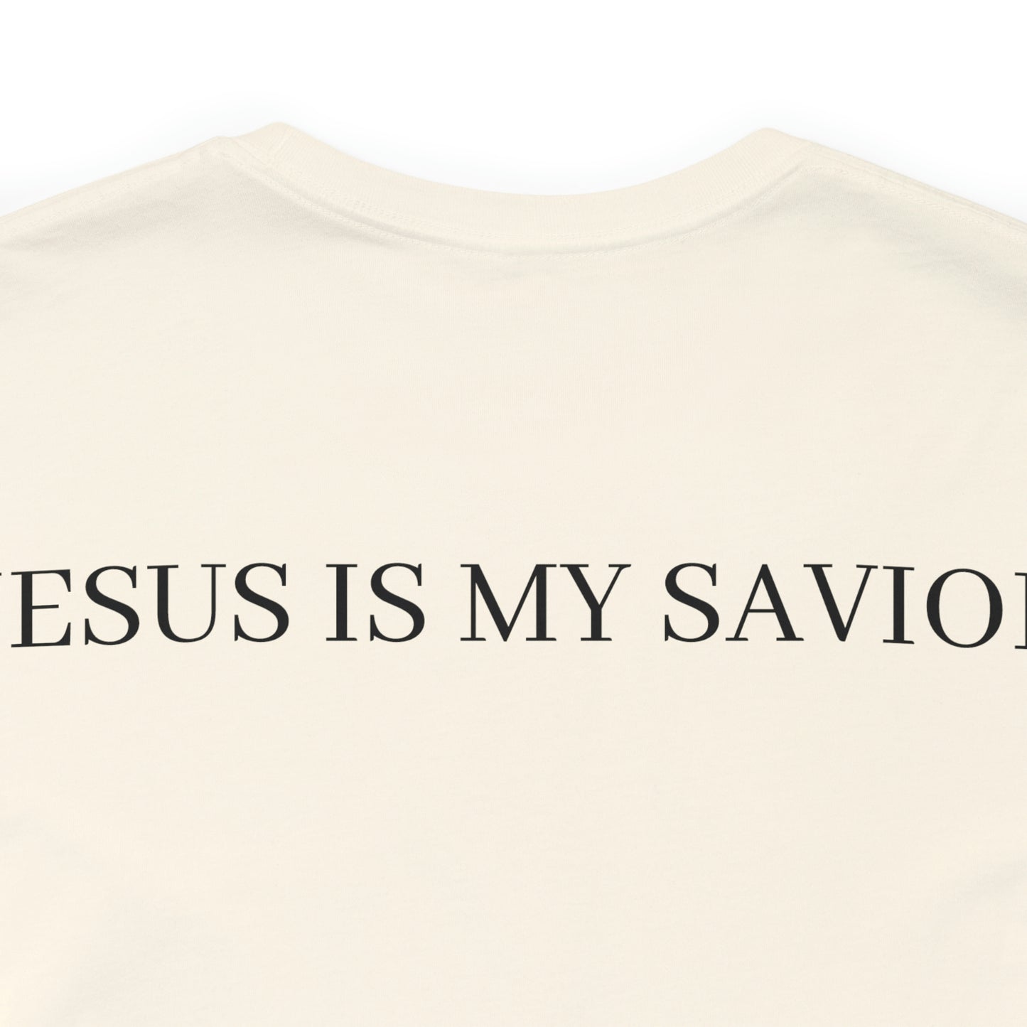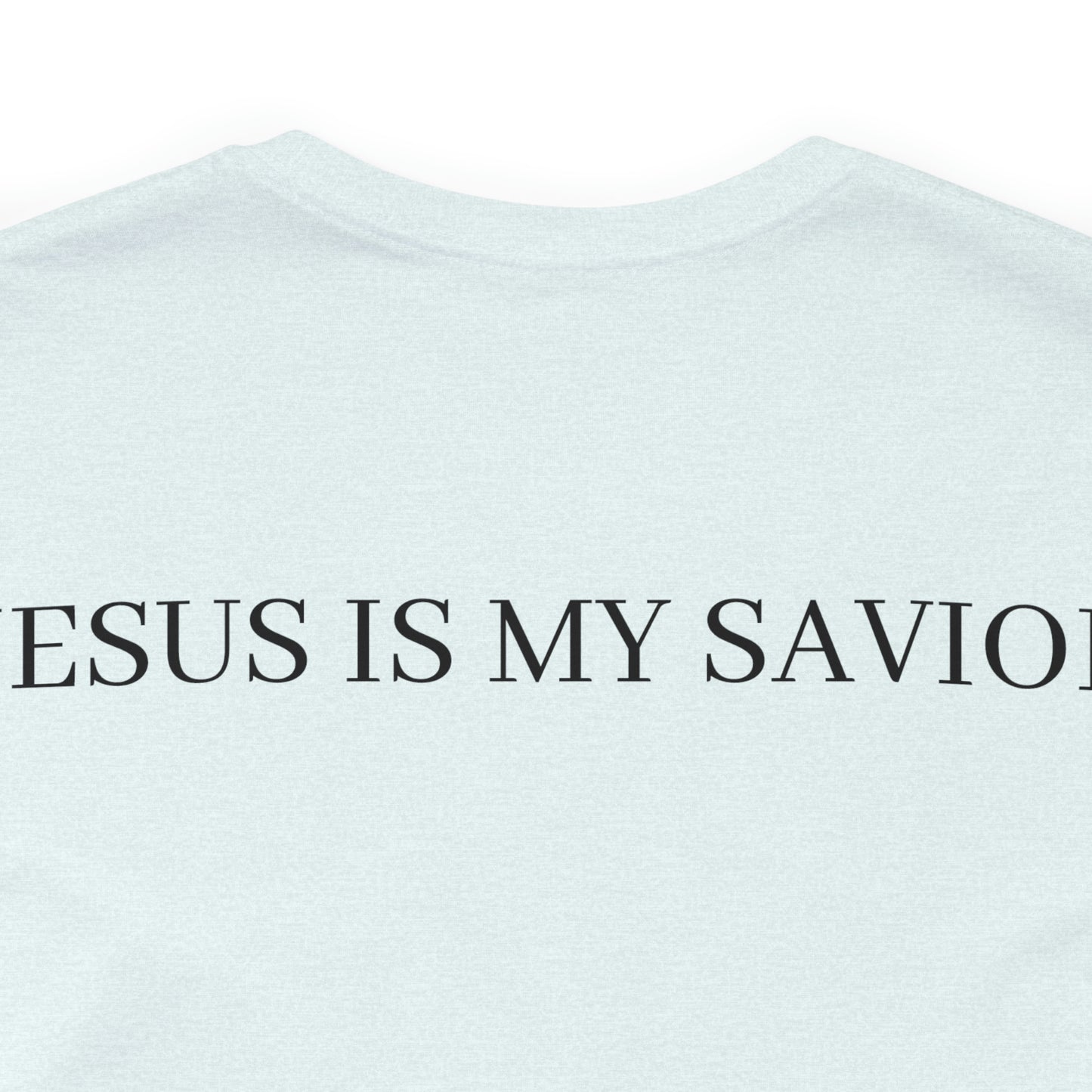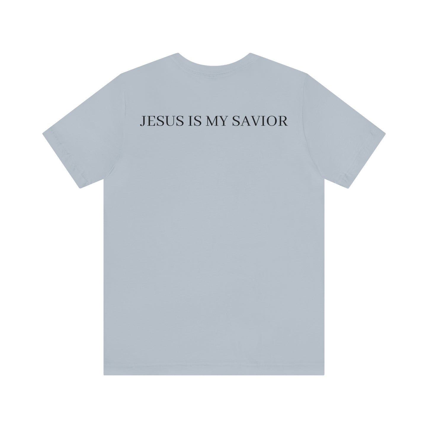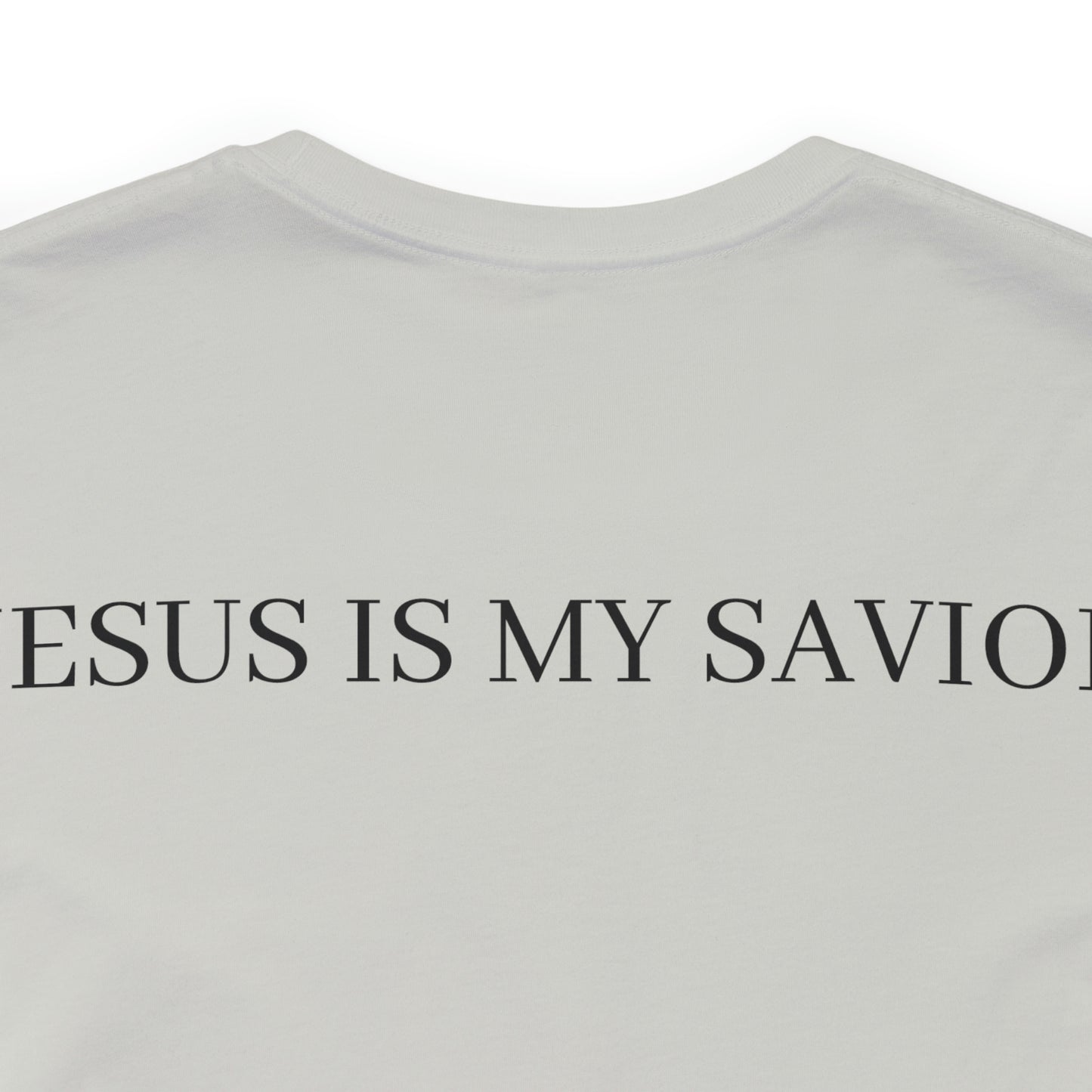 On the back of the shirt, the words "Jesus is My Savior" stand tall, embodying the core of your belief and proclaiming the personal relationship you share with the Son of God. It is a reminder of the extraordinary gift of salvation and the eternal hope found in Jesus Christ.