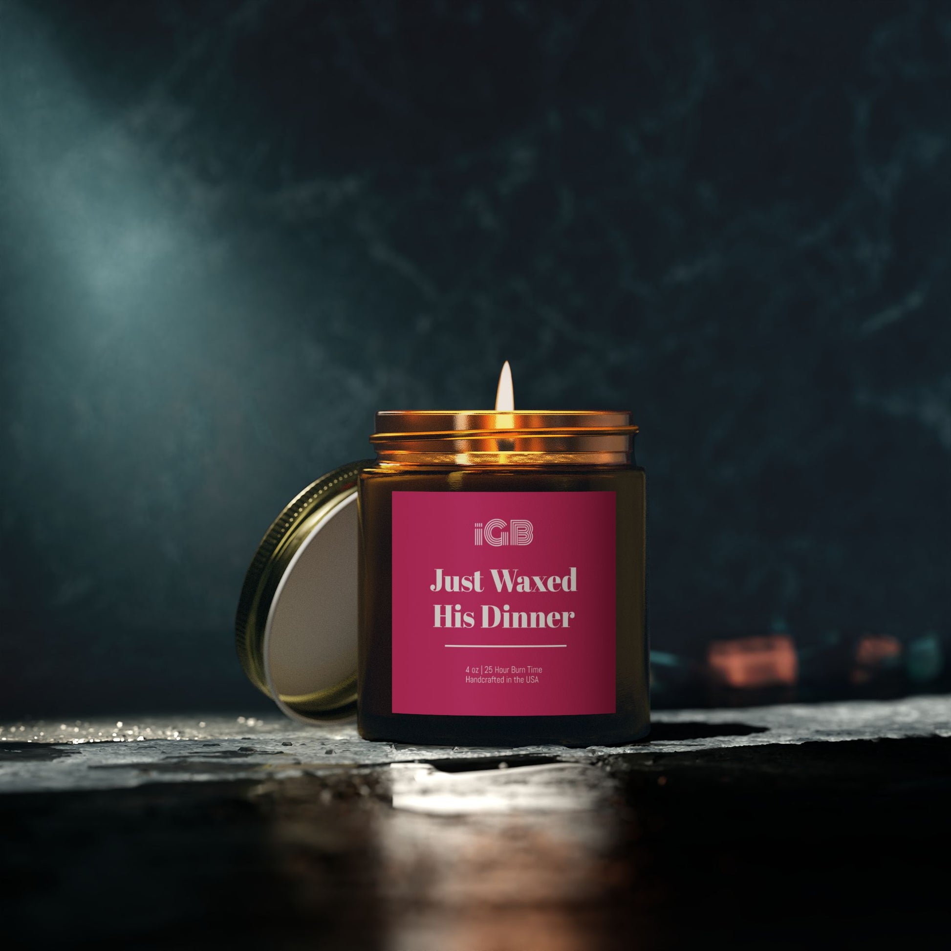 Just Waxed His Dinner Candle, Cozy Home Decor, Gift for Her, Aromatherapy, Seasonal fall Candle