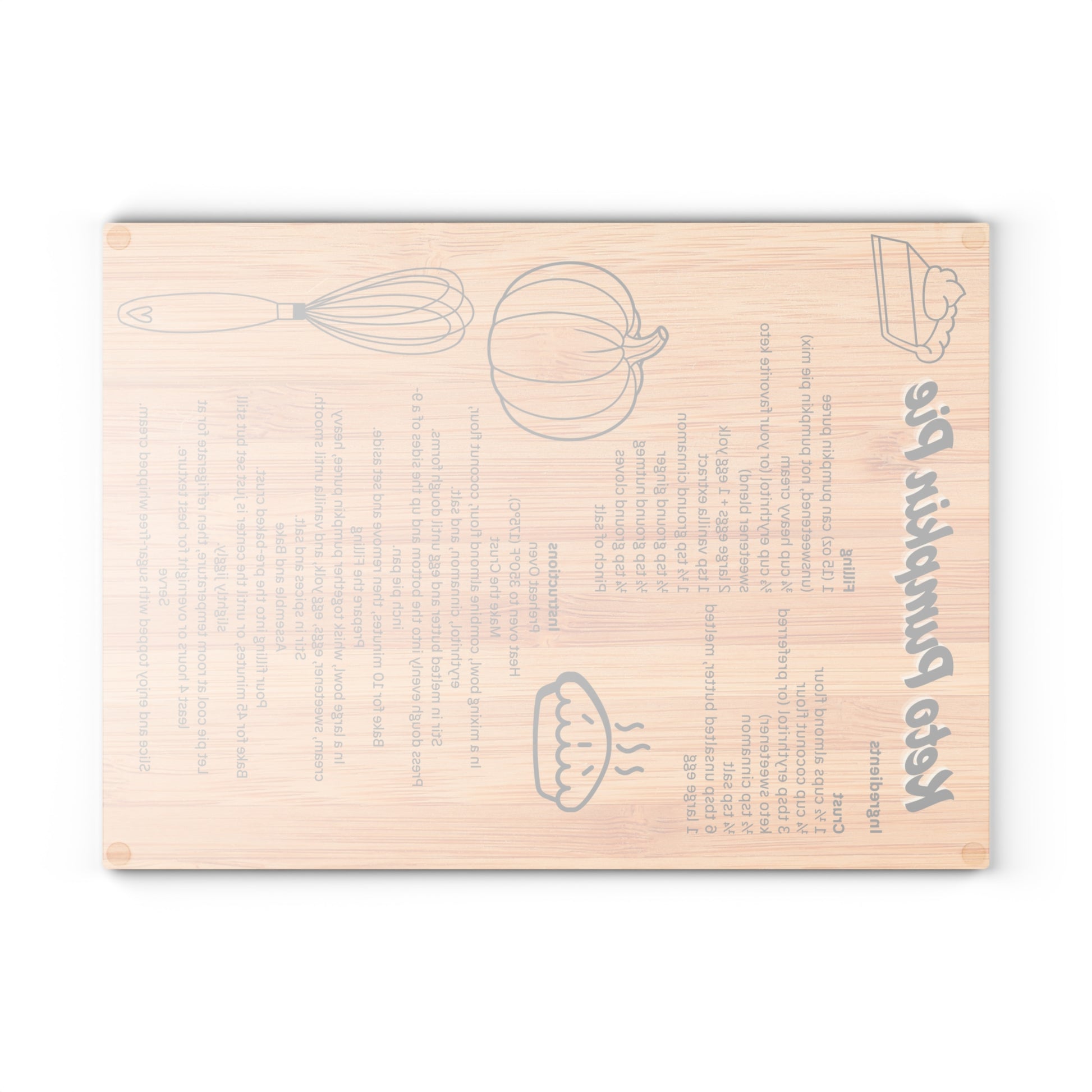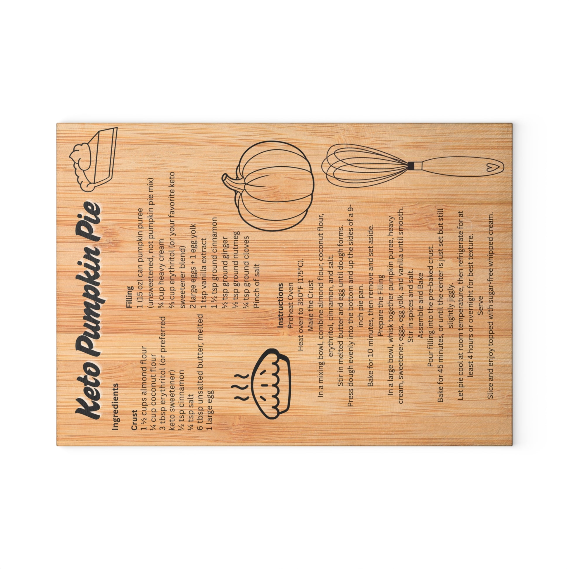 Keto Pumpkin Pie Recipe Glass Cutting Board - Unique Kitchen Decor, Thanksgiving Gifts, Cooking Essentials, Recipe Display, Home Chefs