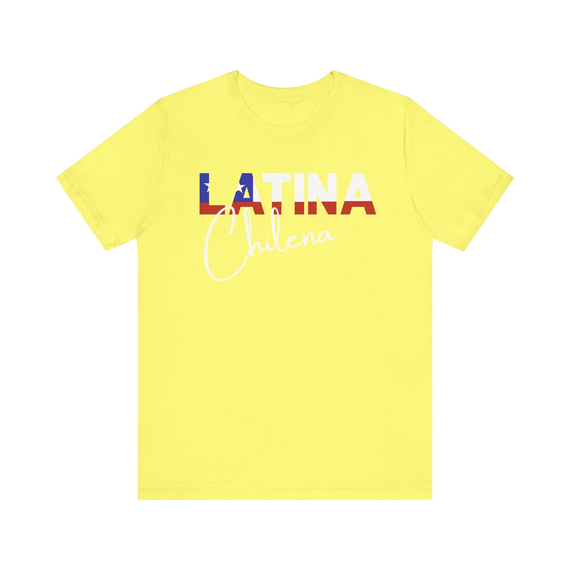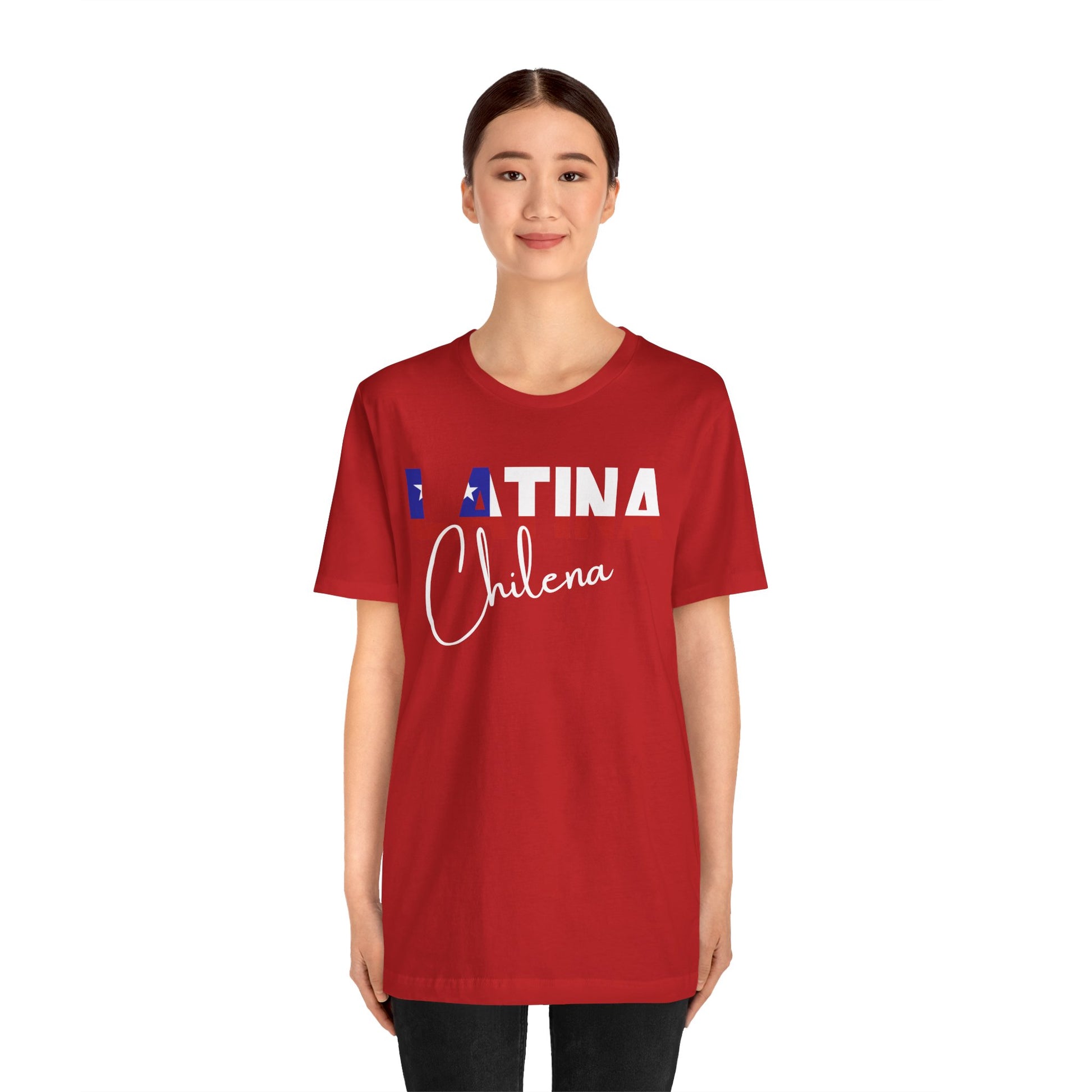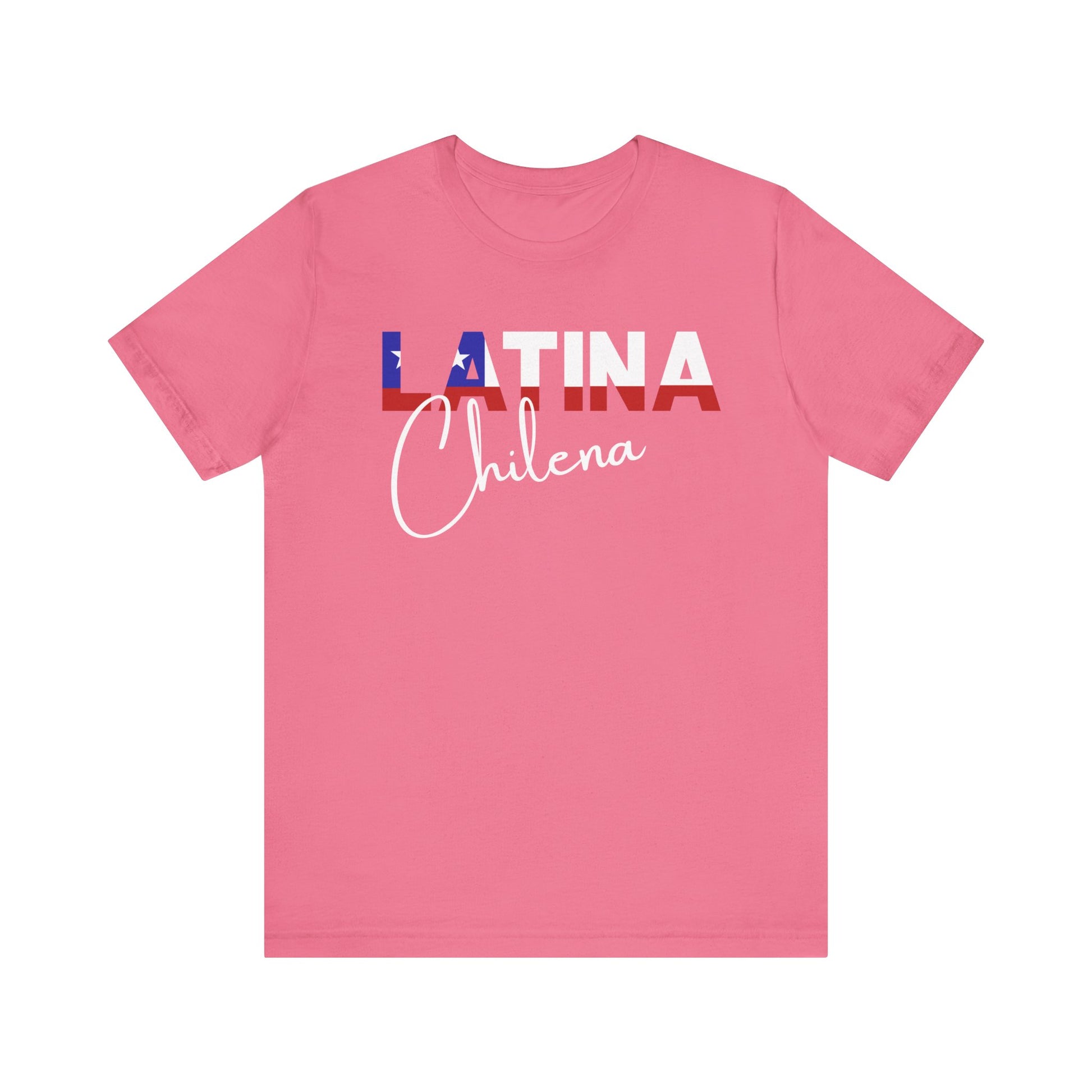 Introducing the "Latina Chilena" top - a stylish and meaningful addition to your wardrobe. This top comes in a variety of colors, so you can choose the one that best suits your personal style. The word "Latina" is emblazoned across the front of the shirt, with the colors of the Chile flag proudly displayed on each letter, symbolizing the unique cultural heritage of Chile.