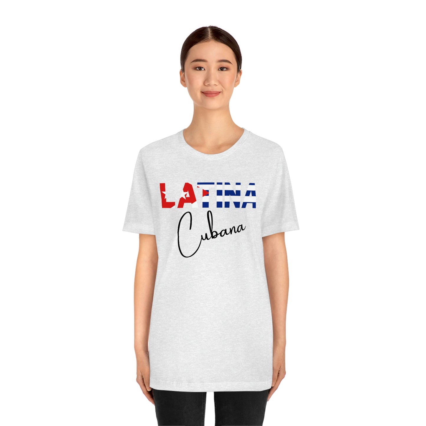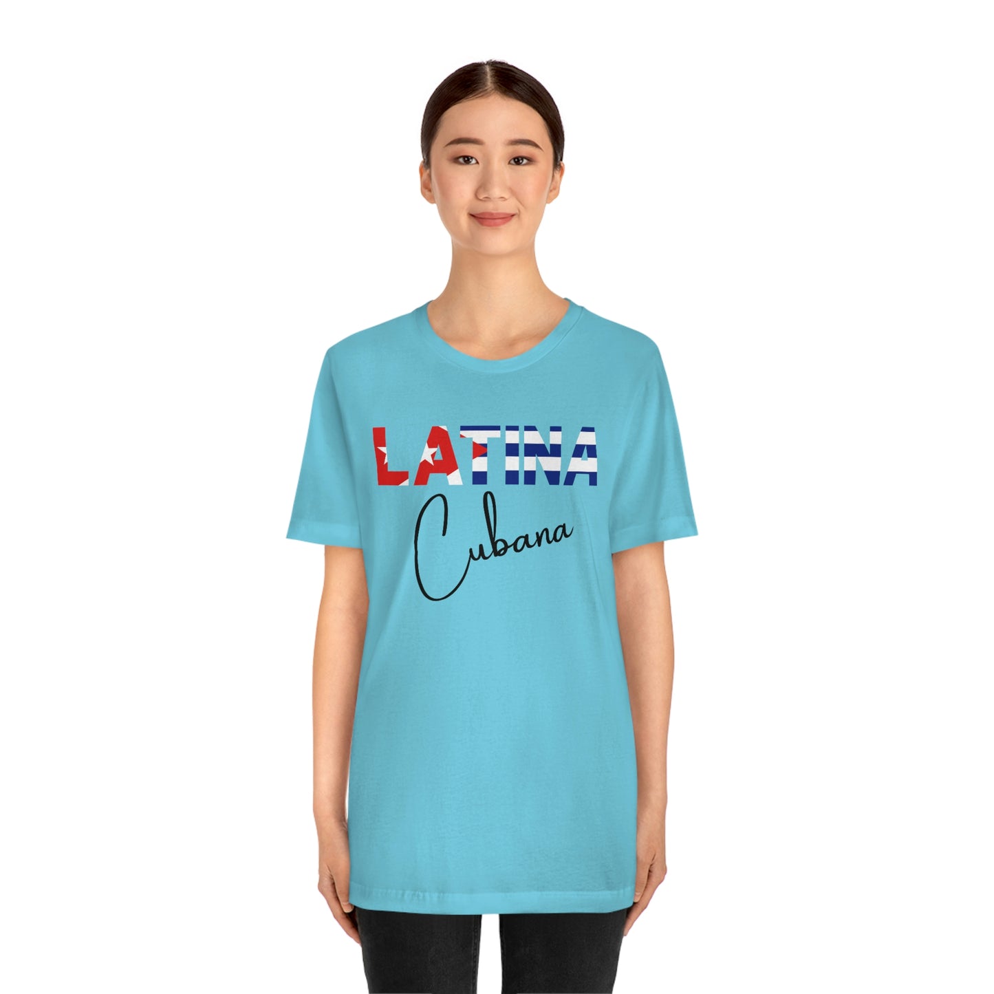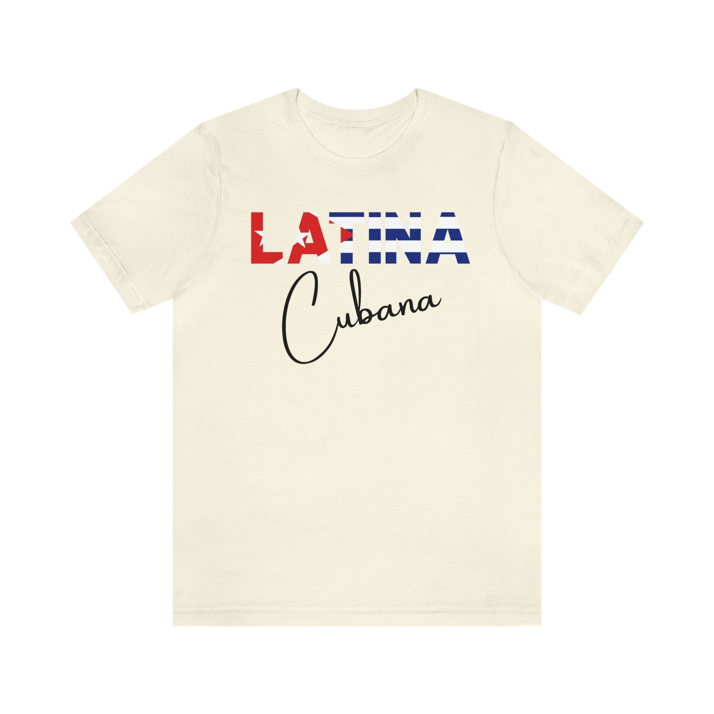 Introducing the "Latina Cubana" top - a stylish and meaningful addition to your wardrobe. This top comes in a variety of colors, so you can choose the one that best suits your personal style. The word "Latina" is emblazoned across the front of the shirt, with the colors of the Cuban flag proudly displayed on each letter, symbolizing the unique cultural heritage of Cuba.