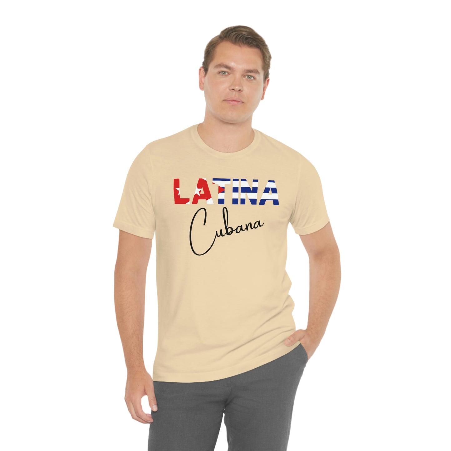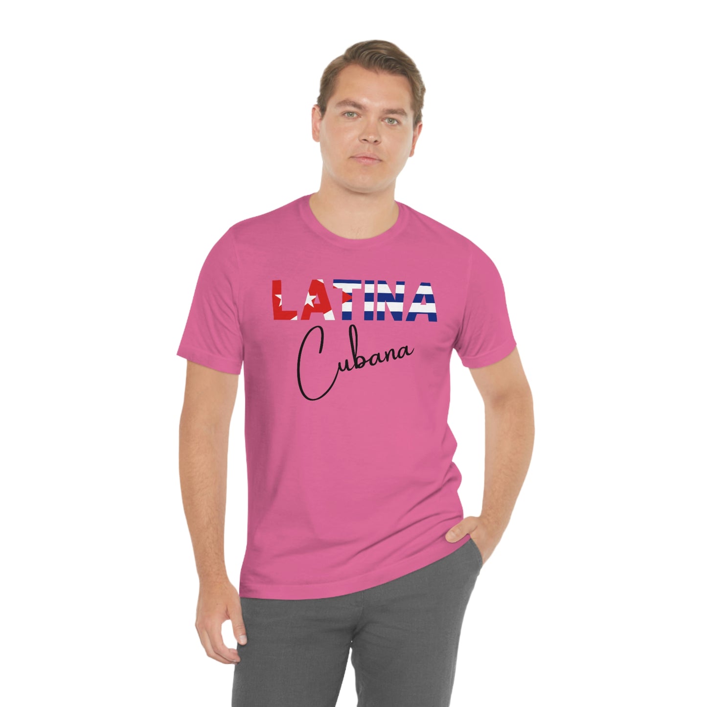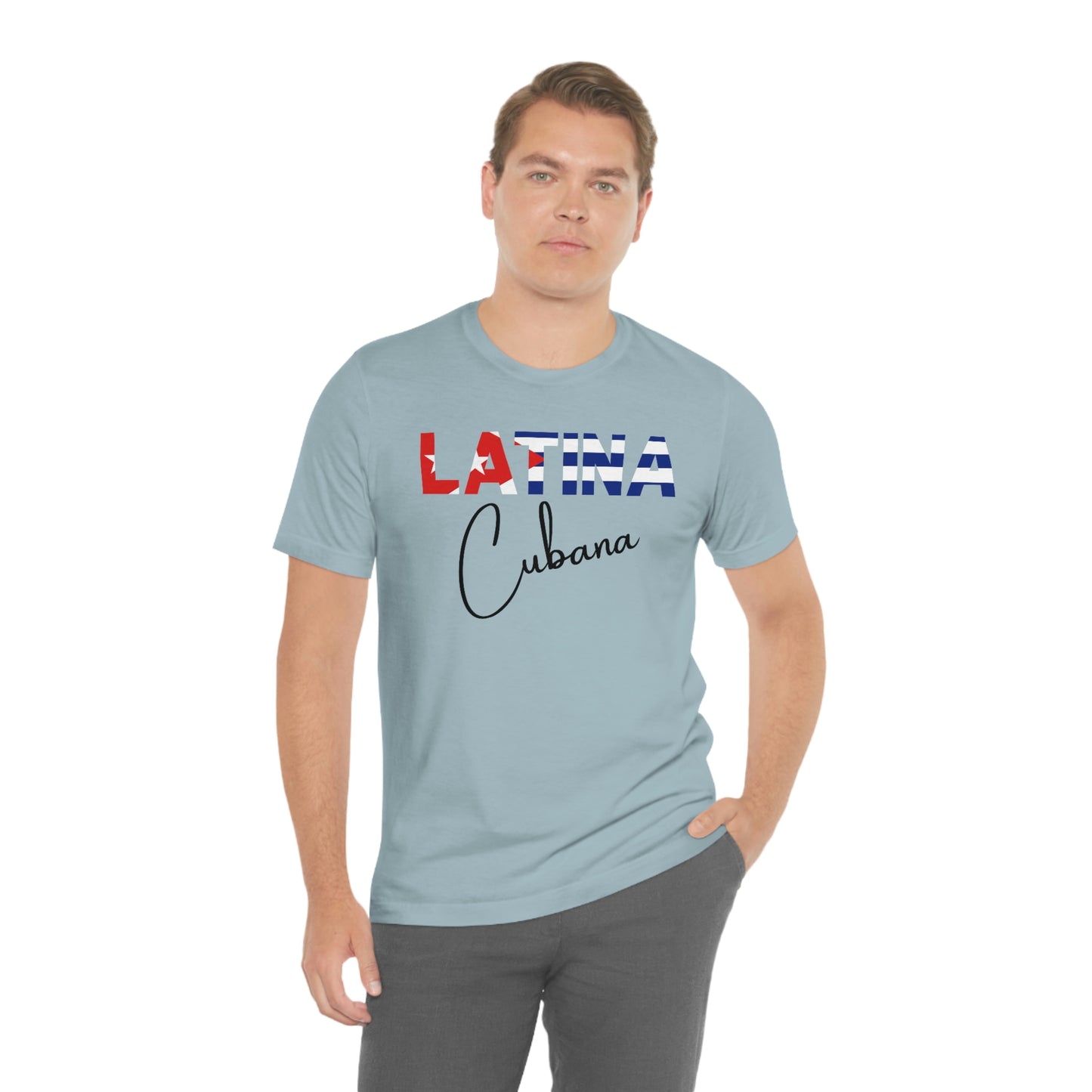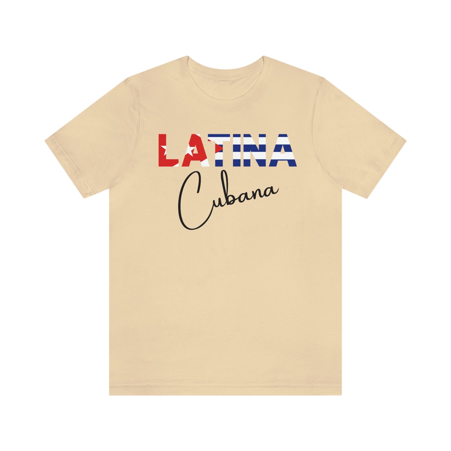 Introducing the "Latina Cubana" top - a stylish and meaningful addition to your wardrobe. This top comes in a variety of colors, so you can choose the one that best suits your personal style. The word "Latina" is emblazoned across the front of the shirt, with the colors of the Cuban flag proudly displayed on each letter, symbolizing the unique cultural heritage of Cuba.
