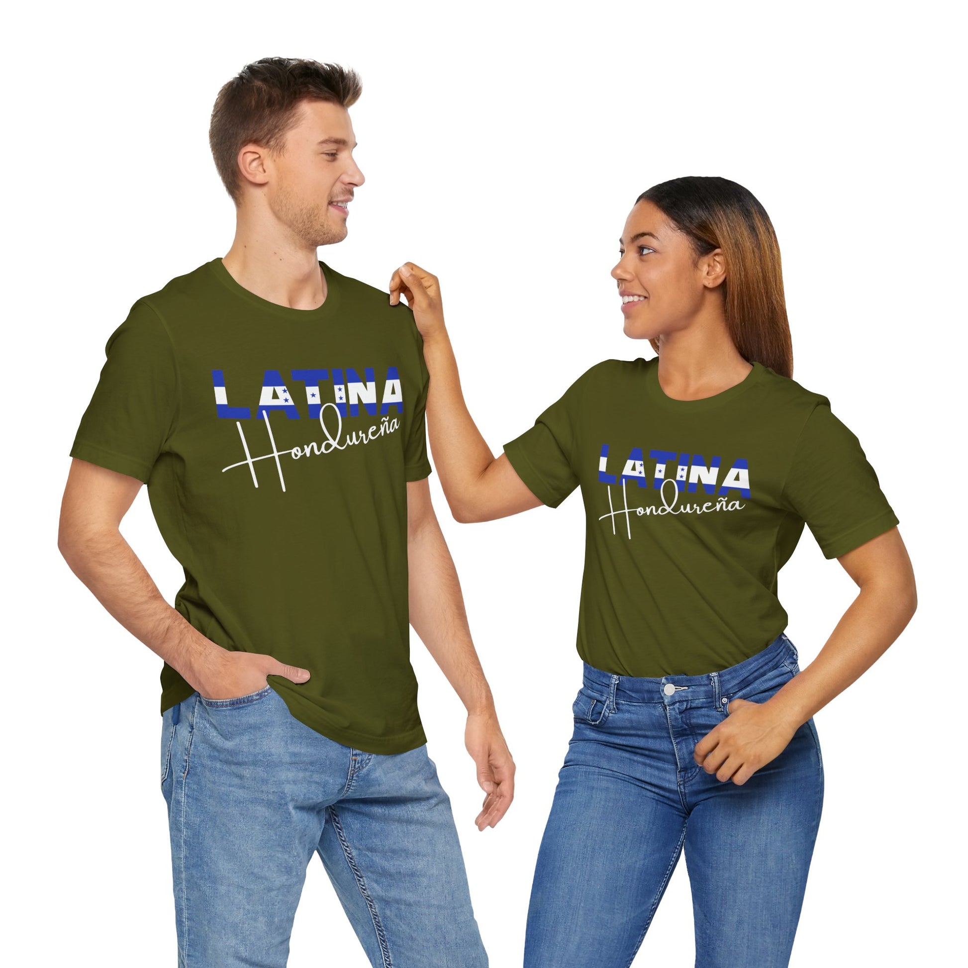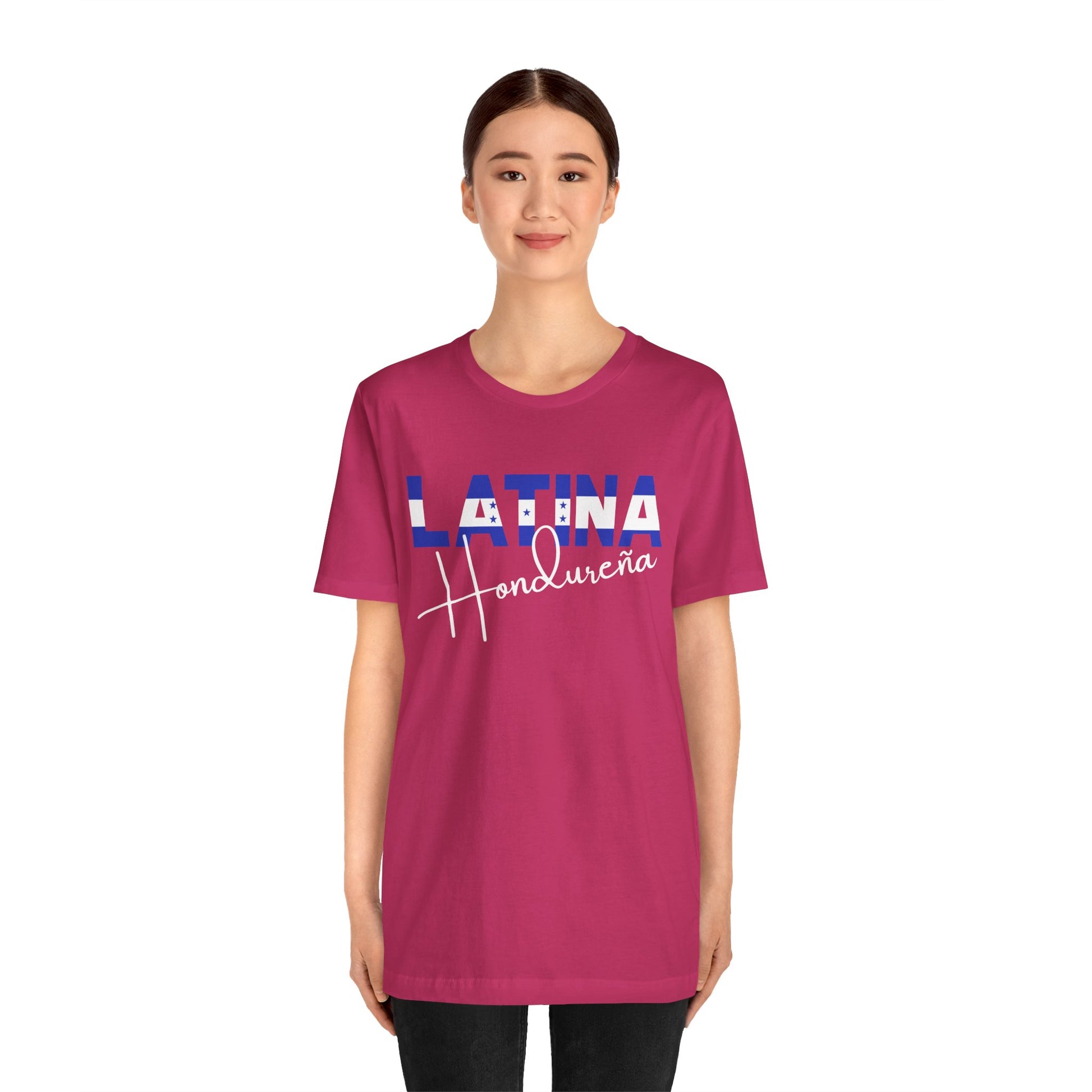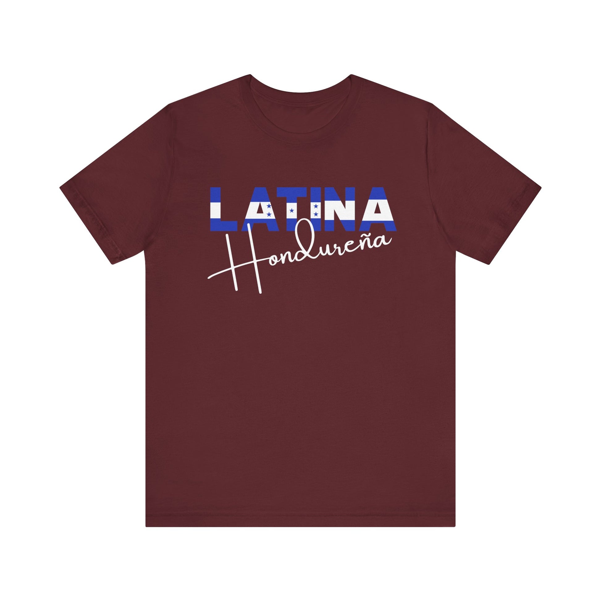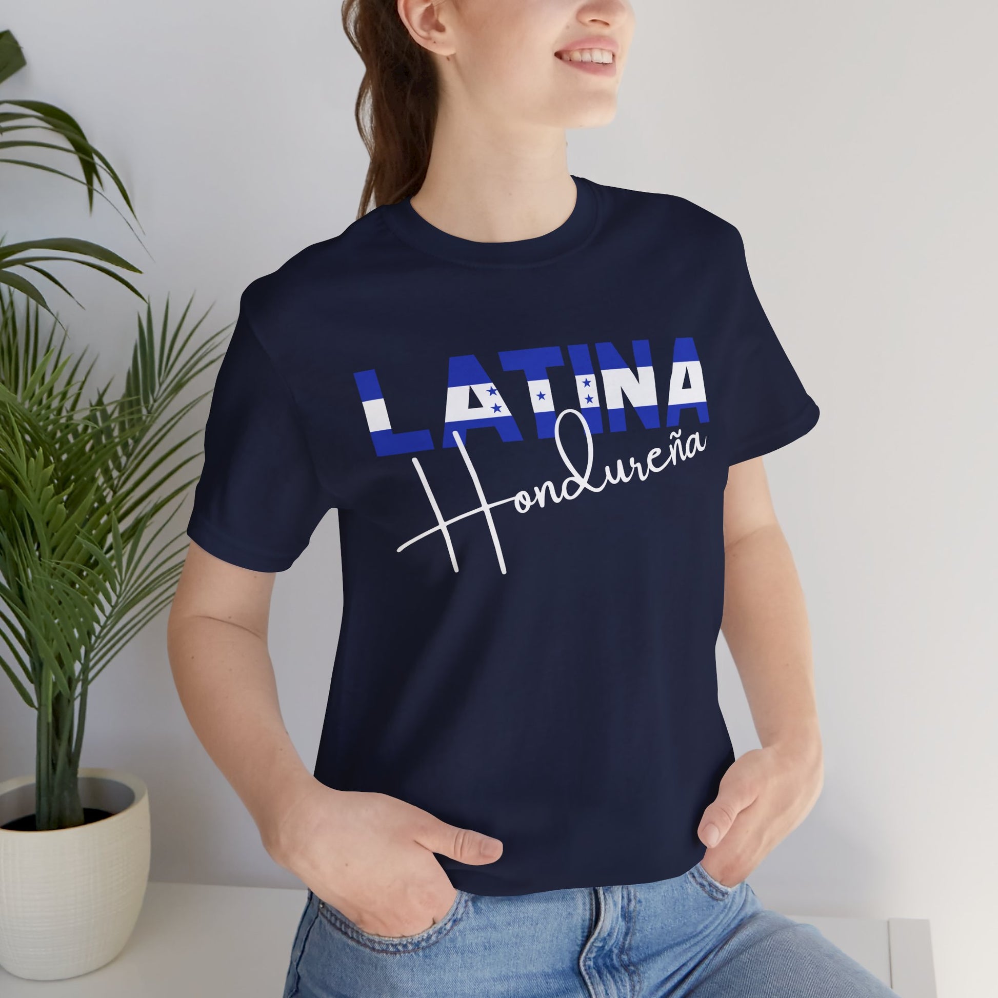The "Latina Hondureña" top comes in a variety of colors, so you can choose the one that best matches your style. The word "Latina" is displayed in bold letters, with the colors of the Honduras flag proudly displayed on each letter. It's a stylish and meaningful way to show off your cultural pride.