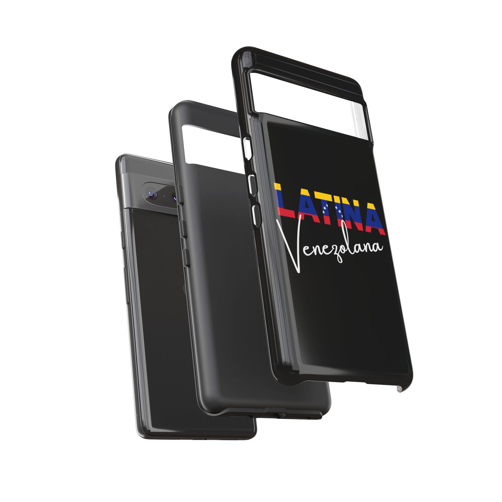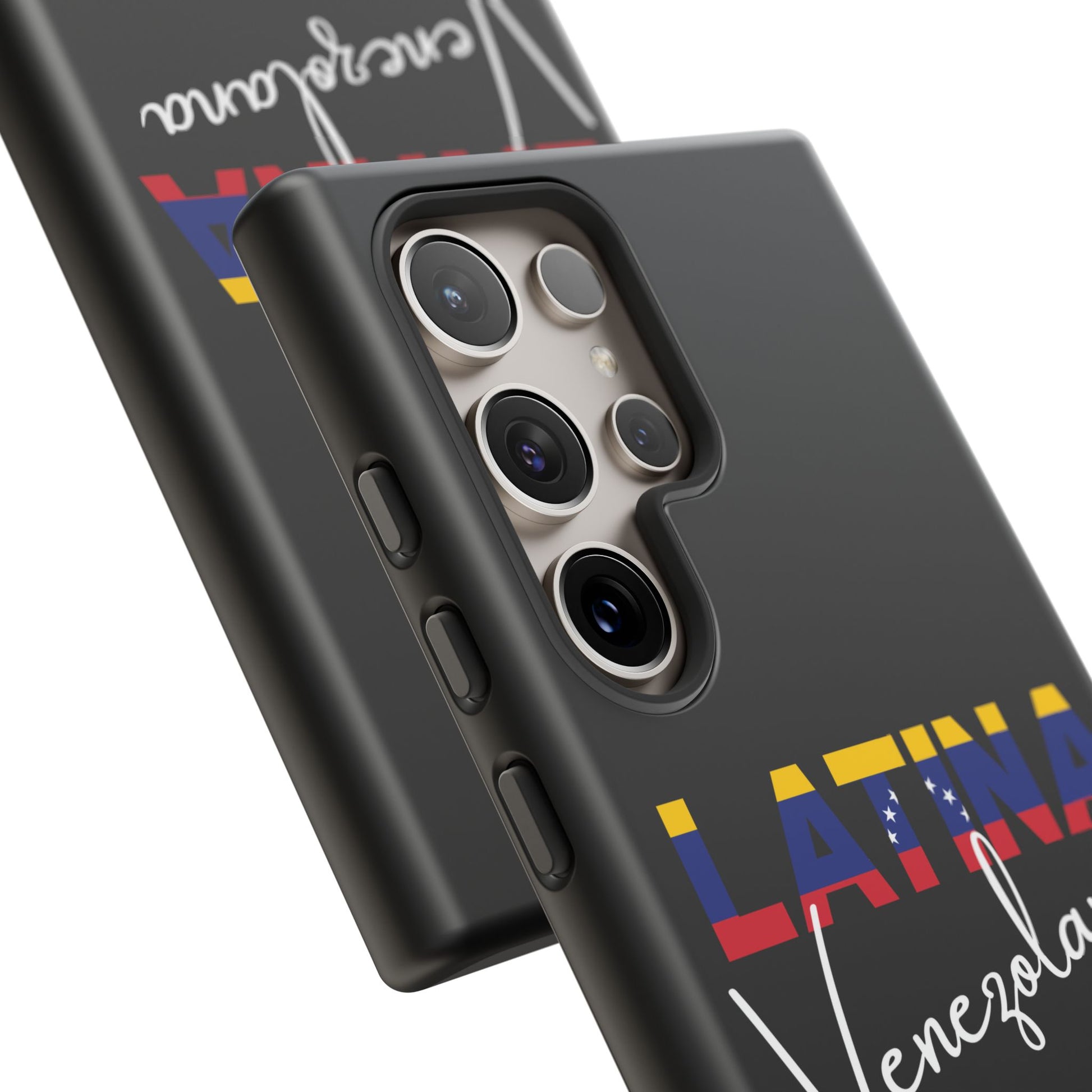 Introducing the "Latina Venezolana" phone case - a stylish and meaningful accessory that celebrates Hispanic culture and supports the community. This phone case comes in a variety of colors, so you can choose the one that best suits your personal style. The word "Latina" is emblazoned across the back of the case, with the colors of the Venezuela flag proudly displayed on each letter, symbolizing the unique cultural heritage of Venezuela.