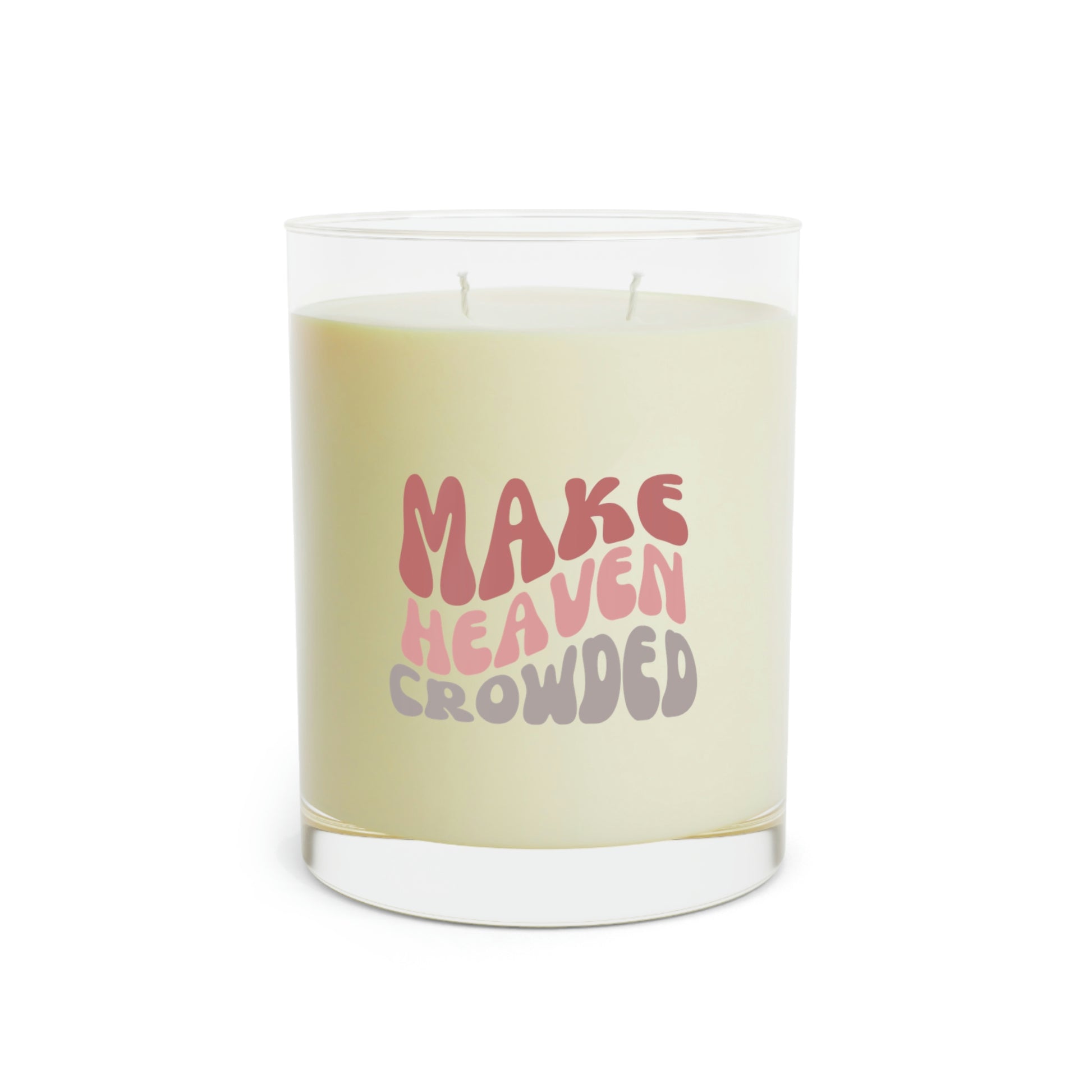 "Make Heaven Crowded" whispers a message of expansiveness and unity. It reminds us that life is meant to be shared and celebrated, that our purpose lies in uplifting and supporting one another. Each time you ignite the flame of this candle, it serves as a reminder to create moments of joy and connection, to bring more love and kindness into the world, and to make heaven a little more crowded with the goodness we share.