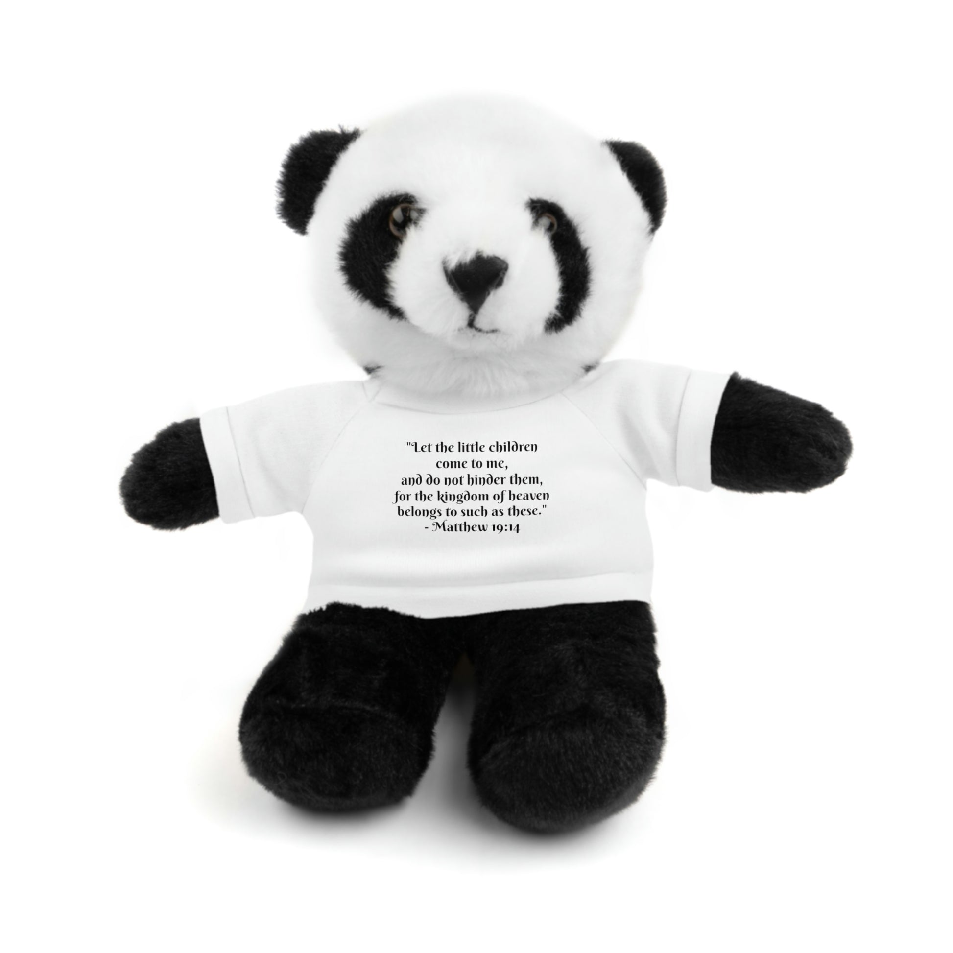 Created to put ear-to-ear smiles on any child, these stuffed animals come with a playful attitude. Each plushie is 8" tall, features polyester and plastic pellet stuffing, while their tees are 100% cotton. Perfect for ages 3+. Available animals: Panda, Lion, Bear, Bunny, Jaguar, and Sheep.